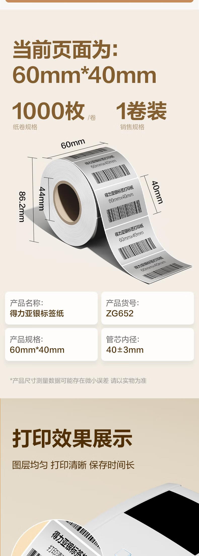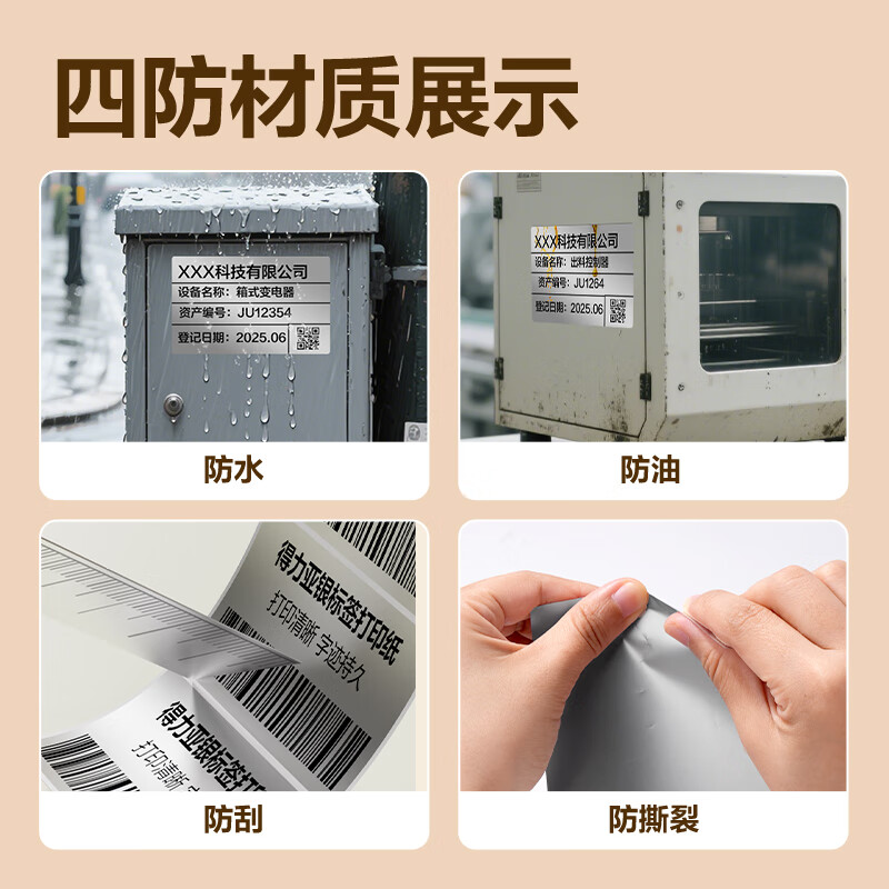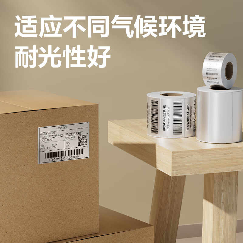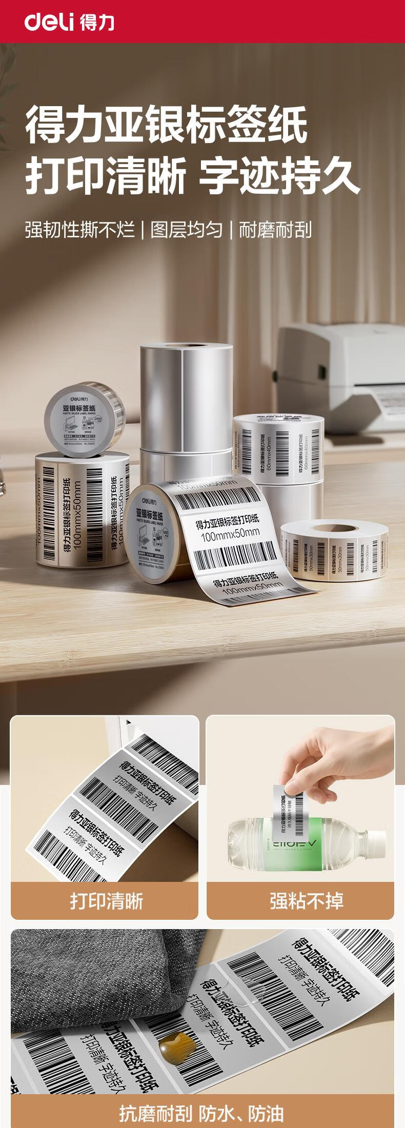 得力(deli)*1卷 哑银PET不干胶条码打印纸 固定资产标签纸 防水防油防刮 碳带打印 ZG652