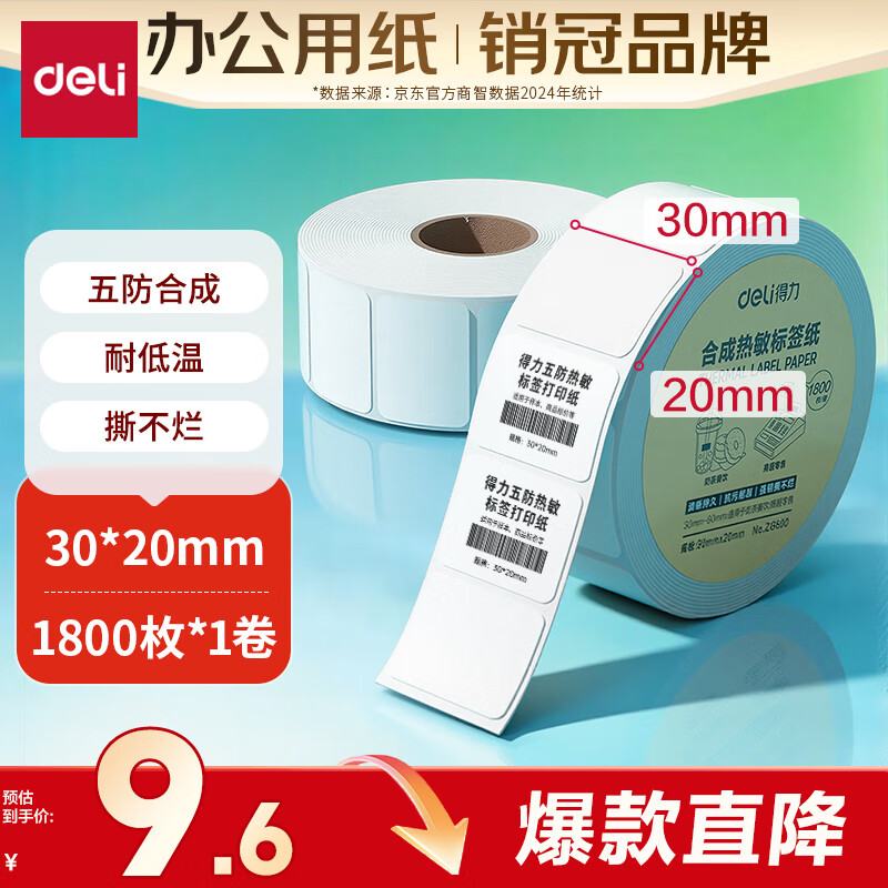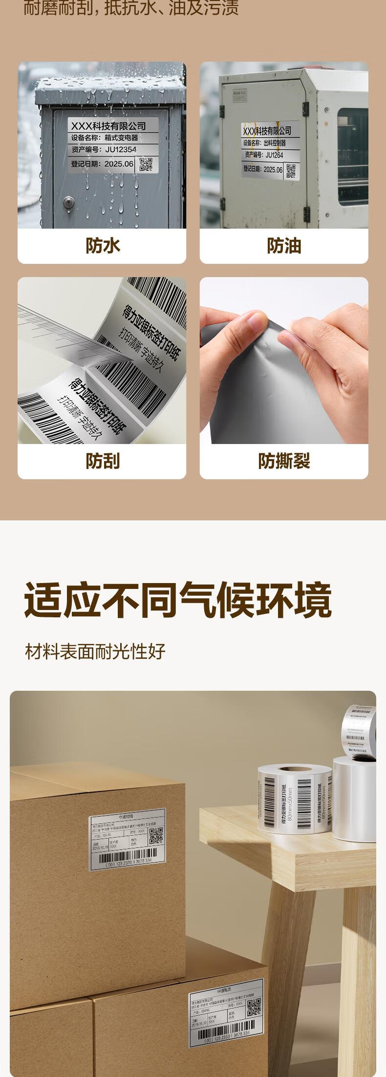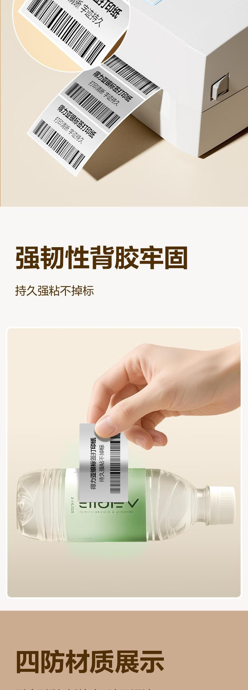得力(deli)*1卷 哑银PET不干胶条码打印纸 固定资产标签纸 防水防油防刮 碳带打印 ZG652