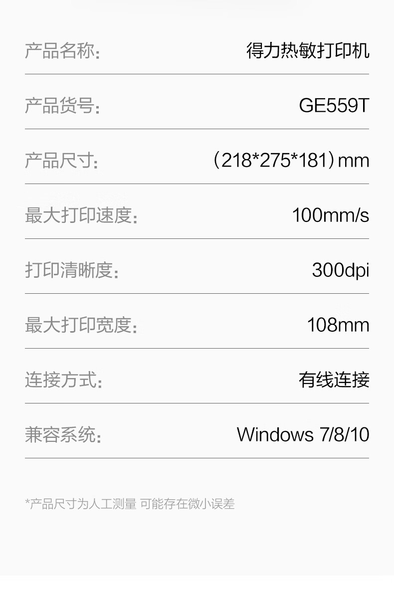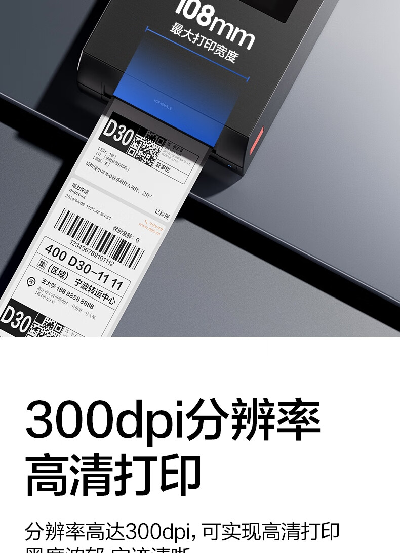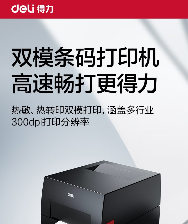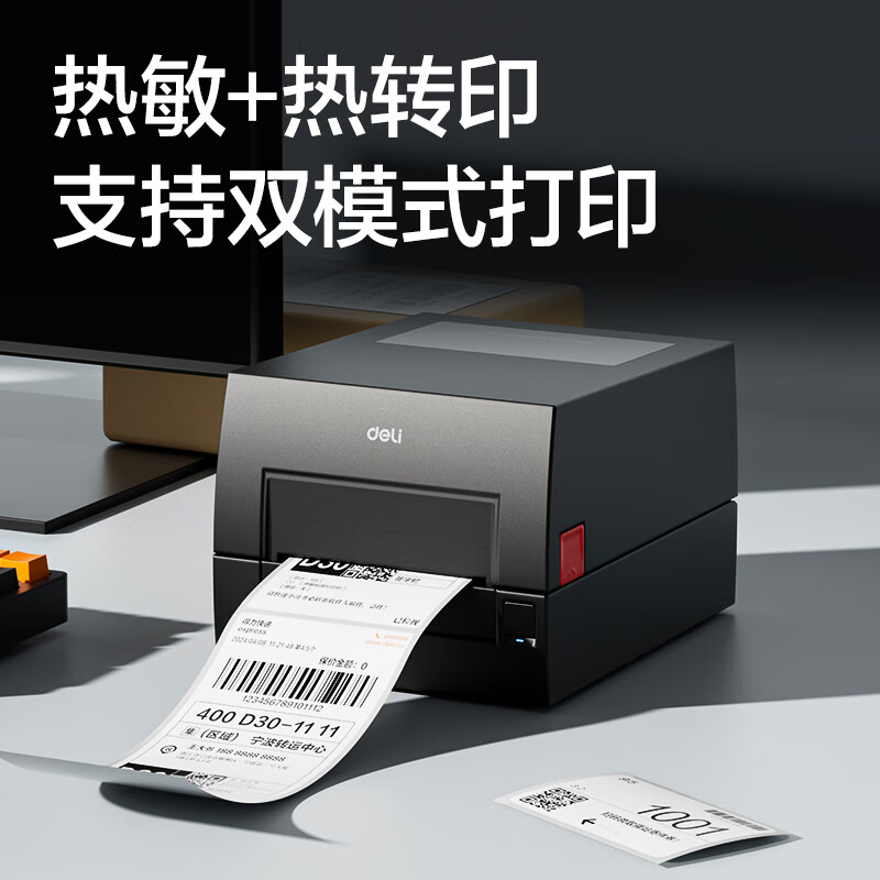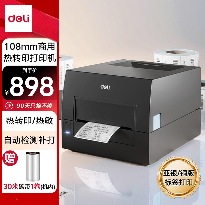 得力(deli)GE559T热转印打印机固定资产快递仓储零售108mm商用办公碳带标签不干胶条码打印机300dpi高清款