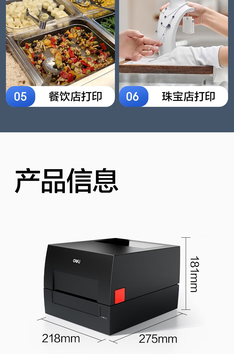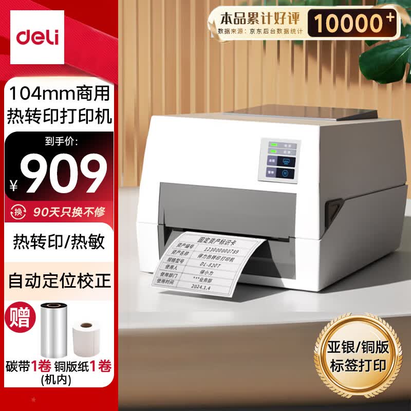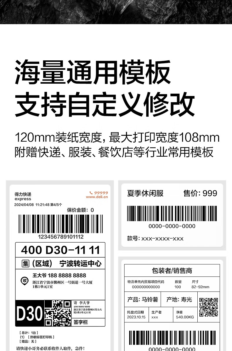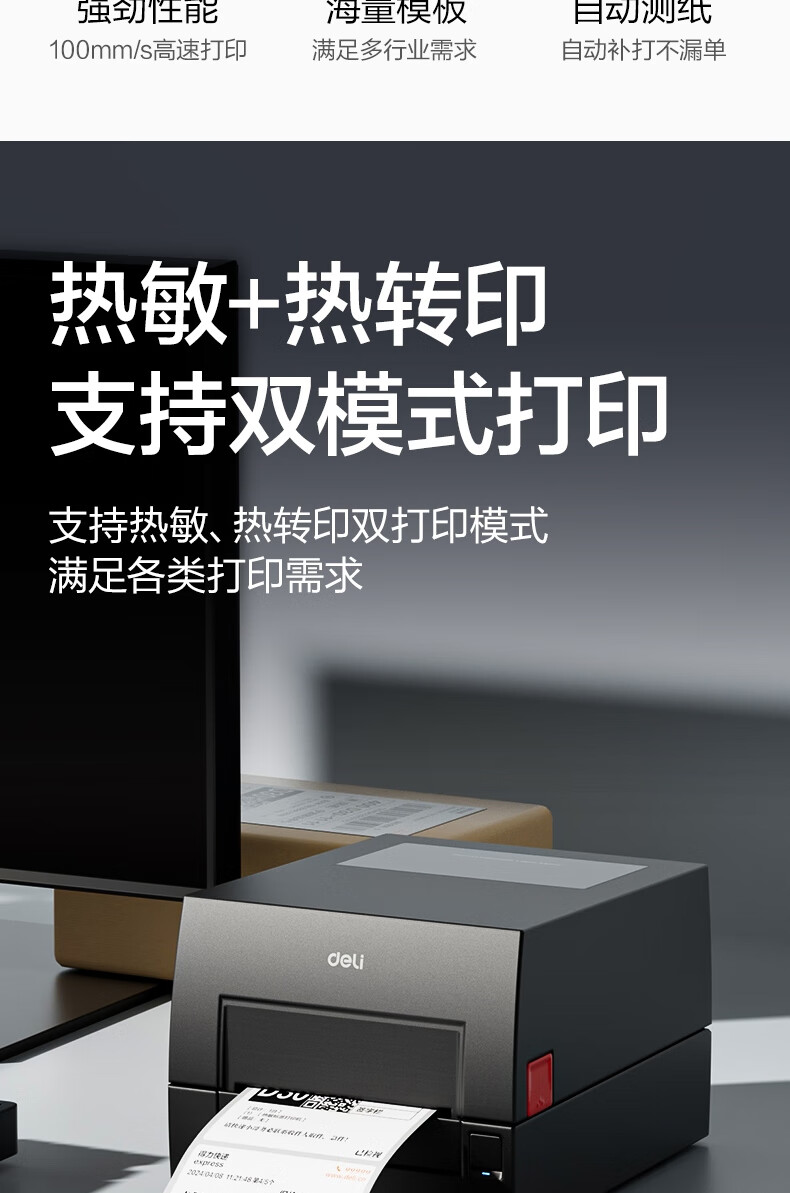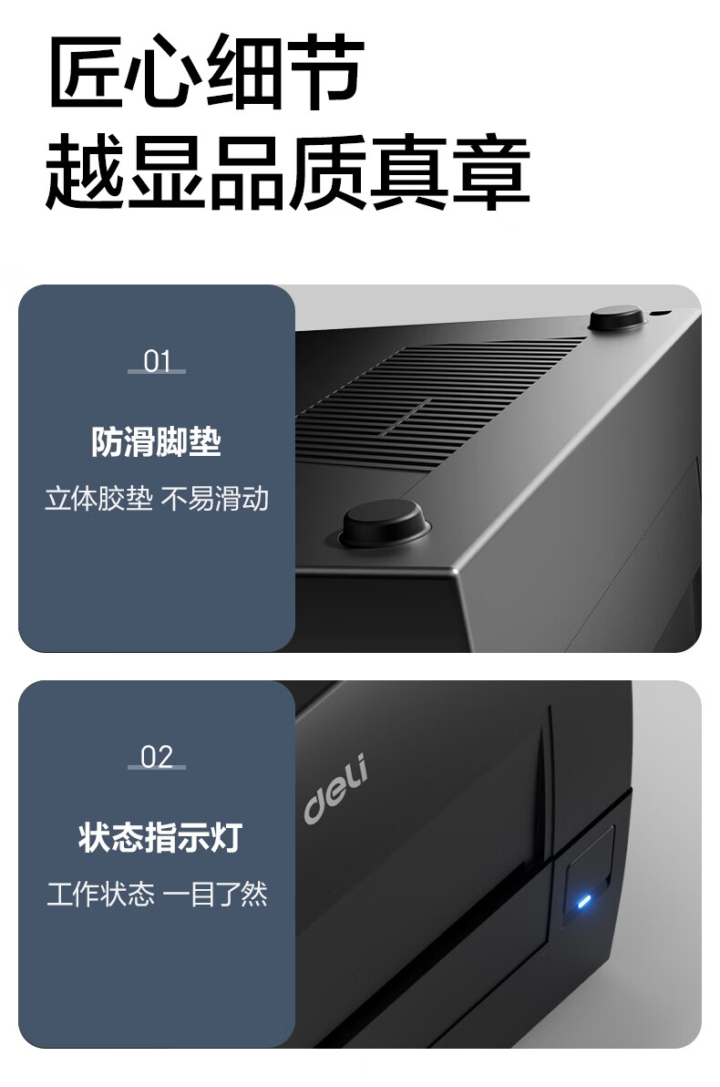 得力(deli)GE559T热转印打印机固定资产快递仓储零售108mm商用办公碳带标签不干胶条码打印机300dpi高清款