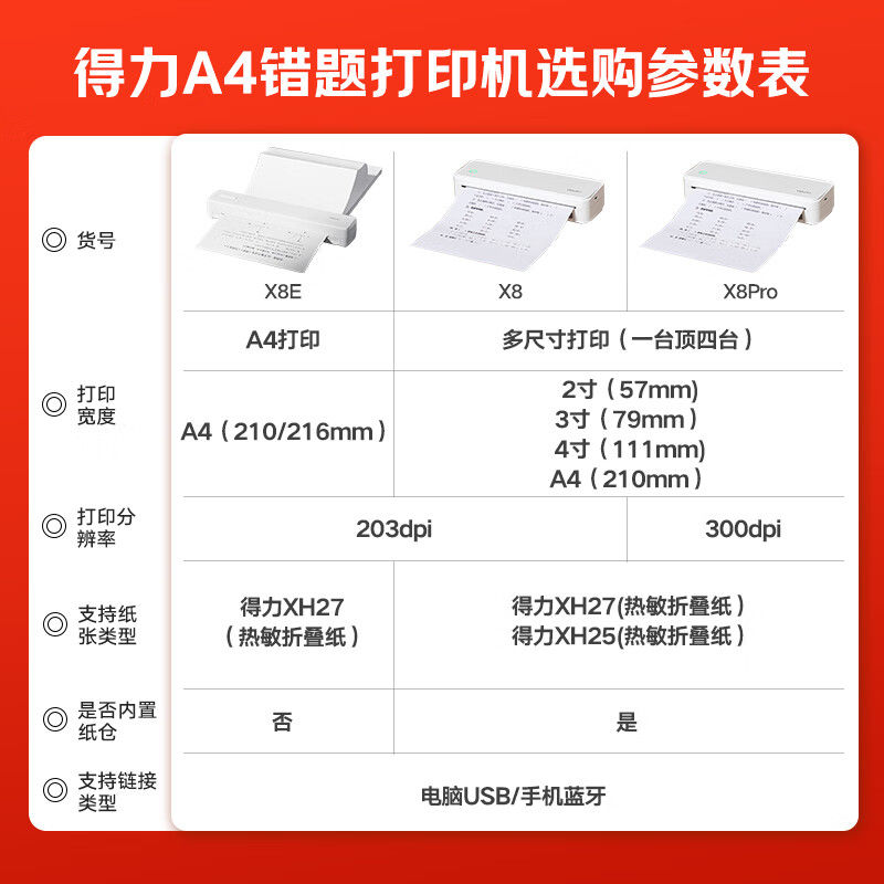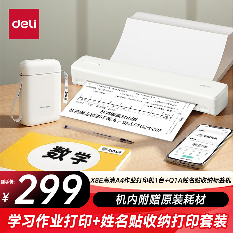 得力(deli)X8E学习错题打印机 A4家用作业整理照片试卷喵喵机学生开学文具礼物便携热敏标签打印机203dpi高清