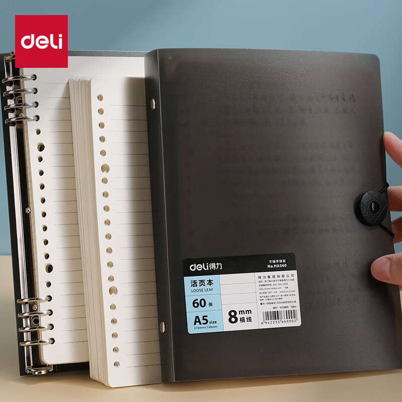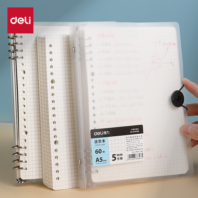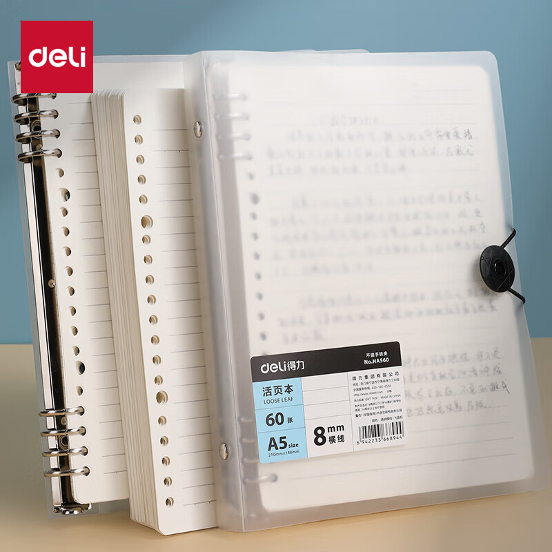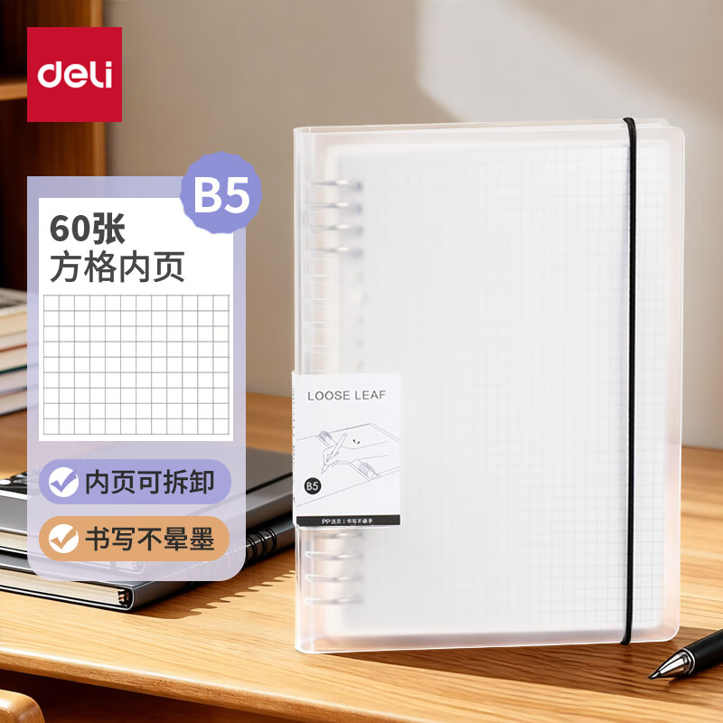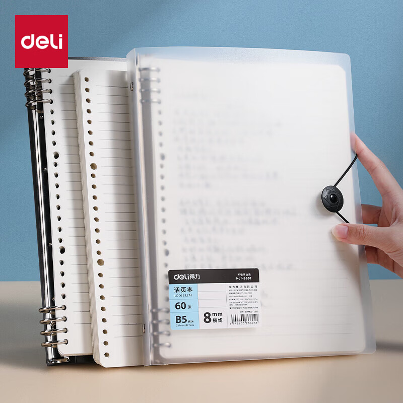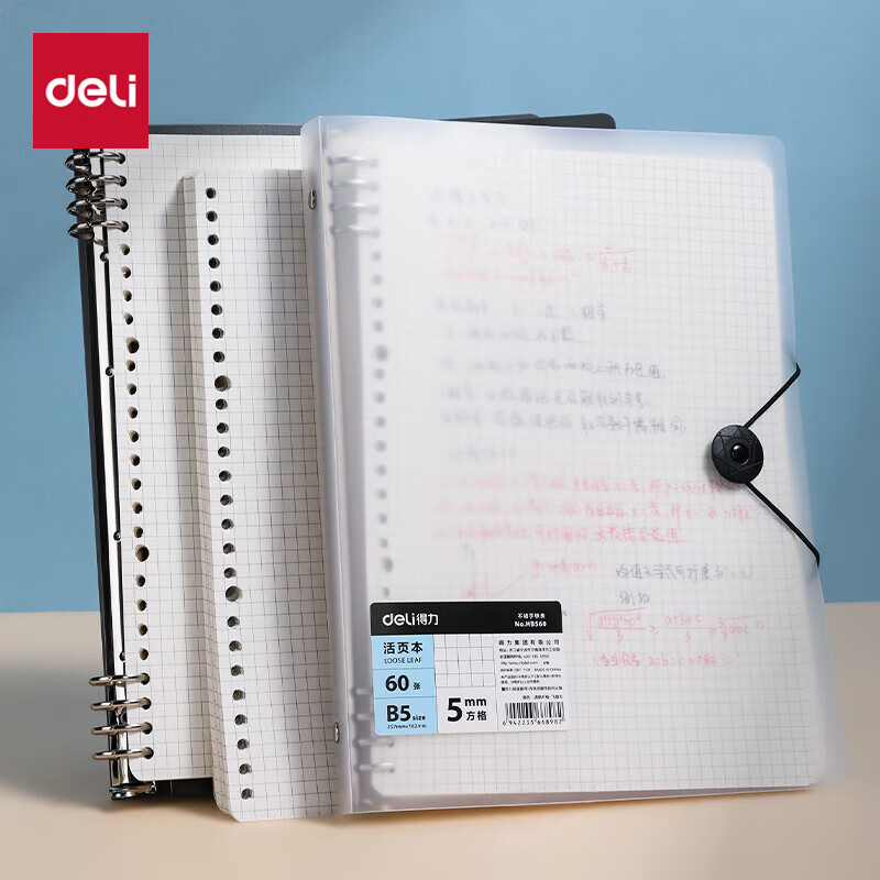 得力(deli)B5/60张活页本笔记本子作业本可拆卸横线学生线圈本记事本考研日记本HB560