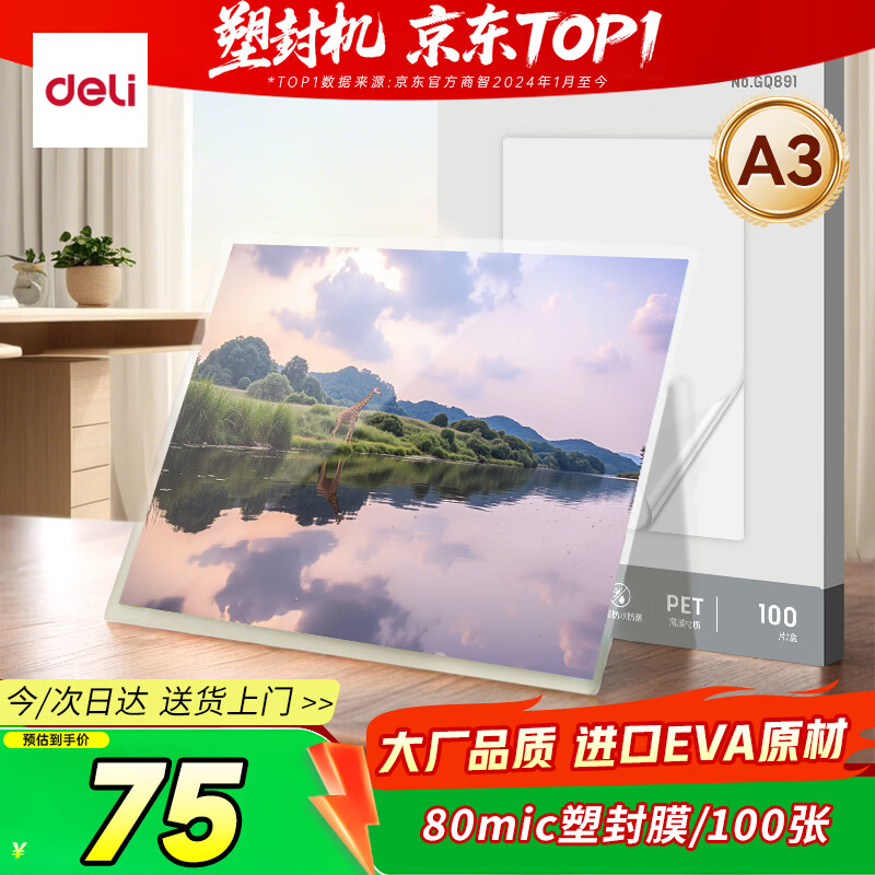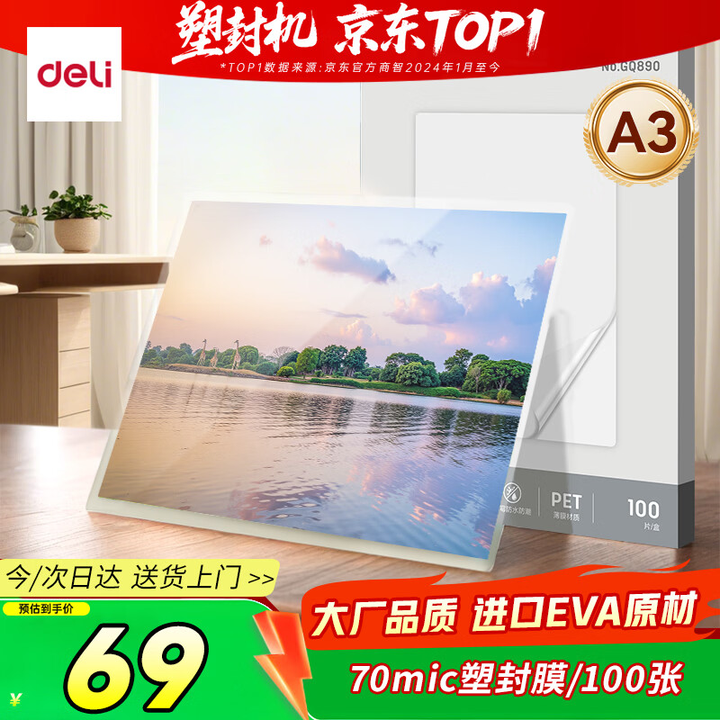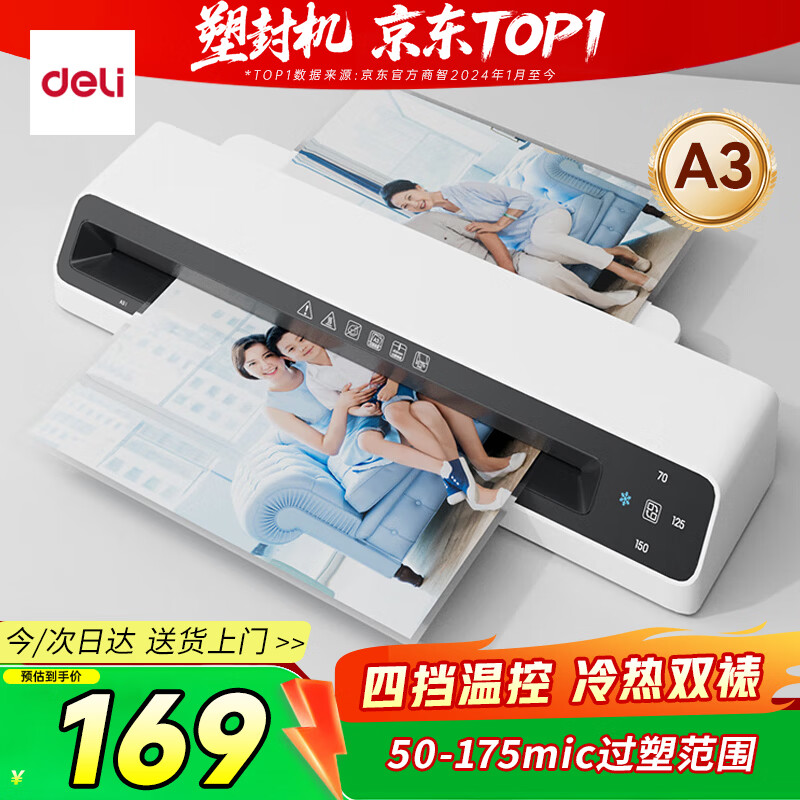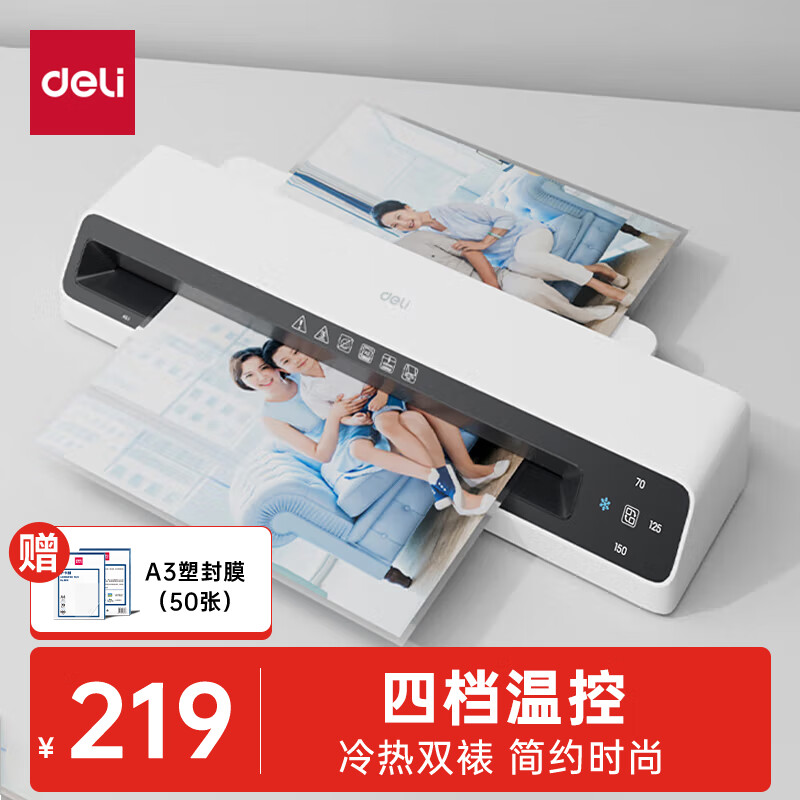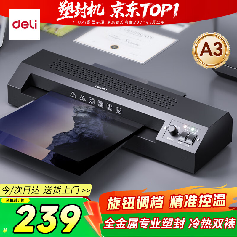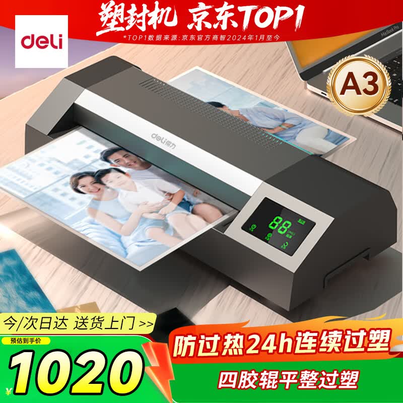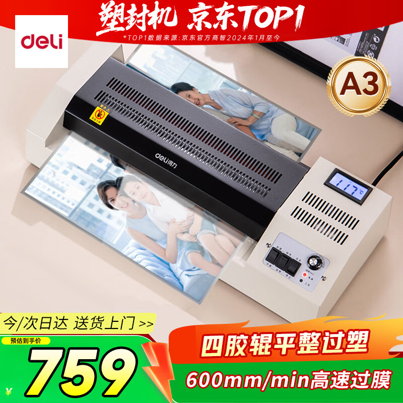 得力(deli)家用办公a3/a4照片塑封机过塑机可用a3及以下塑封膜商用相片过胶压膜机封膜机覆膜机全金属机身