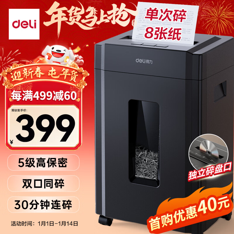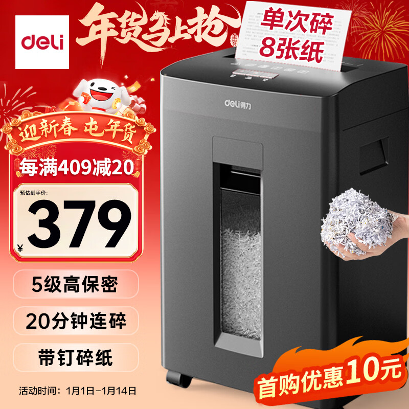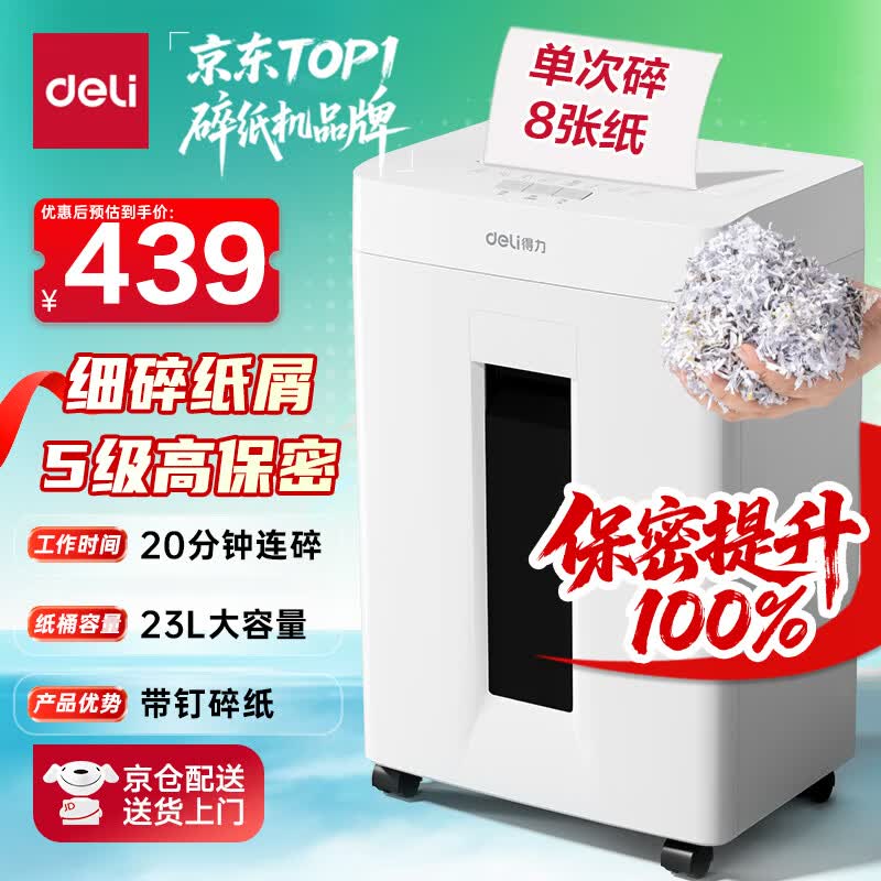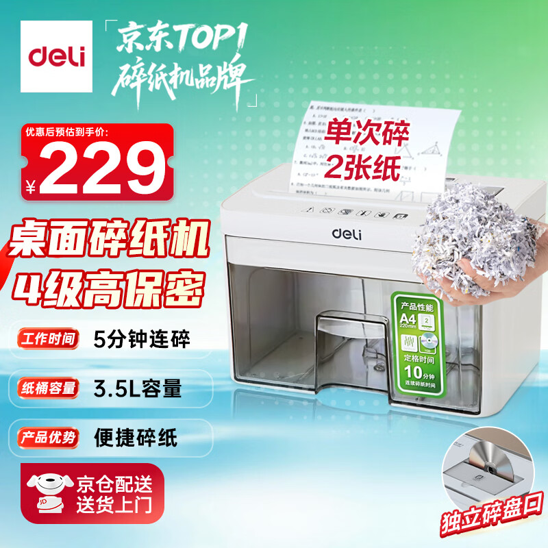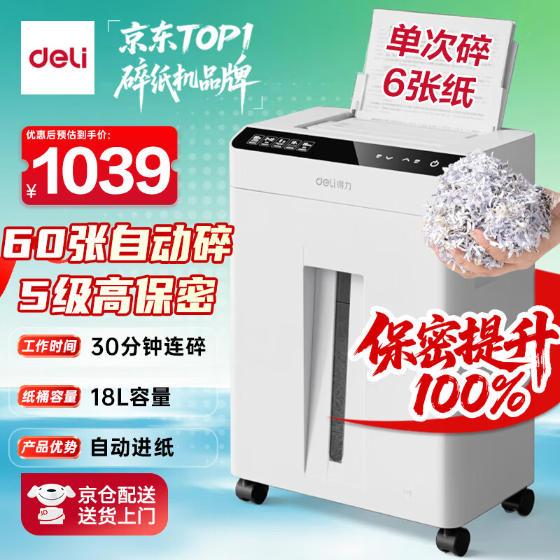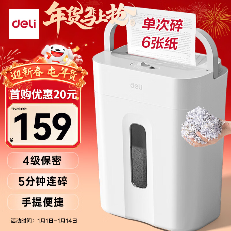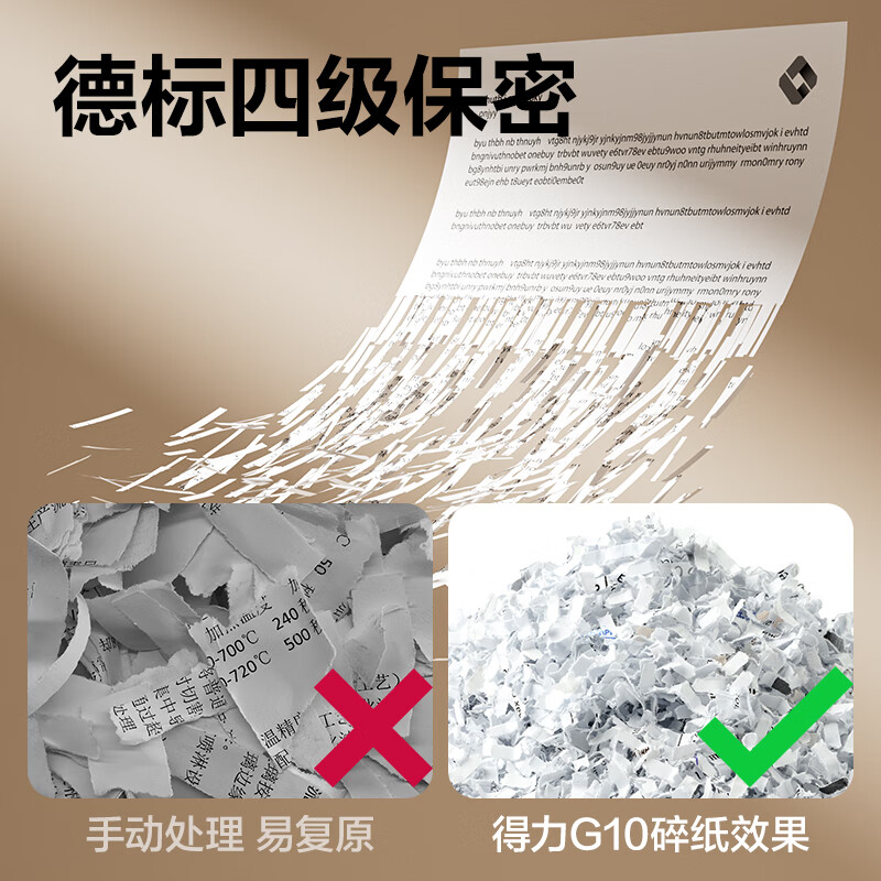 得力碎纸机4级保密单次6张5分钟连碎小型家用办公文件粉碎机15L容量低噪轻音 行业销冠 G10