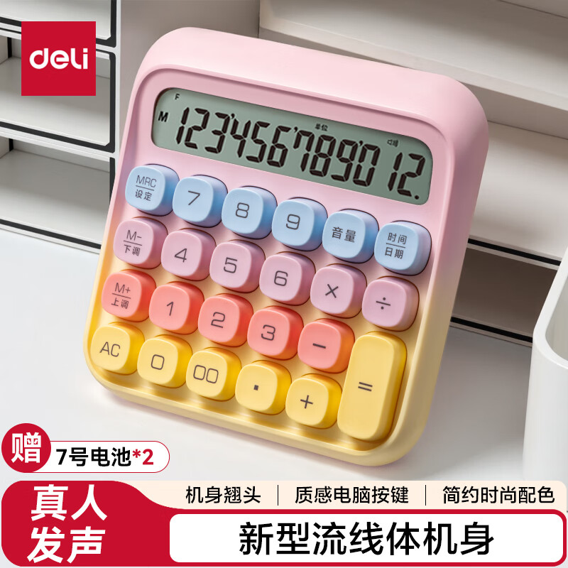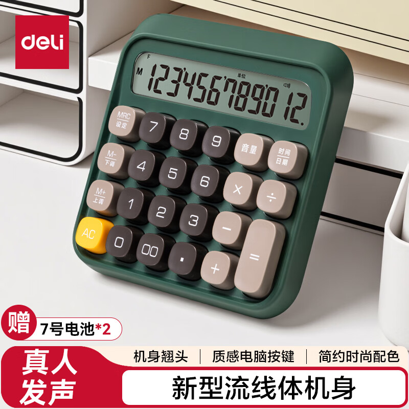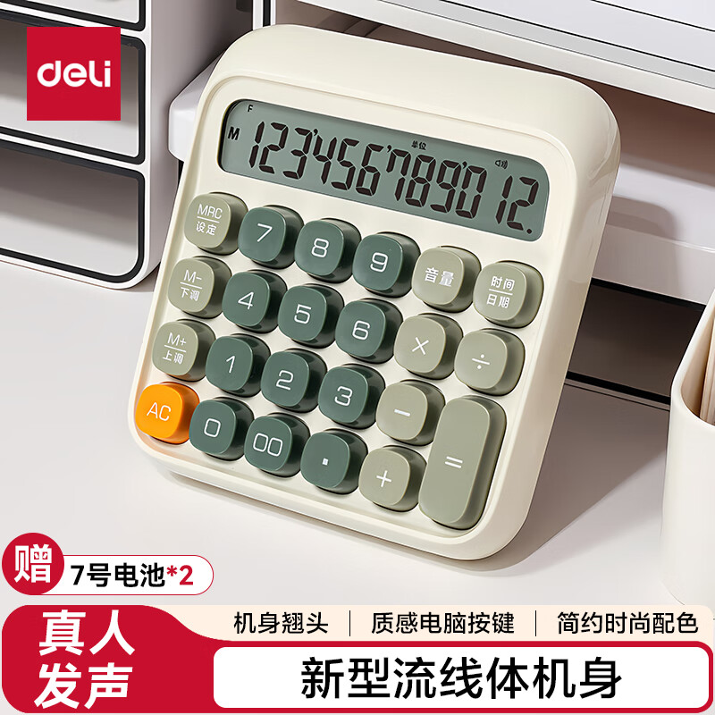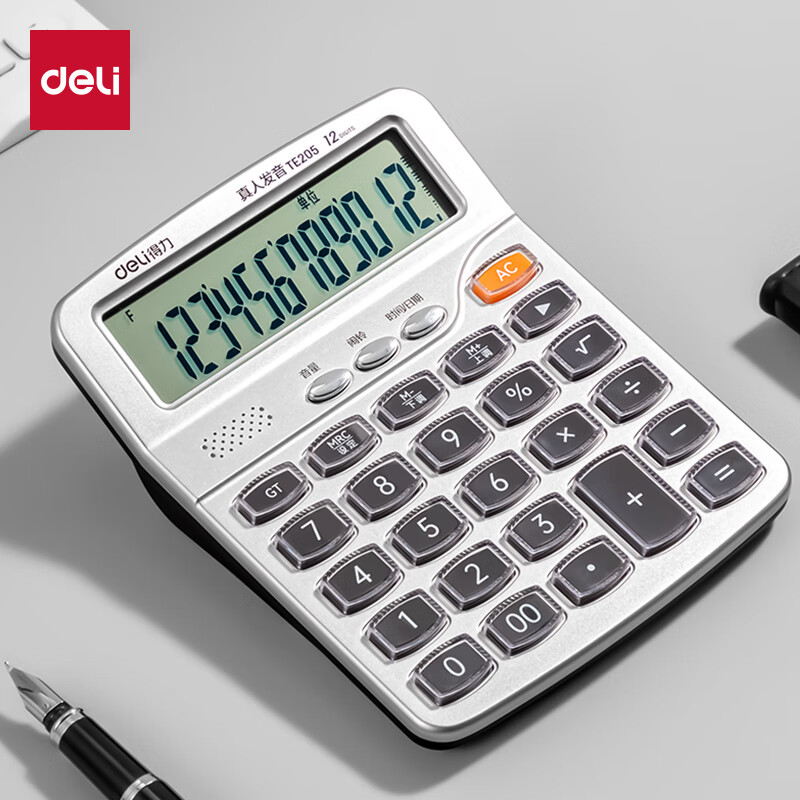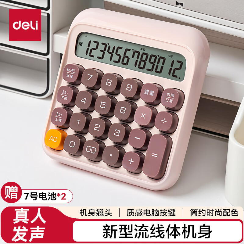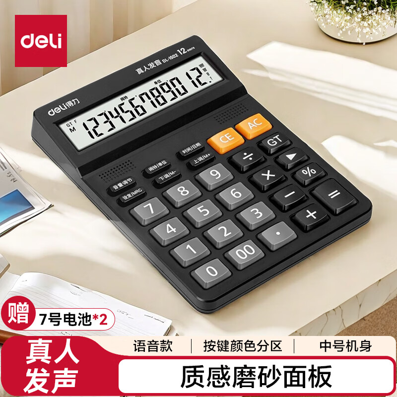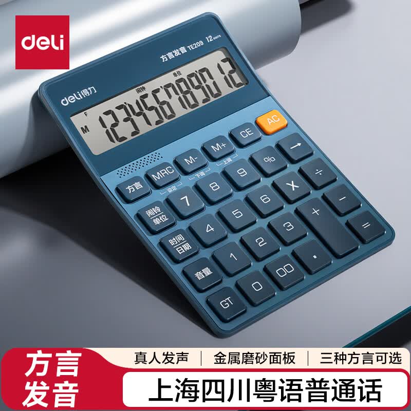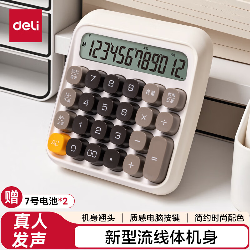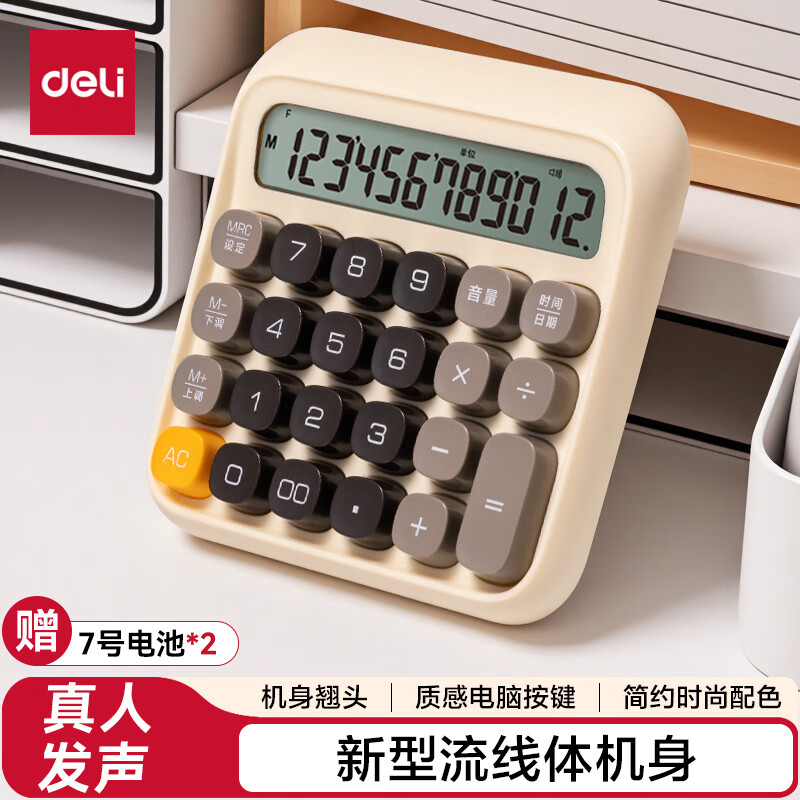 得力(deli)【超级爆款】12位金属面板语音计算器 水晶大按键大屏幕财务计算器 办公用品 中号 香槟金33560