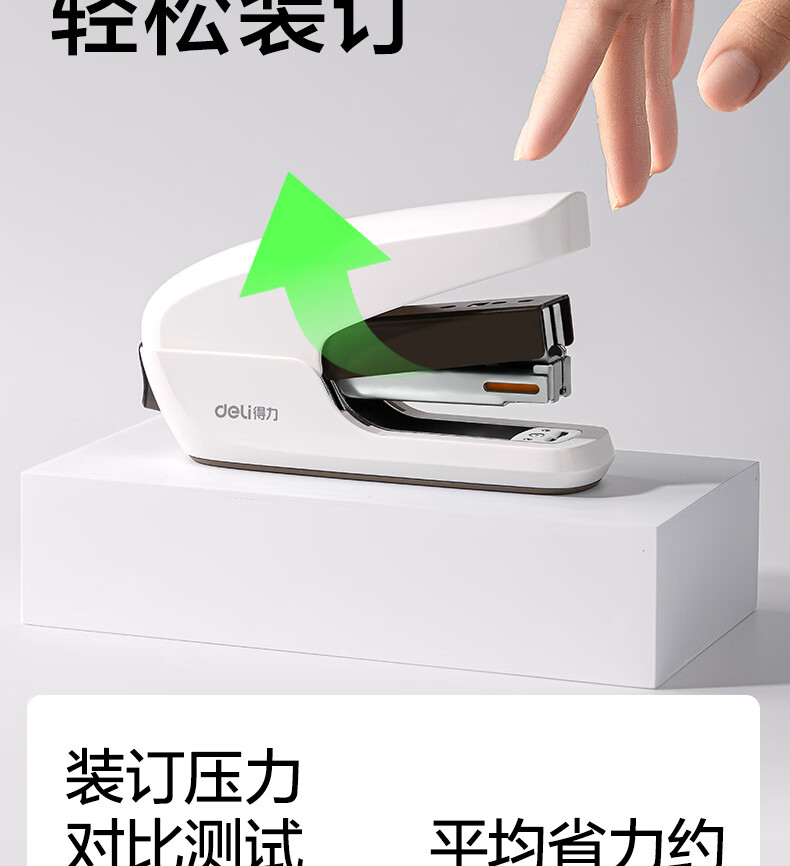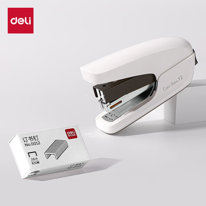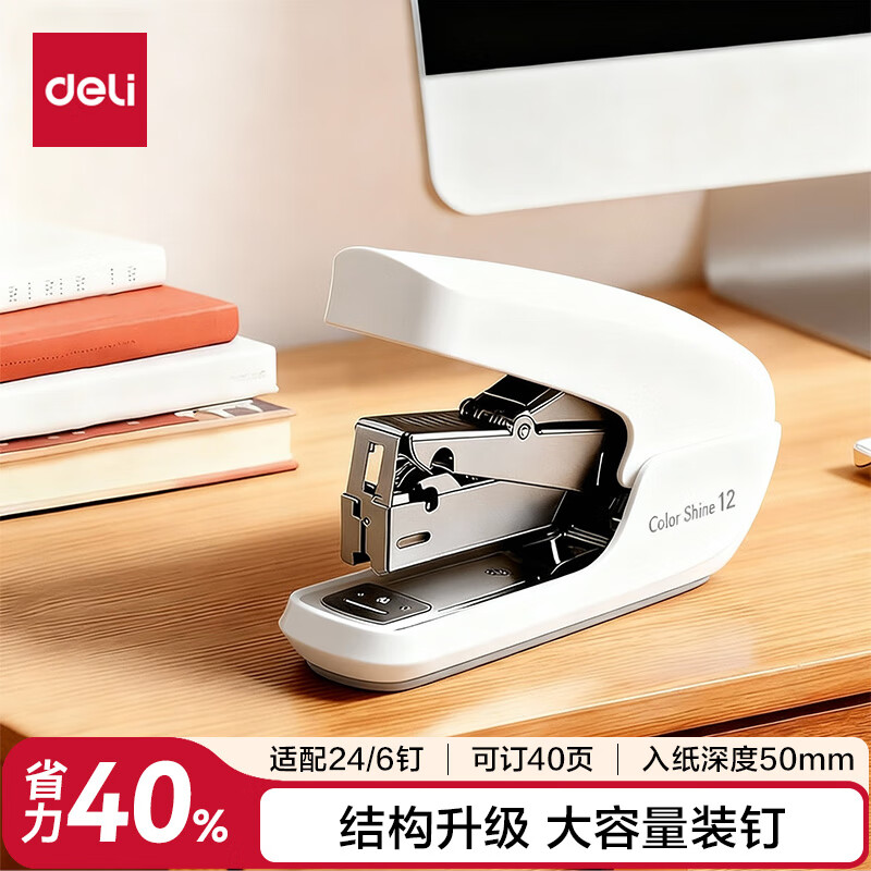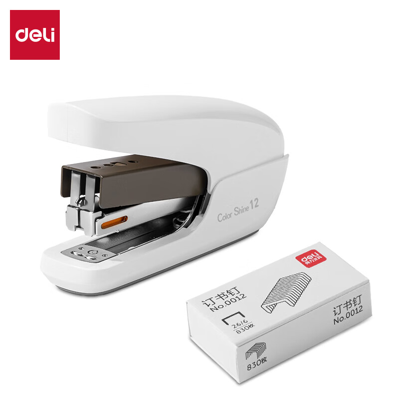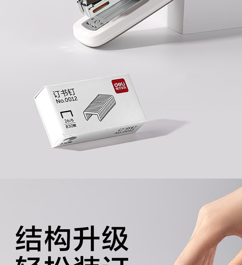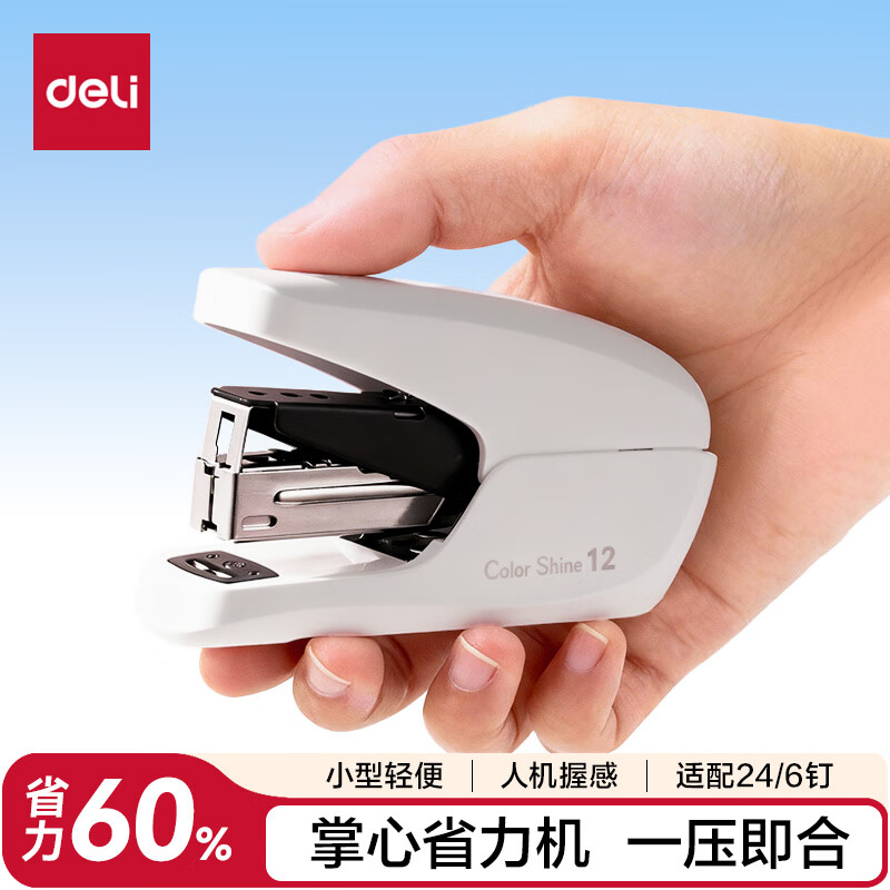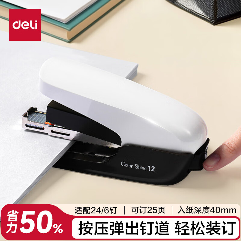 得力(deli)【热门商品】省力订书机/订书器防卡钉套装办公用品轻巧便携装订机适配24/6钉(附订书钉) TA36白