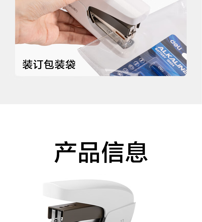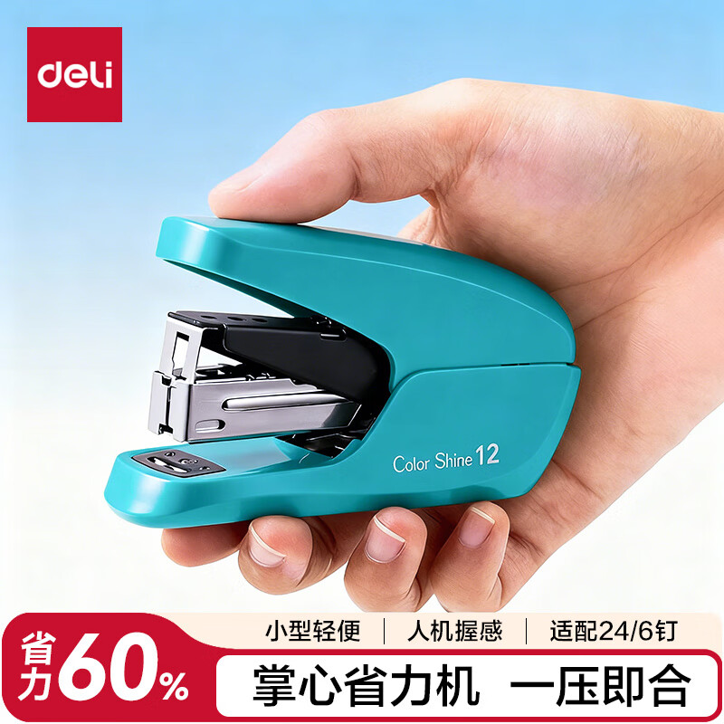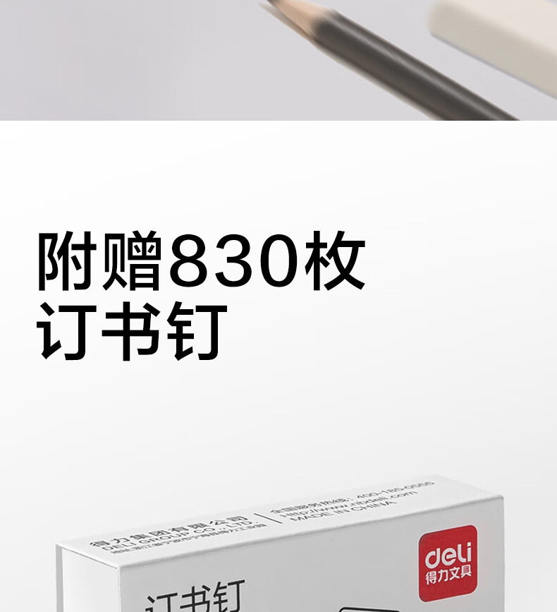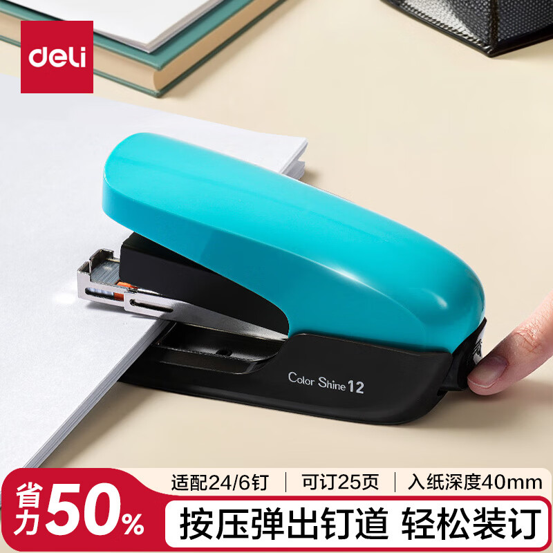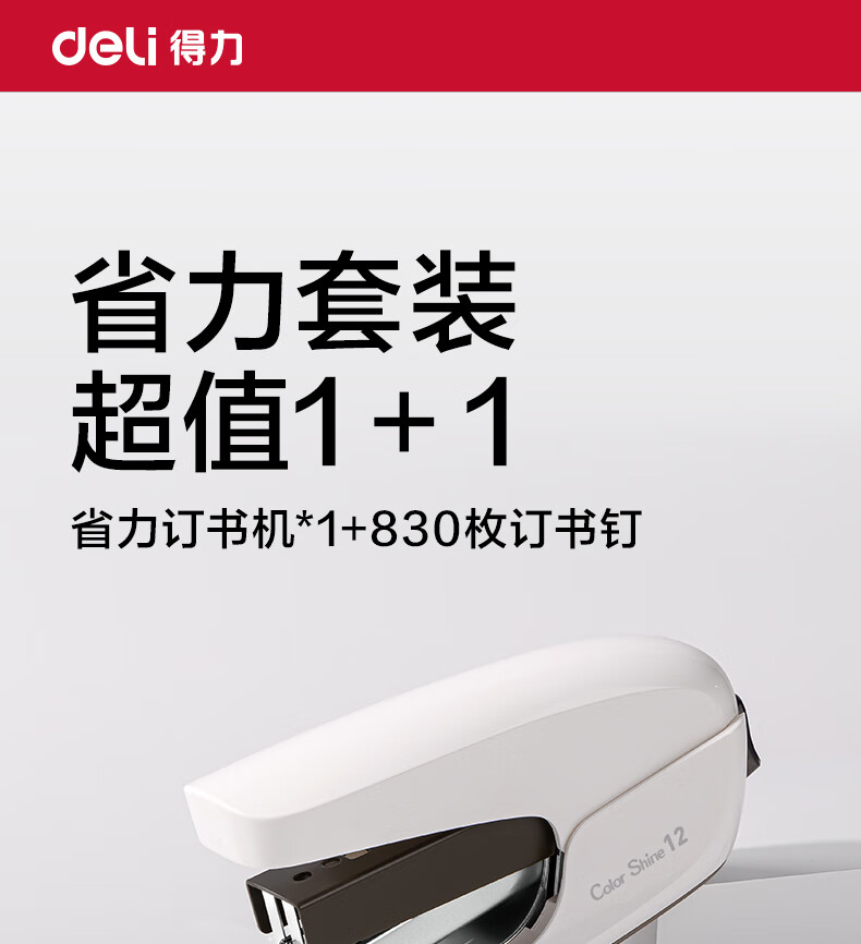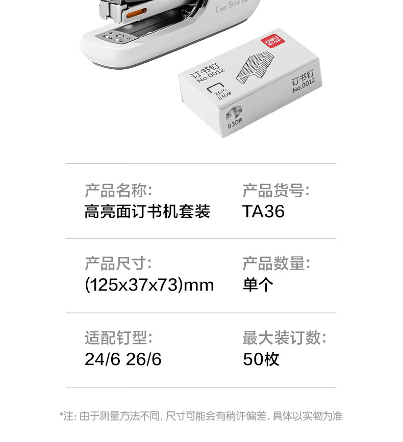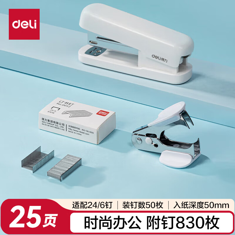 得力(deli)【热门商品】省力订书机/订书器防卡钉套装办公用品轻巧便携装订机适配24/6钉(附订书钉) TA36白