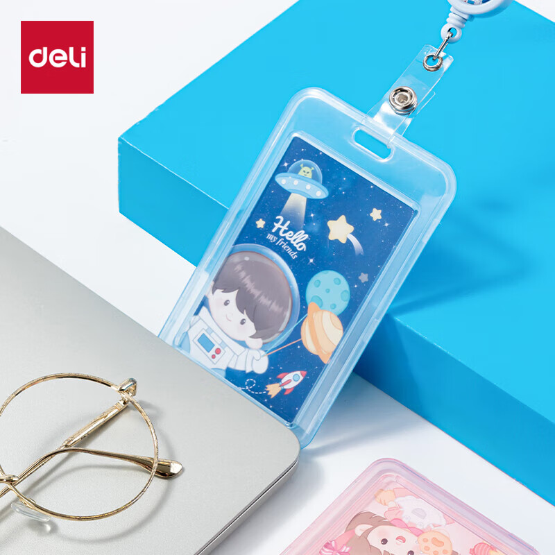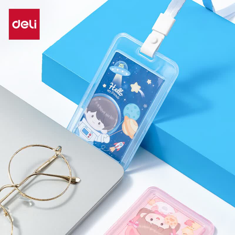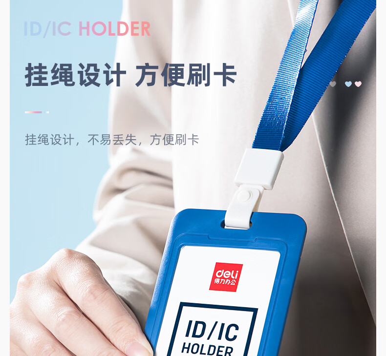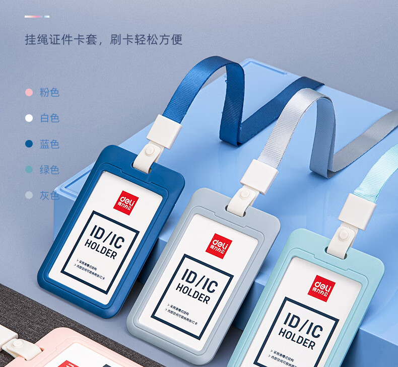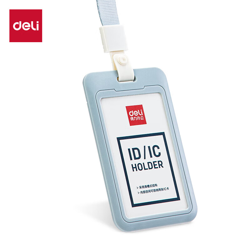 得力(deli)【超级爆款】竖式证件卡套问苍穹系列员工证公交卡套饭卡地铁卡 学生胸牌单只装带绳 灰色64821