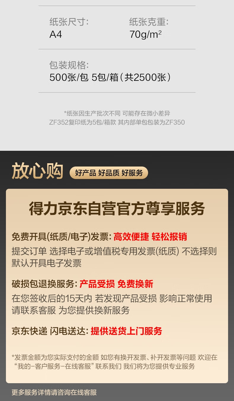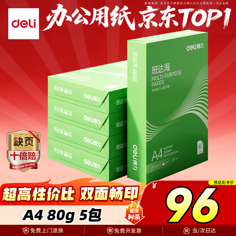 得力(deli)班达海A4打印纸 70g500张*5包一箱 双面复印纸 高性价比草稿纸 整箱2500张ZF352