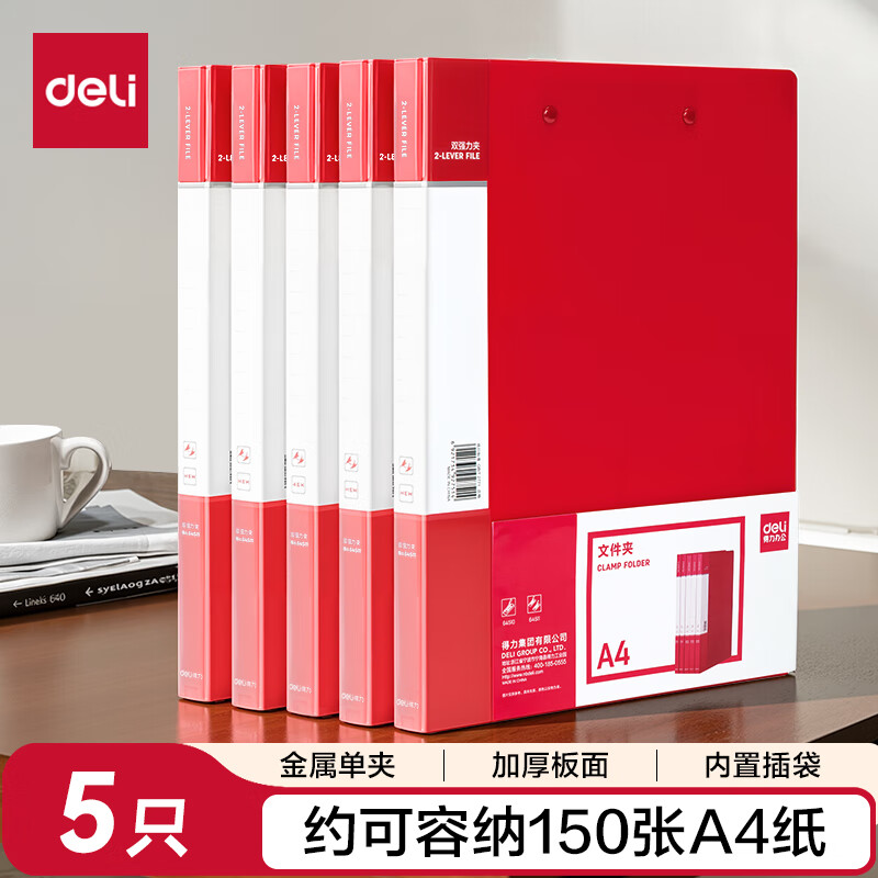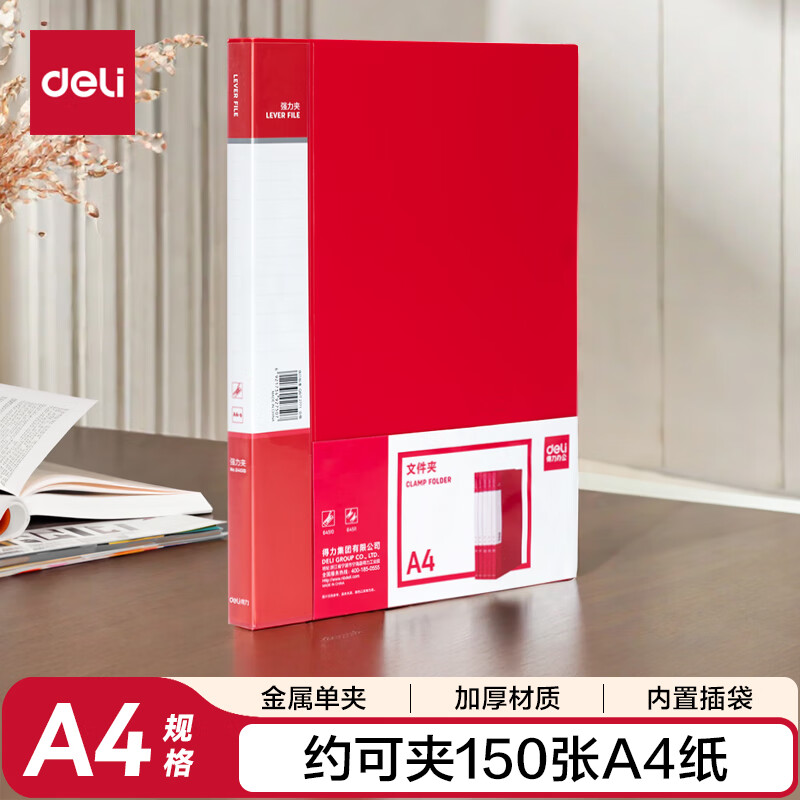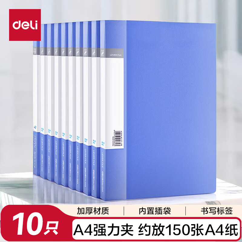 得力(deli)A4双强力夹文件夹 加厚诗朗诵签约夹板收集试卷资料夹子合同票据档案收纳办公学习用品27019蓝