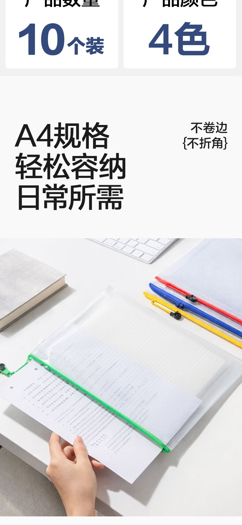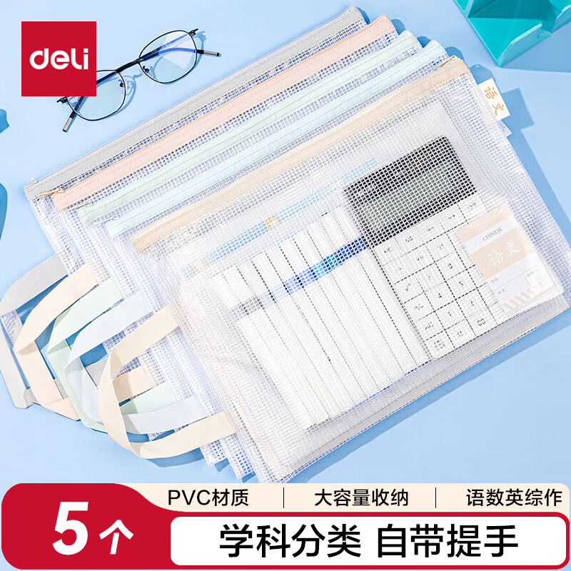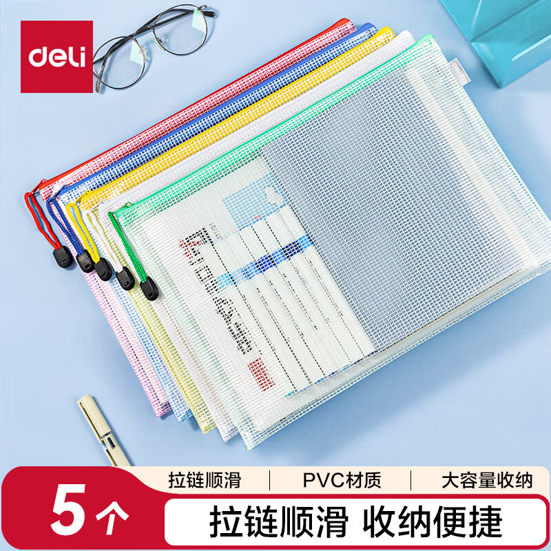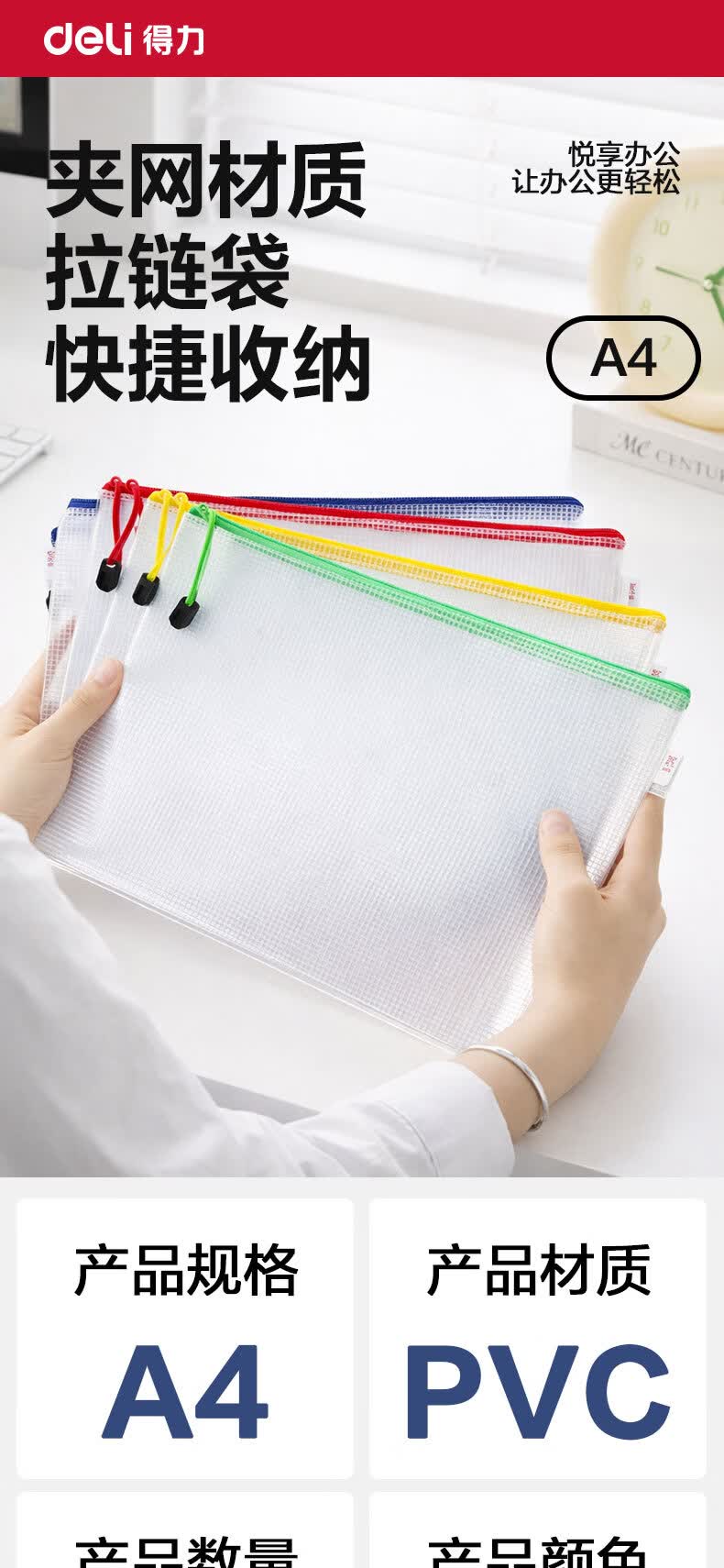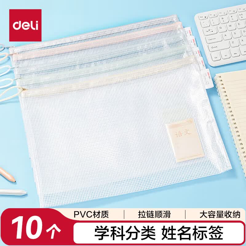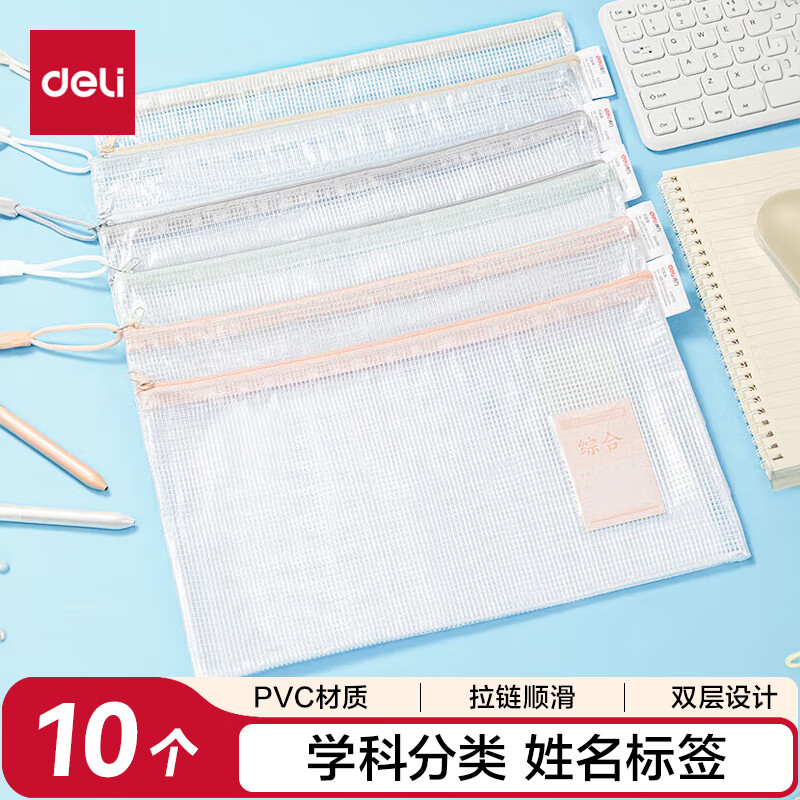 得力(deli)A4文件袋拉链袋办公资料袋票据收纳袋拉边袋学生科目分类袋试卷收纳 10只装27040