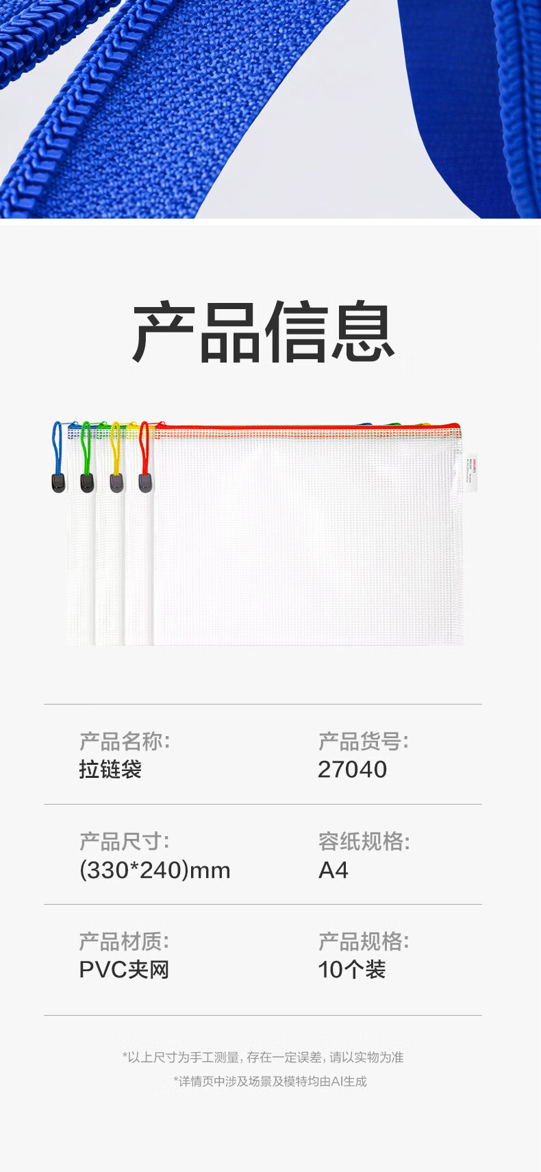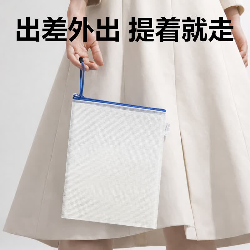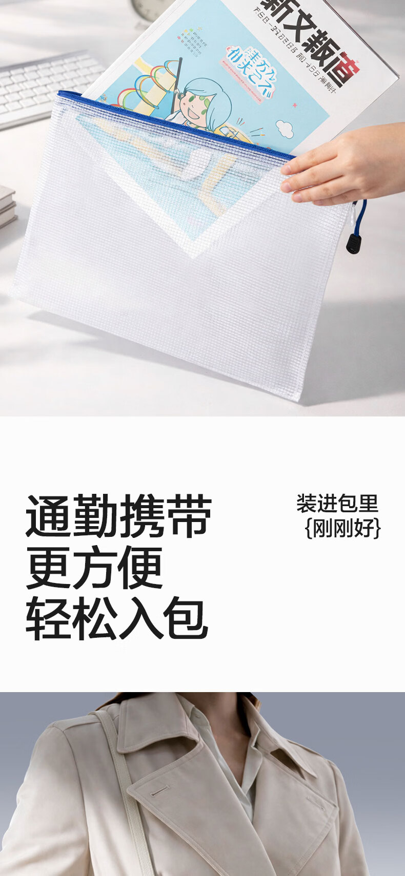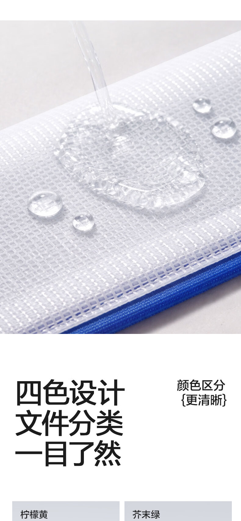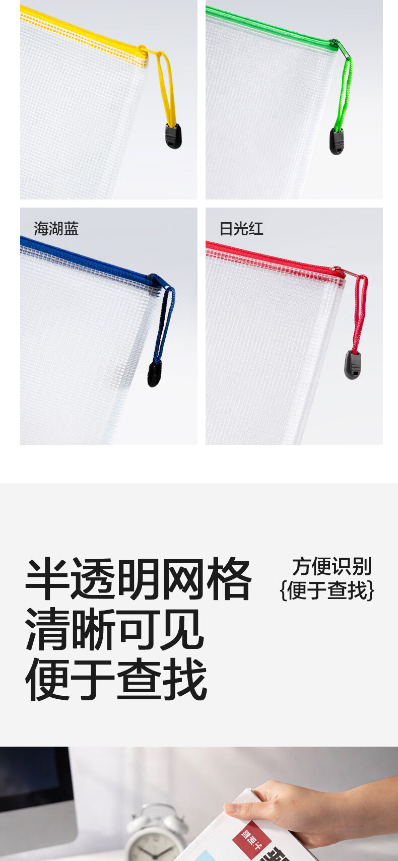 得力(deli)A4文件袋拉链袋办公资料袋票据收纳袋拉边袋学生科目分类袋试卷收纳 10只装27040