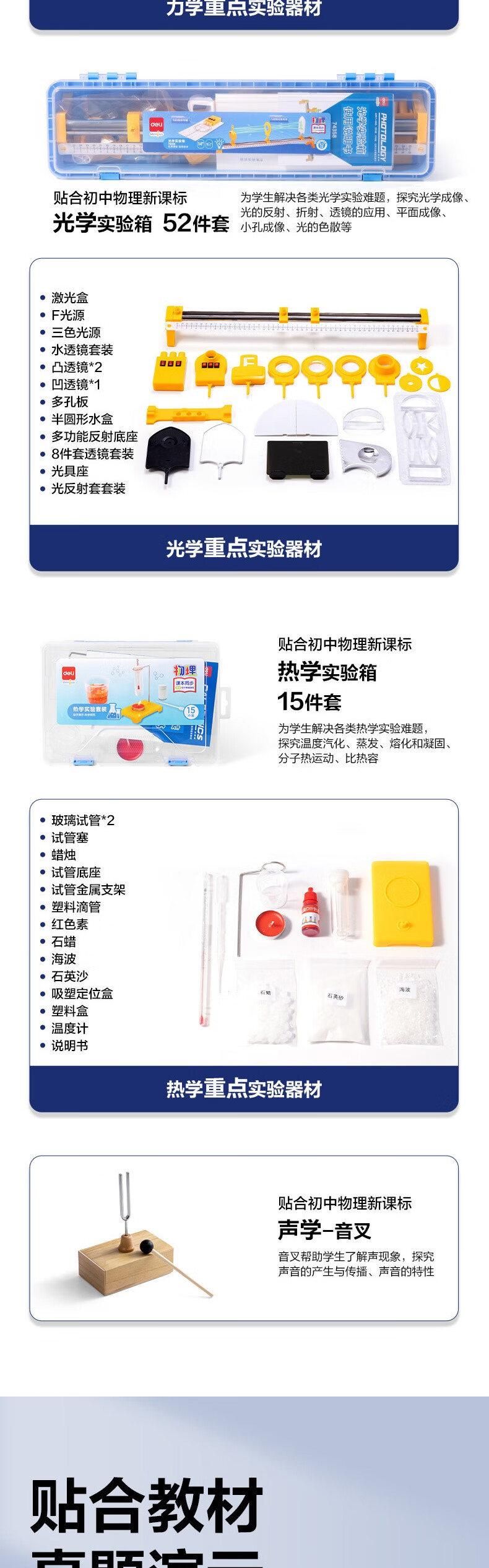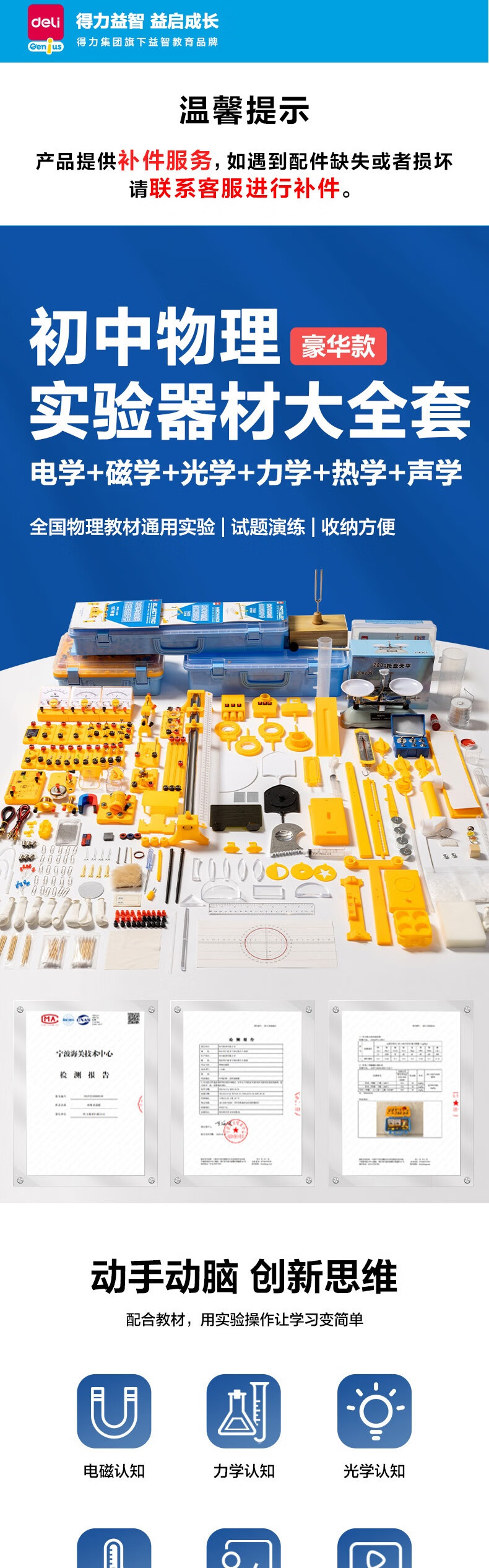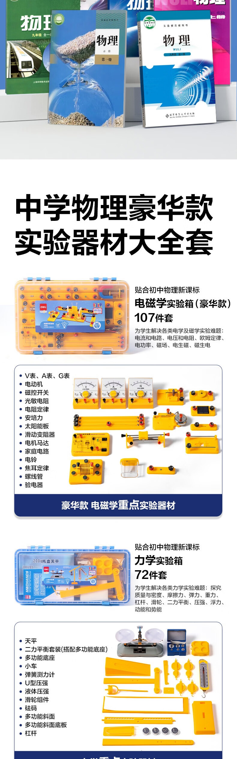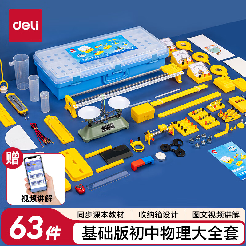 得力(deli)【先人一步】初中物理实验器材全套电磁学光学力学声学热学实验箱盒初二三八九年级中学生教材同步