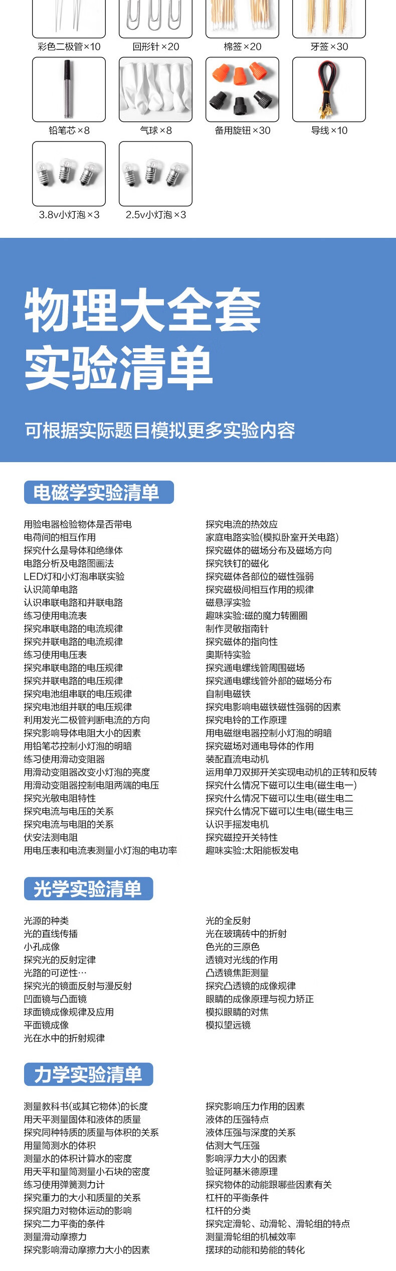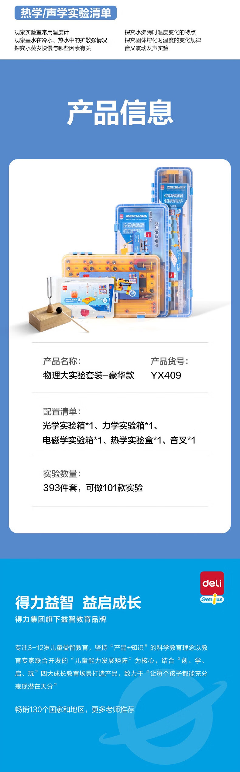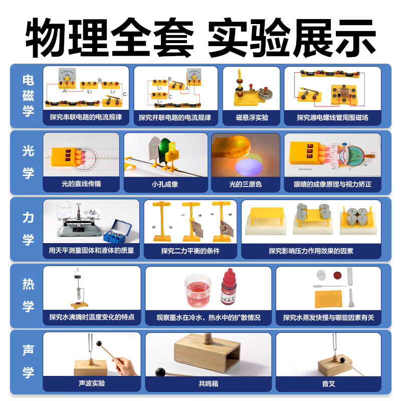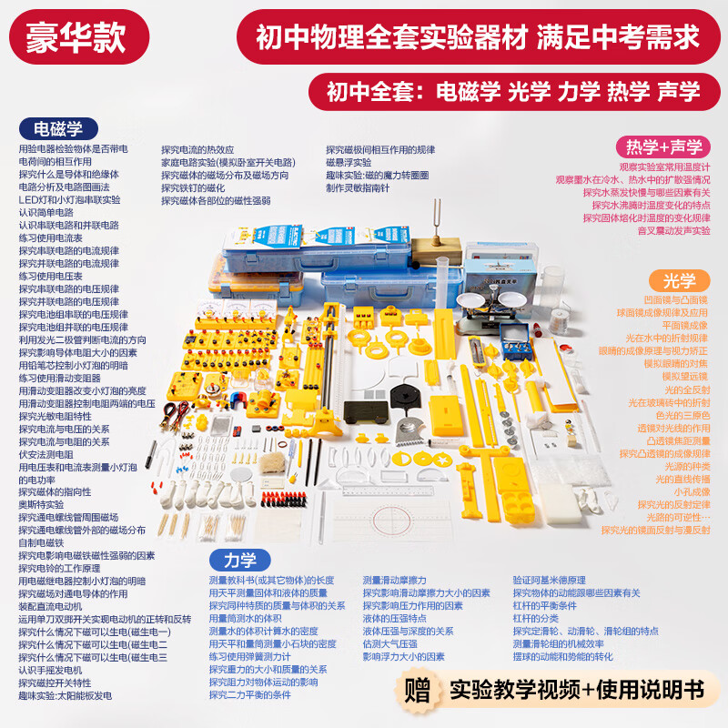 得力(deli)【先人一步】初中物理实验器材全套电磁学光学力学声学热学实验箱盒初二三八九年级中学生教材同步