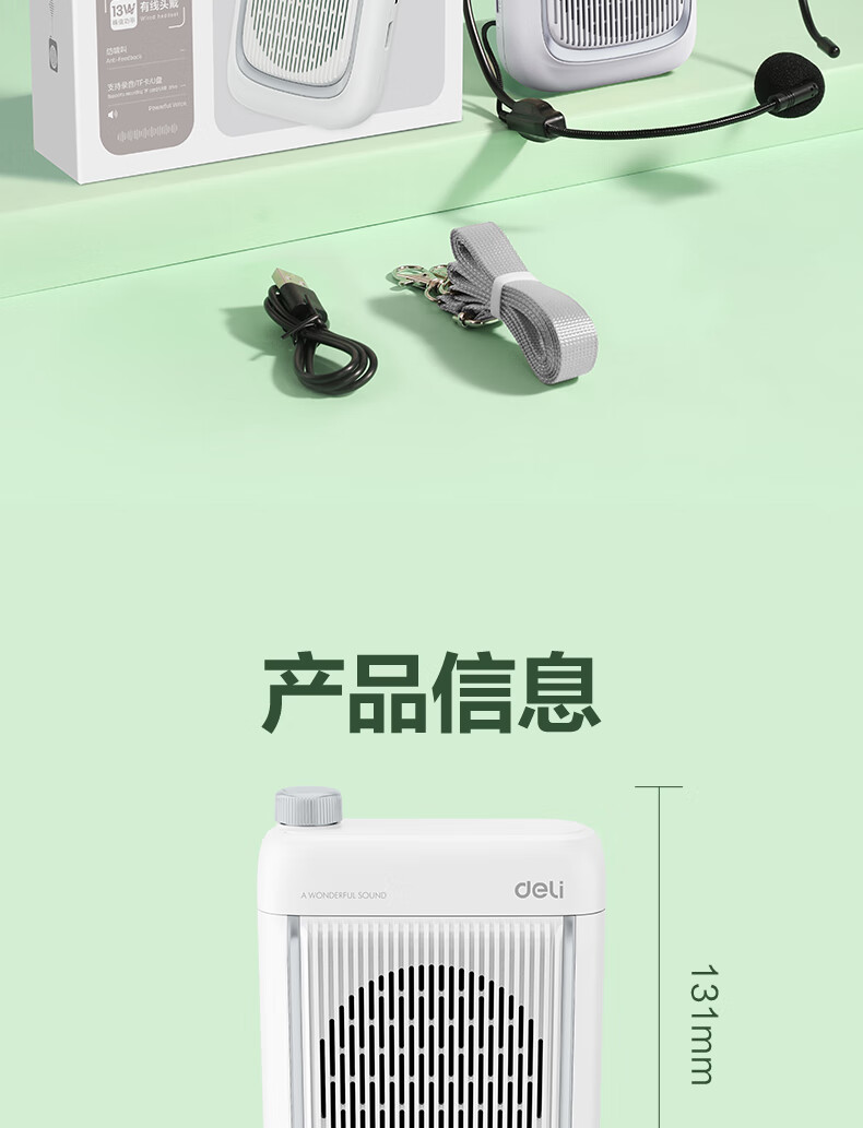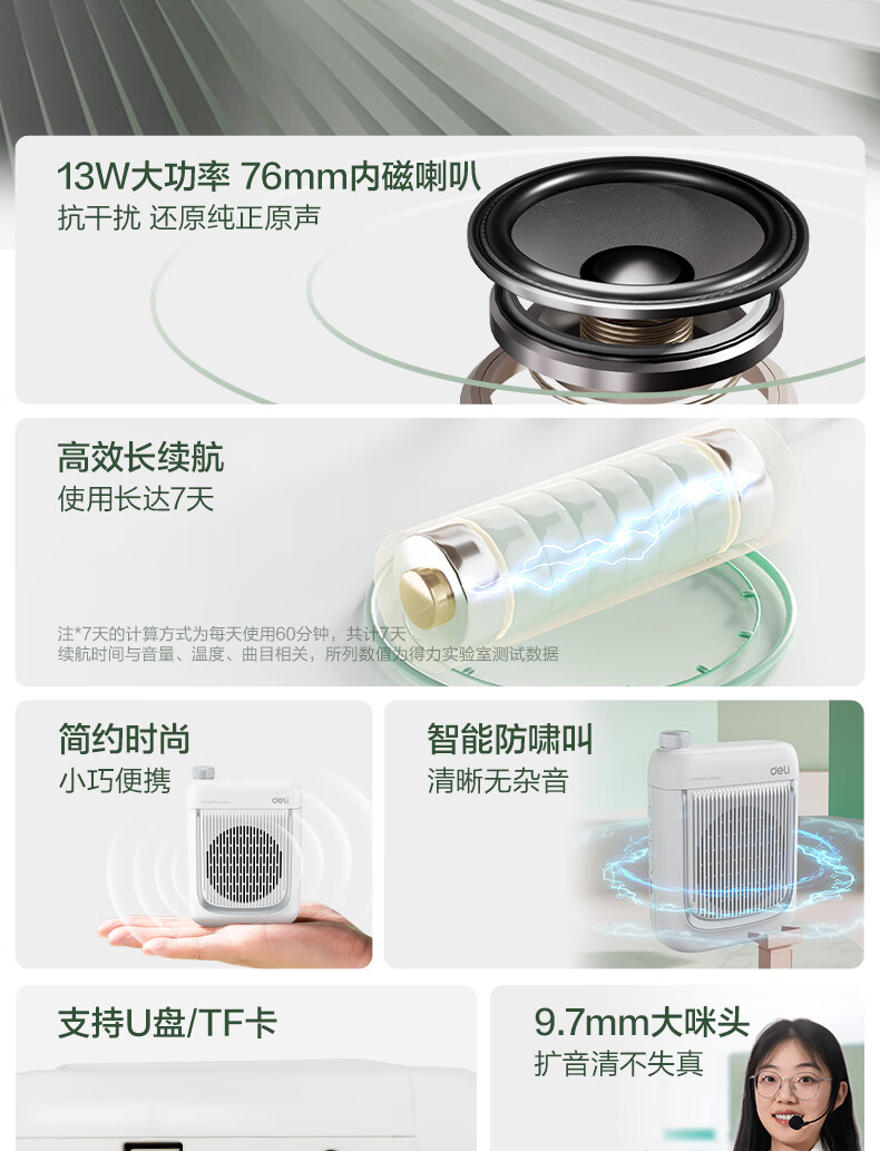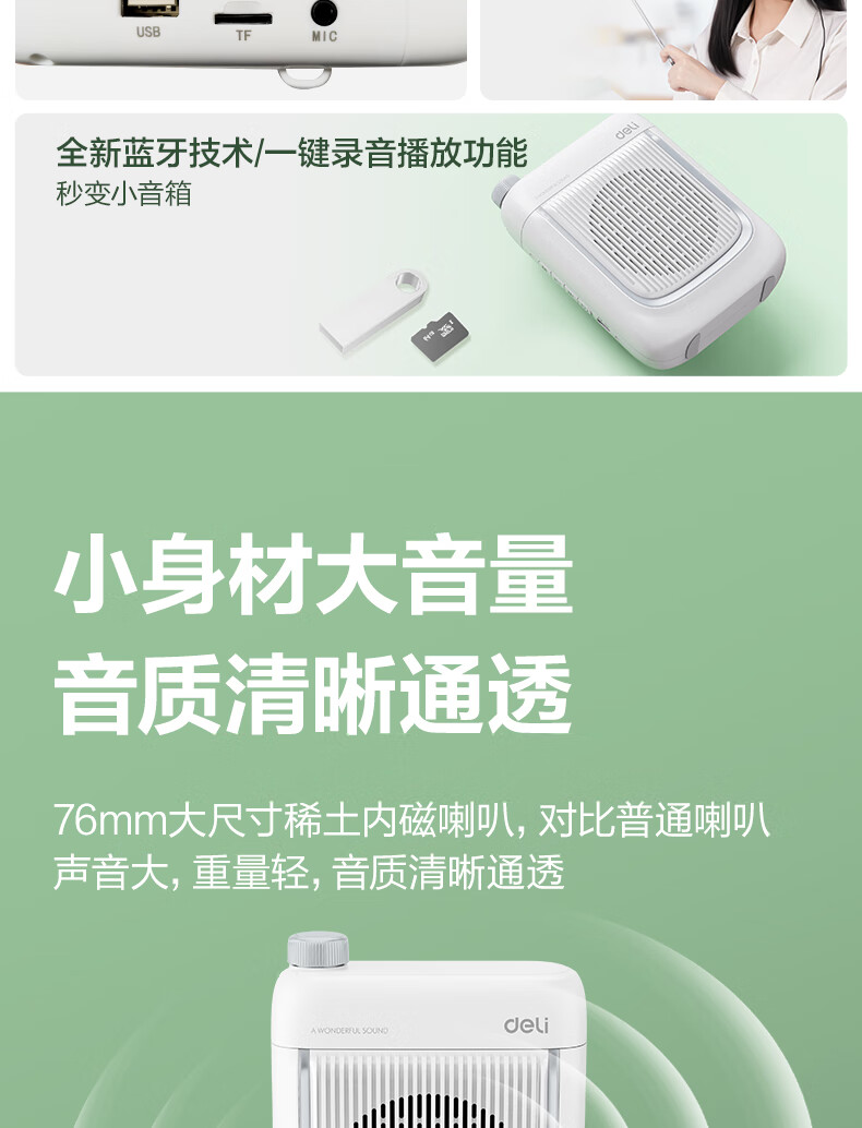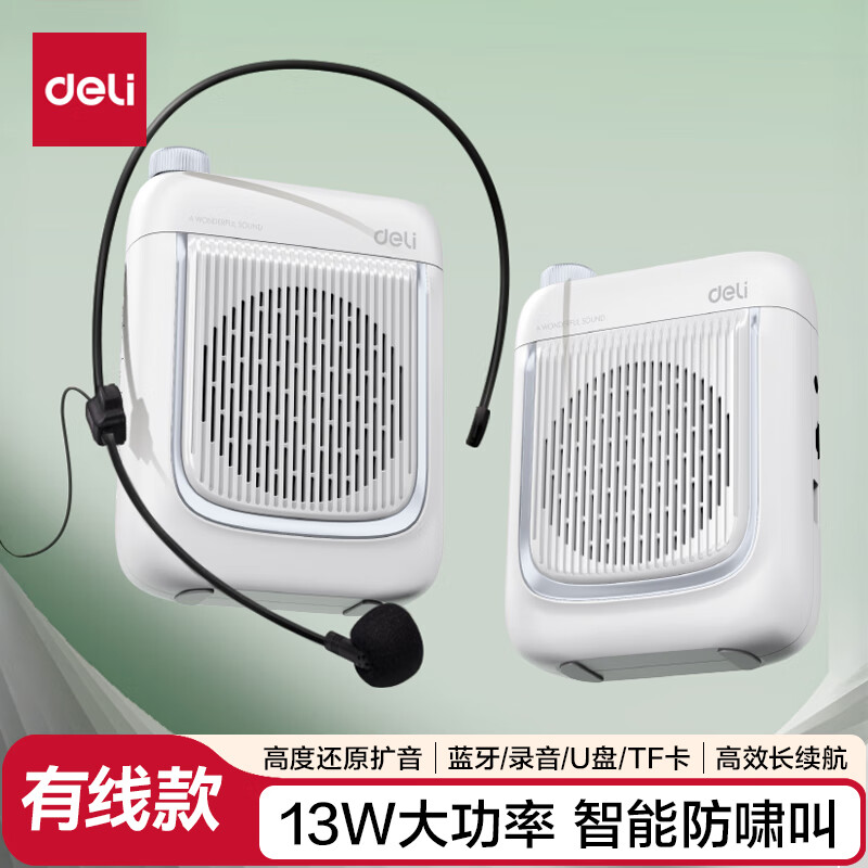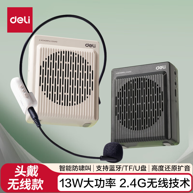 得力(deli)13W小蜜蜂扩音器教师喇叭导游腰挂麦克风蓝牙音箱便携喊话器讲课教学喇叭大音量教师生日礼物