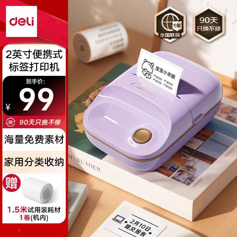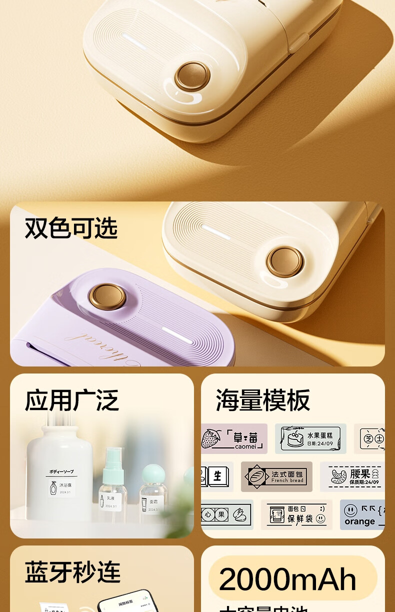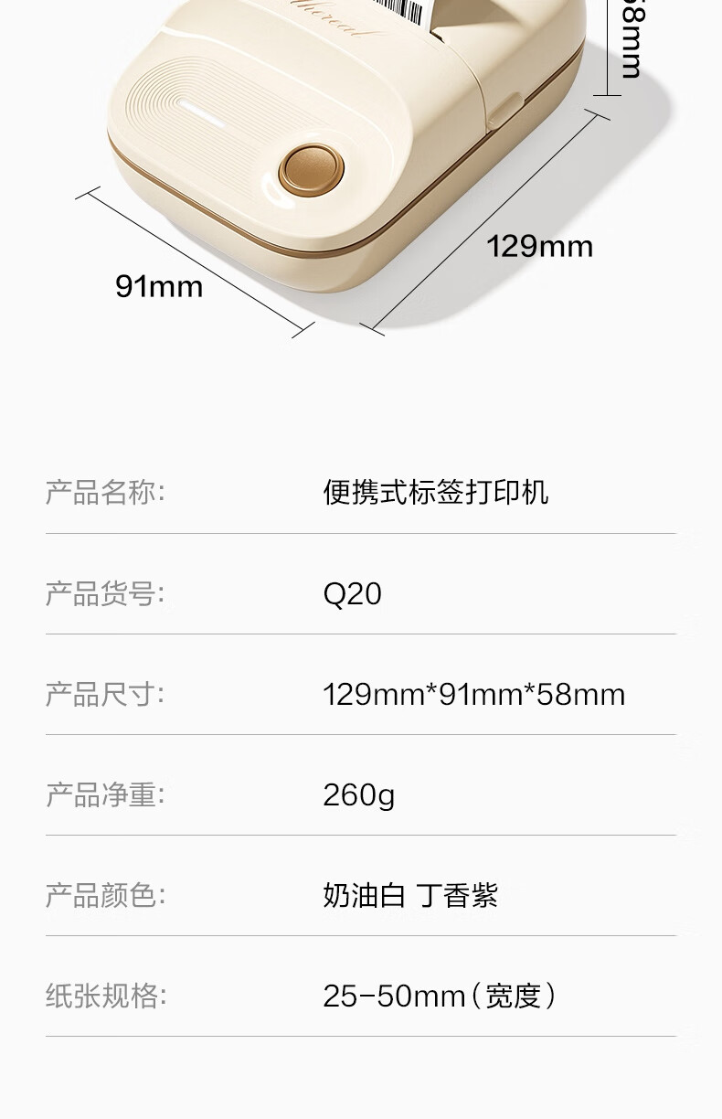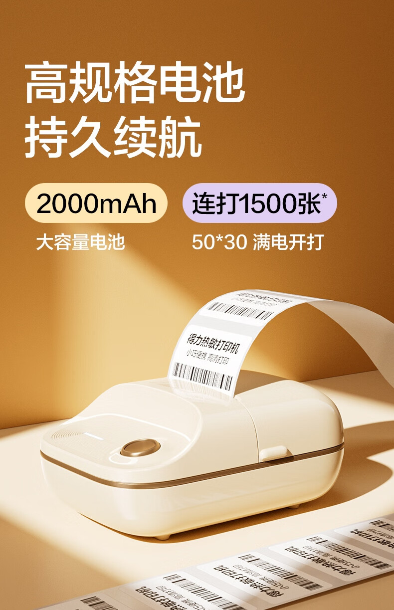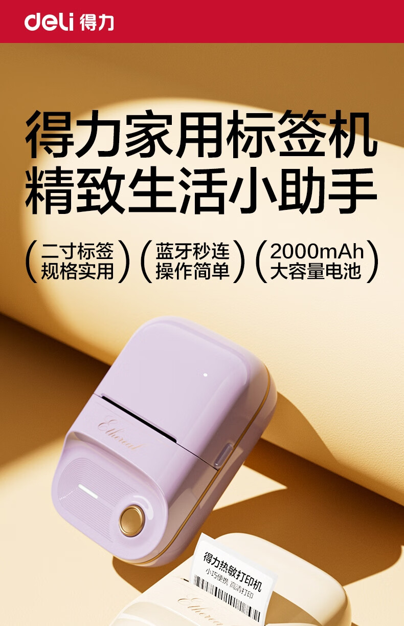 得力(deli)Q20白色 家用便携式热敏标签打印机 手账姓名贴收纳标识价格签食品标签打印机 手机蓝牙连接