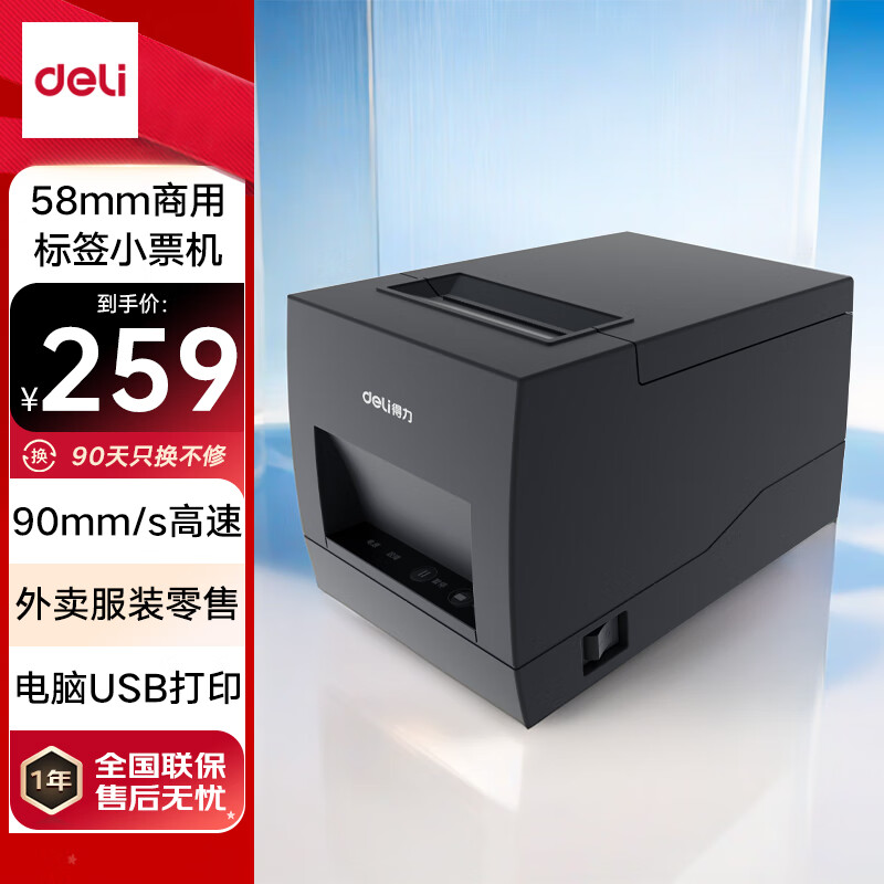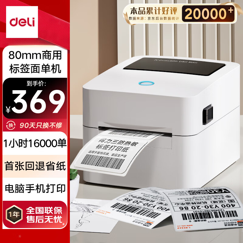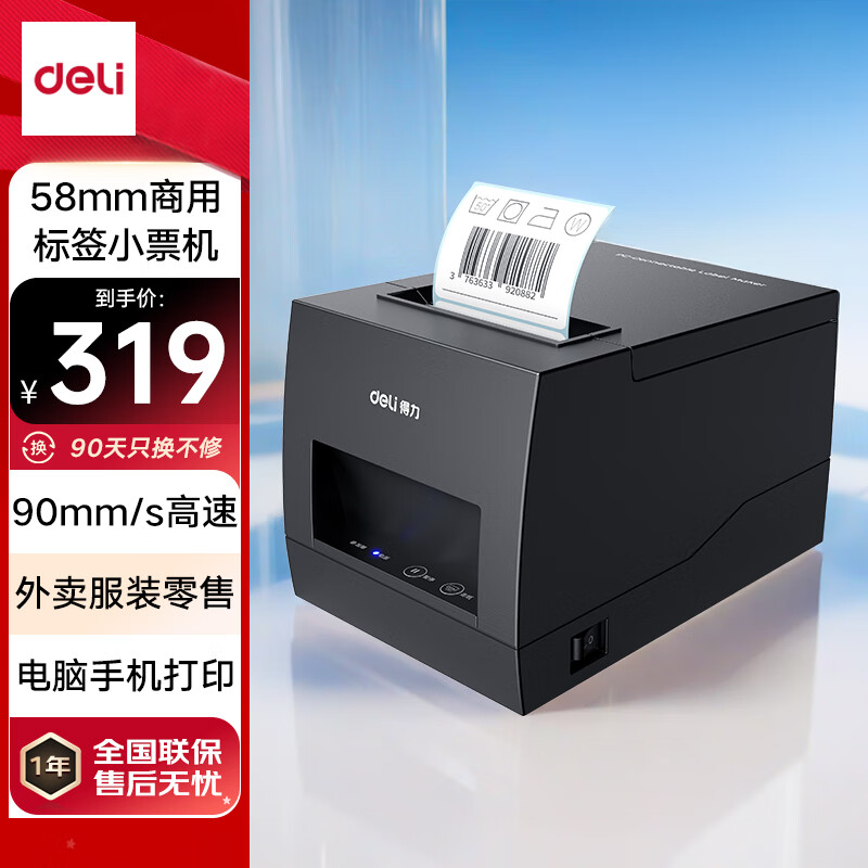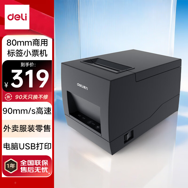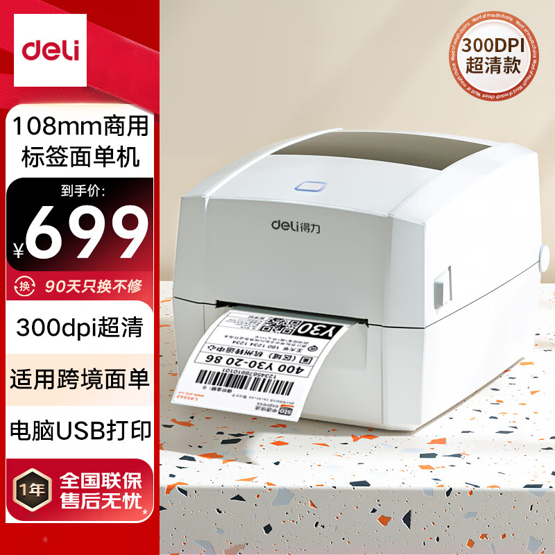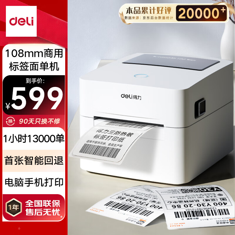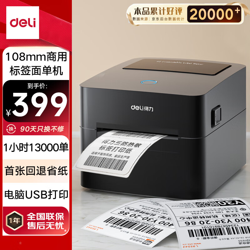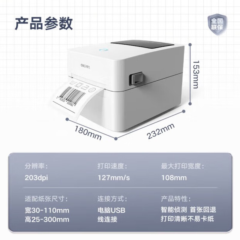得力(deli)DL-888B(NEW)热敏标签打印机 快递仓储物流面单固资108mm商用办公打单不干胶条码大纸仓打印 USB版