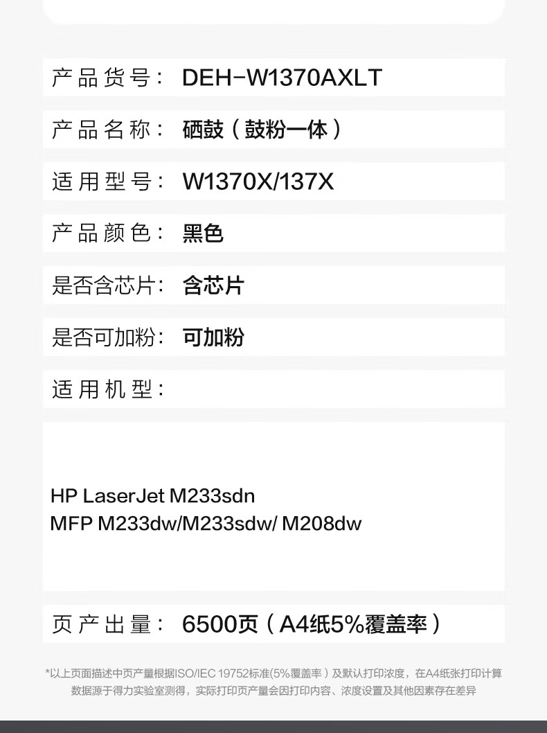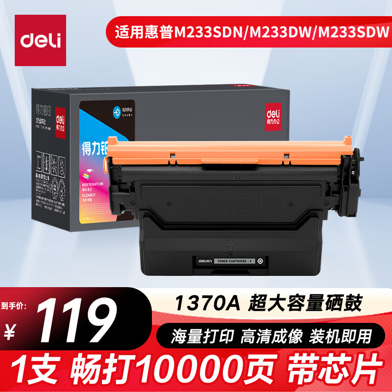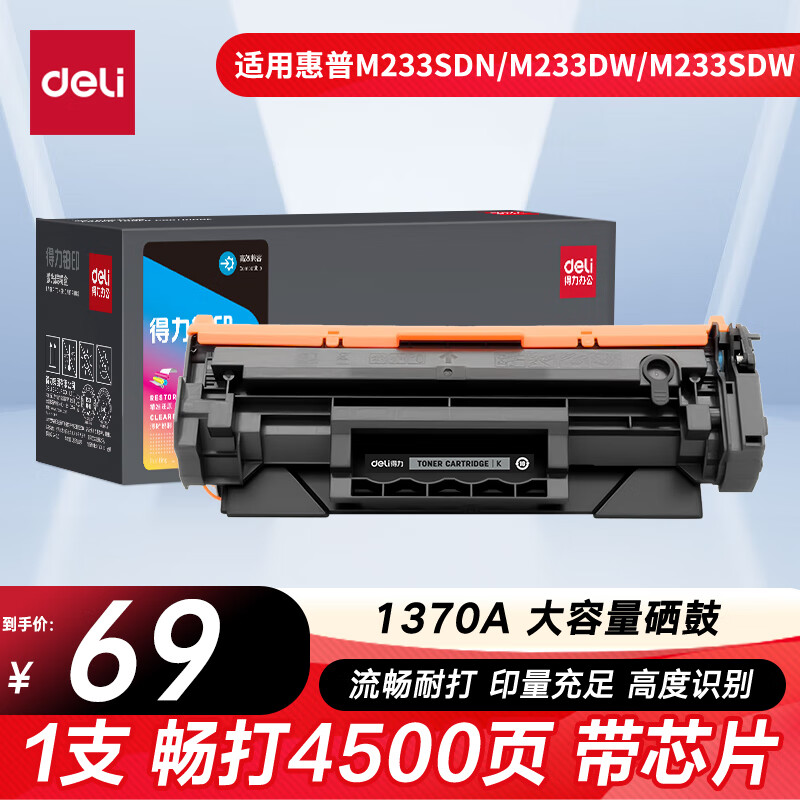 得力(deli)137a硒鼓 1370a硒鼓适用惠普m232dw硒鼓hp233sdw m233dw m232dwc m208dw m233sdn/sdw打印机硒鼓带芯片6500页