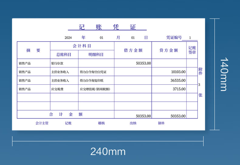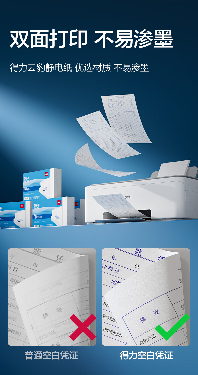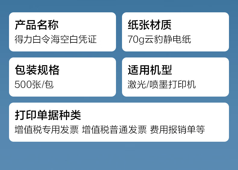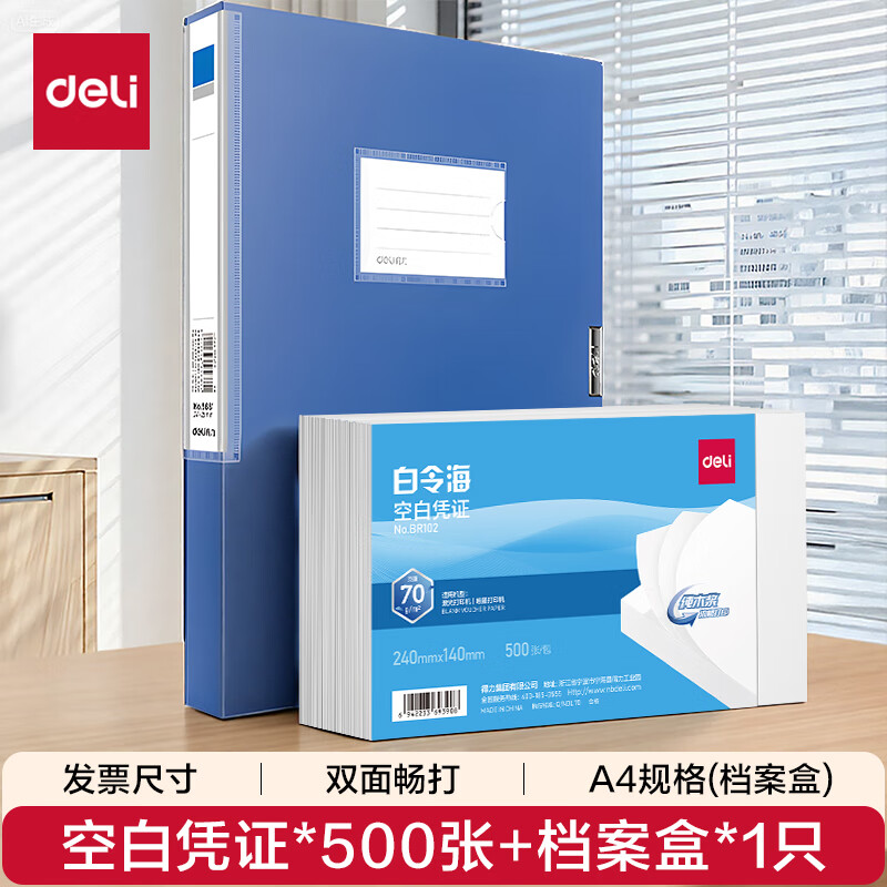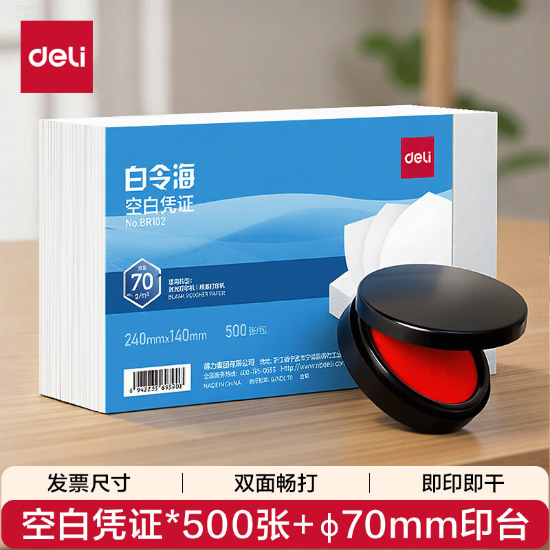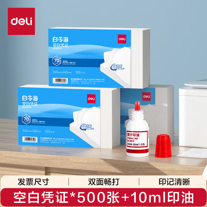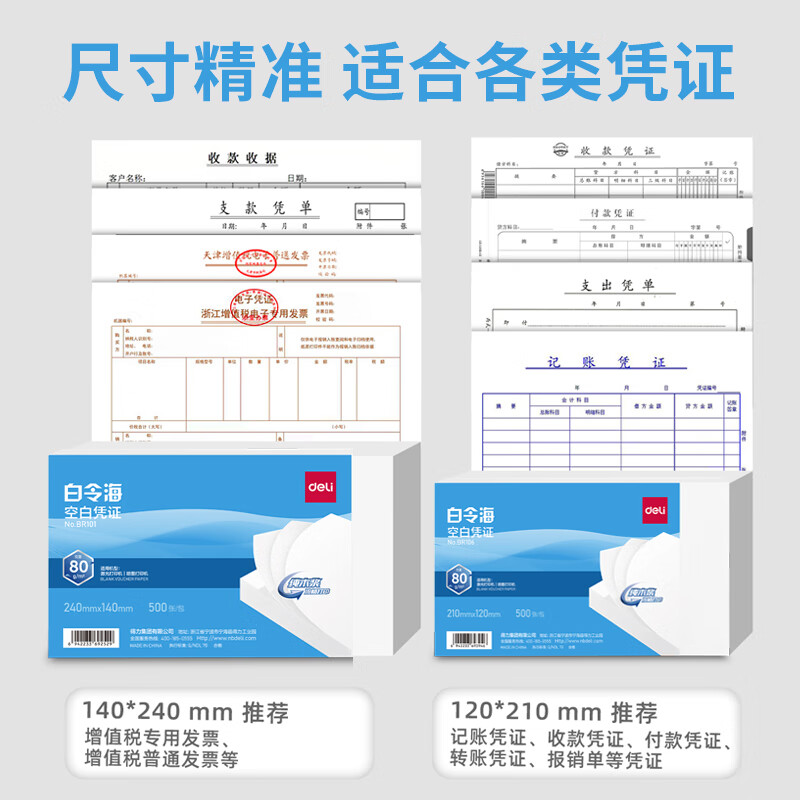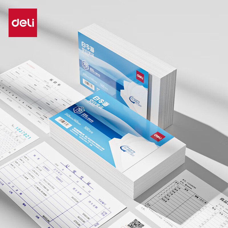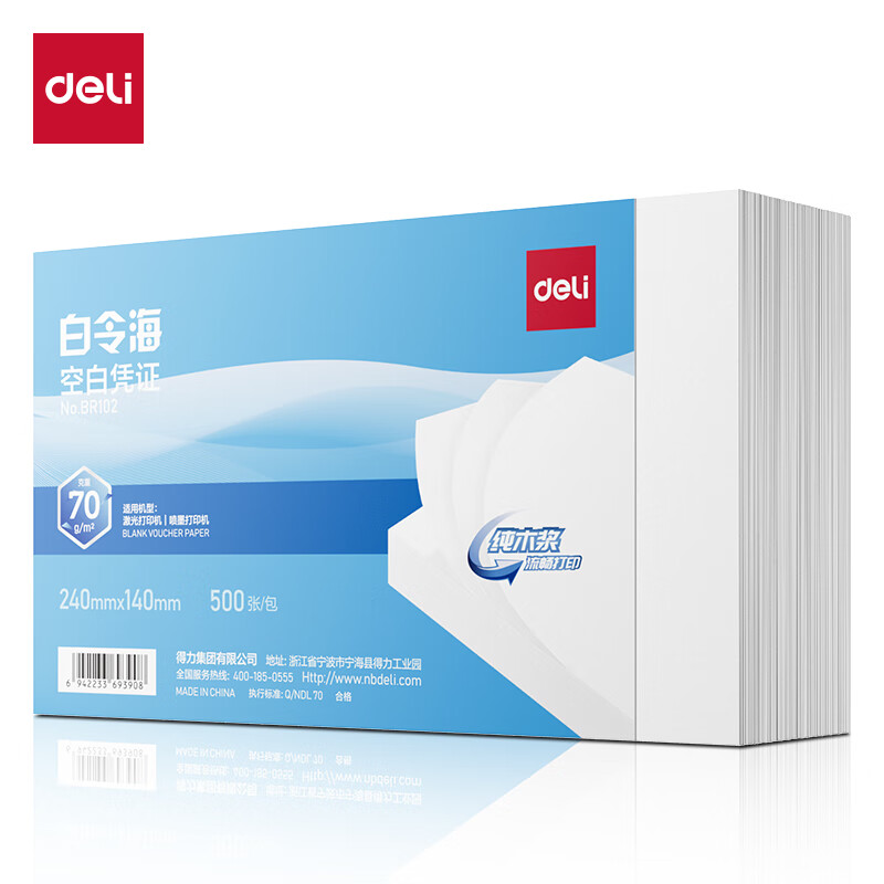 得力(deli) 白令海空白凭证打印纸发票版240*140mm 适用金蝶用友财务软件 空白单据 500张/包 70g纸张BR102