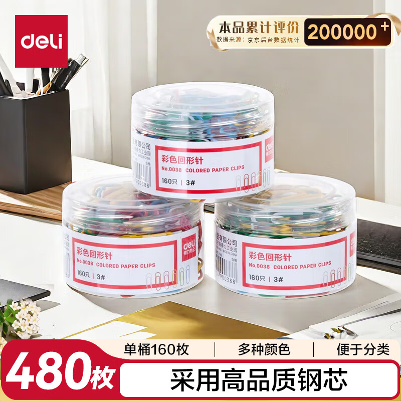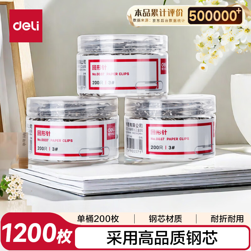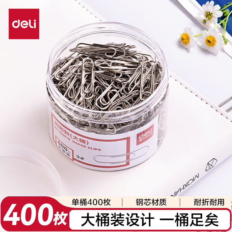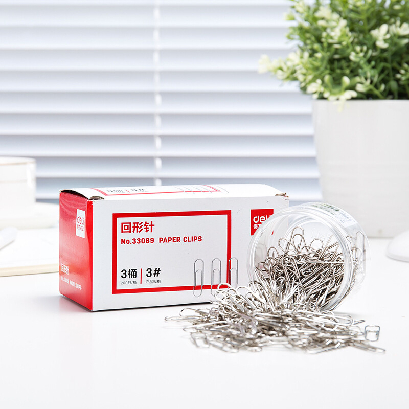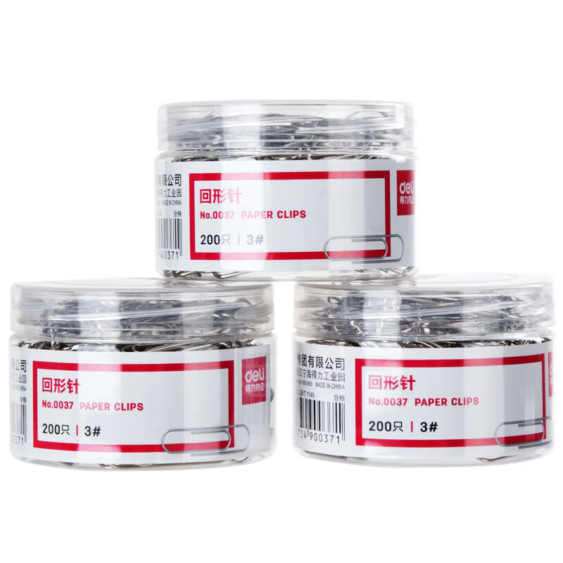 得力(deli)(deli)29mm镀镍回形针 3#金属防锈曲别针 200枚/筒 3筒装 办公室文具用品 33089