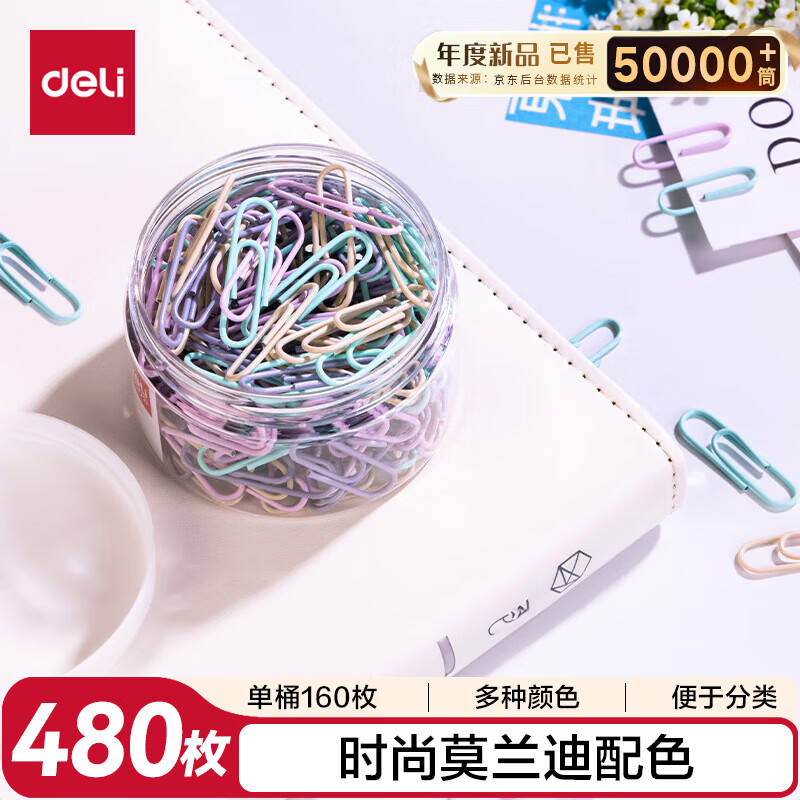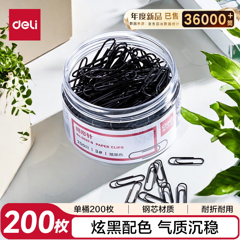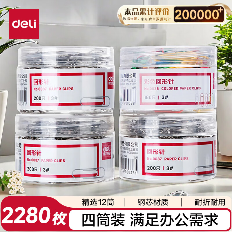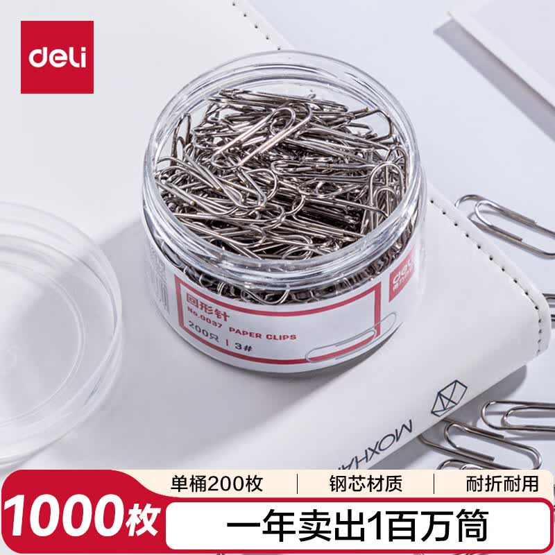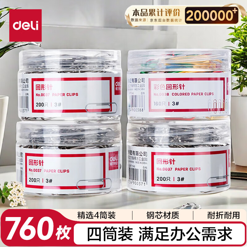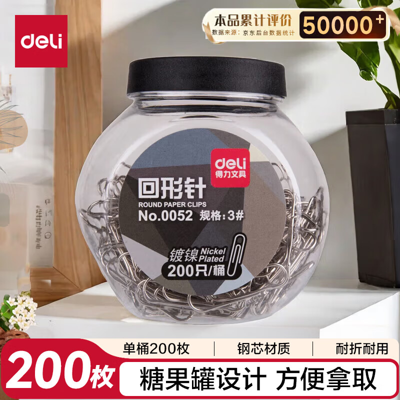 得力(deli)(deli)29mm镀镍回形针 3#金属防锈曲别针 200枚/筒 3筒装 办公室文具用品 33089