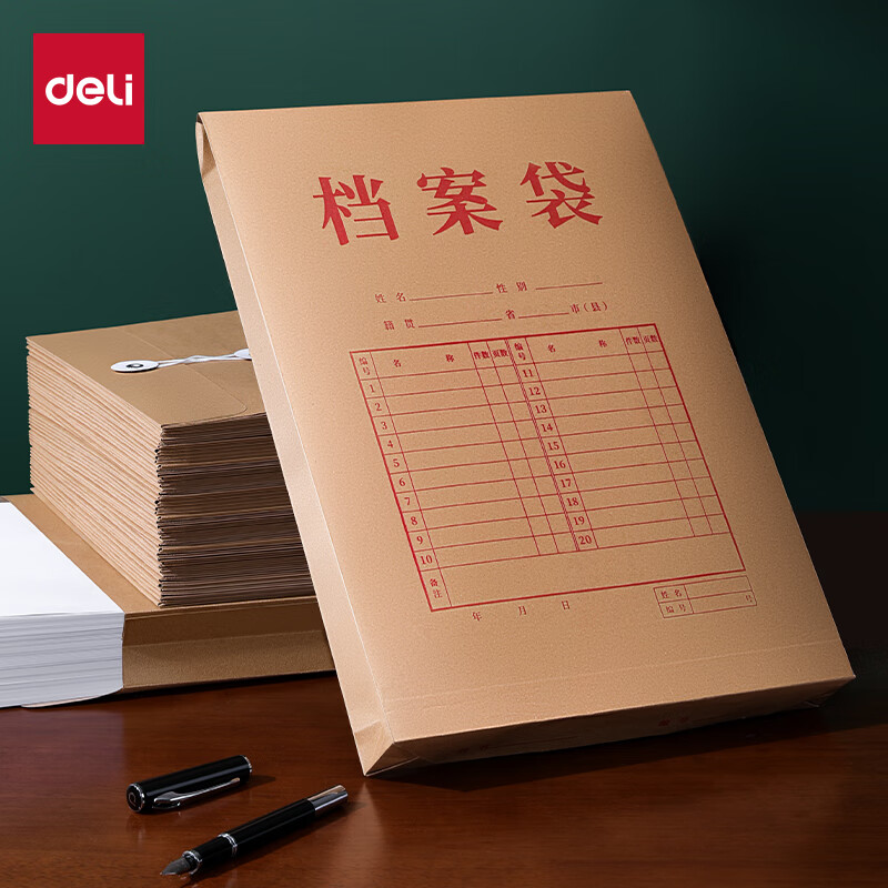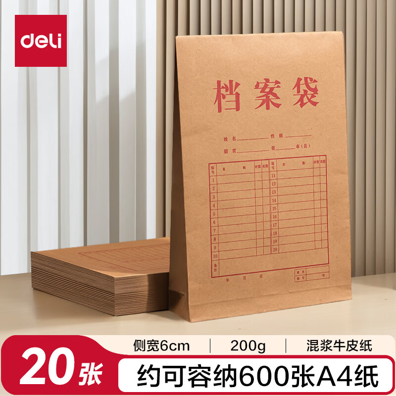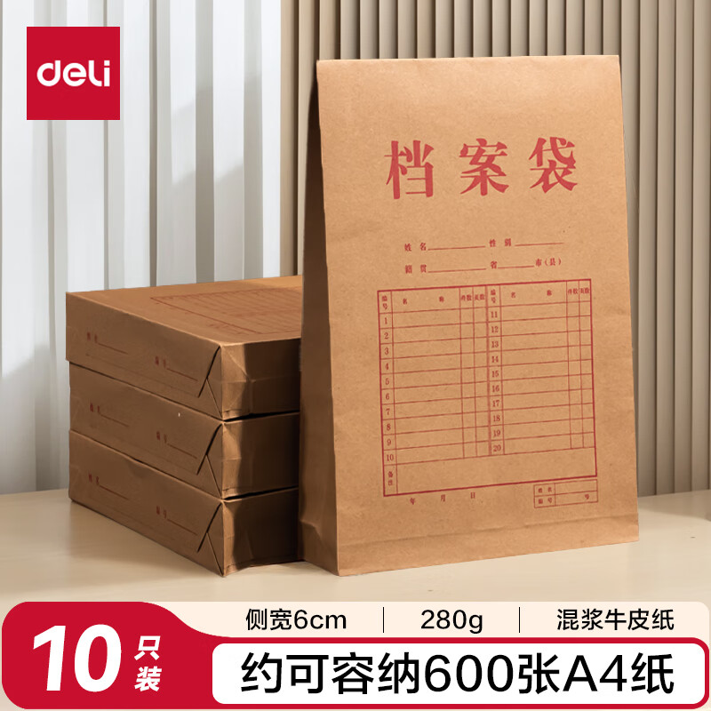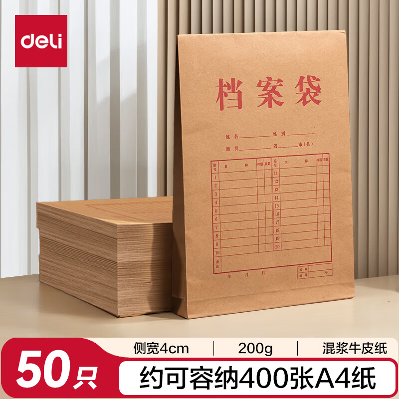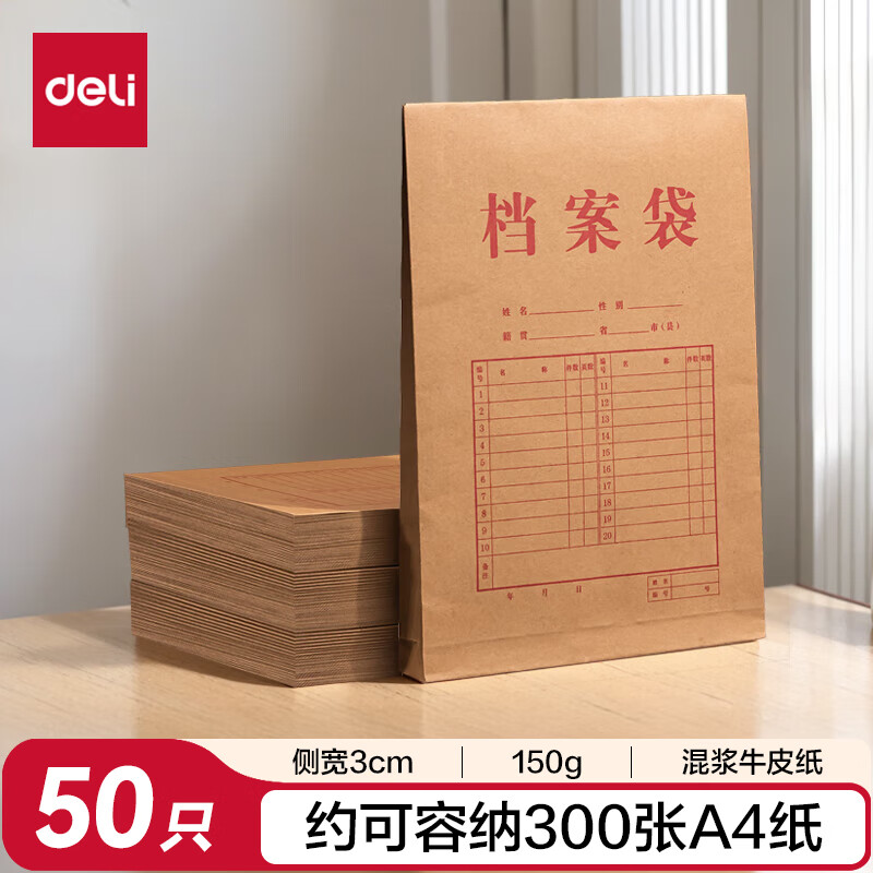 得力(deli)【超级爆款】50只A4混浆175g牛皮纸档案袋侧宽4cm企业标书合同文件票据资料袋33474 得力办公好物