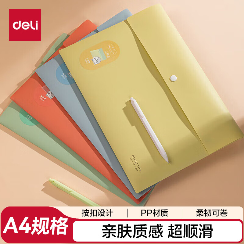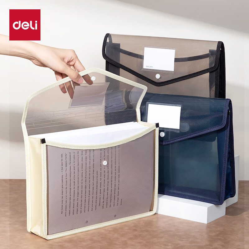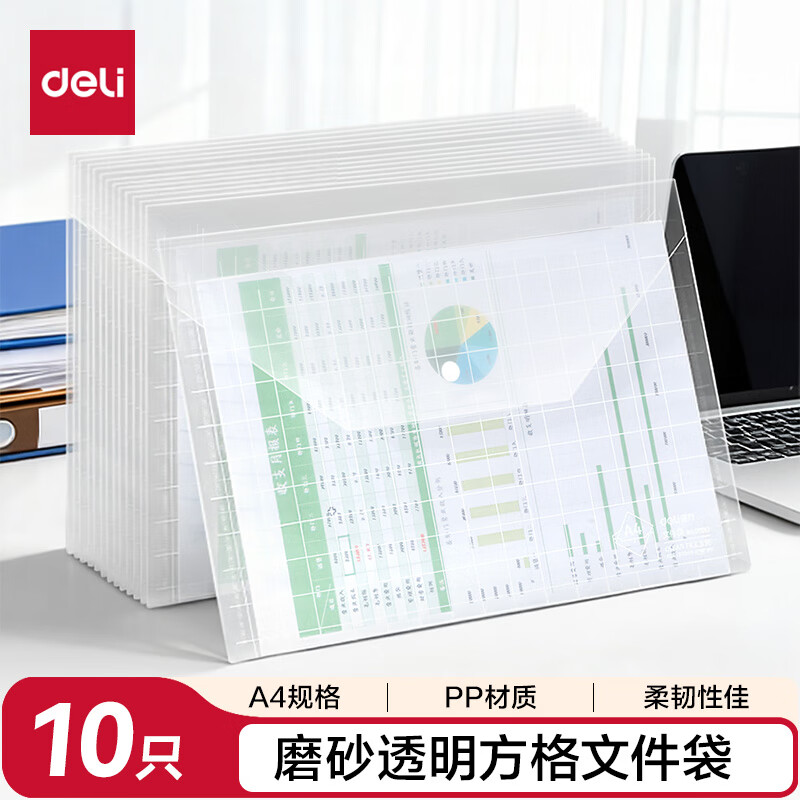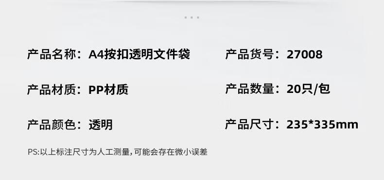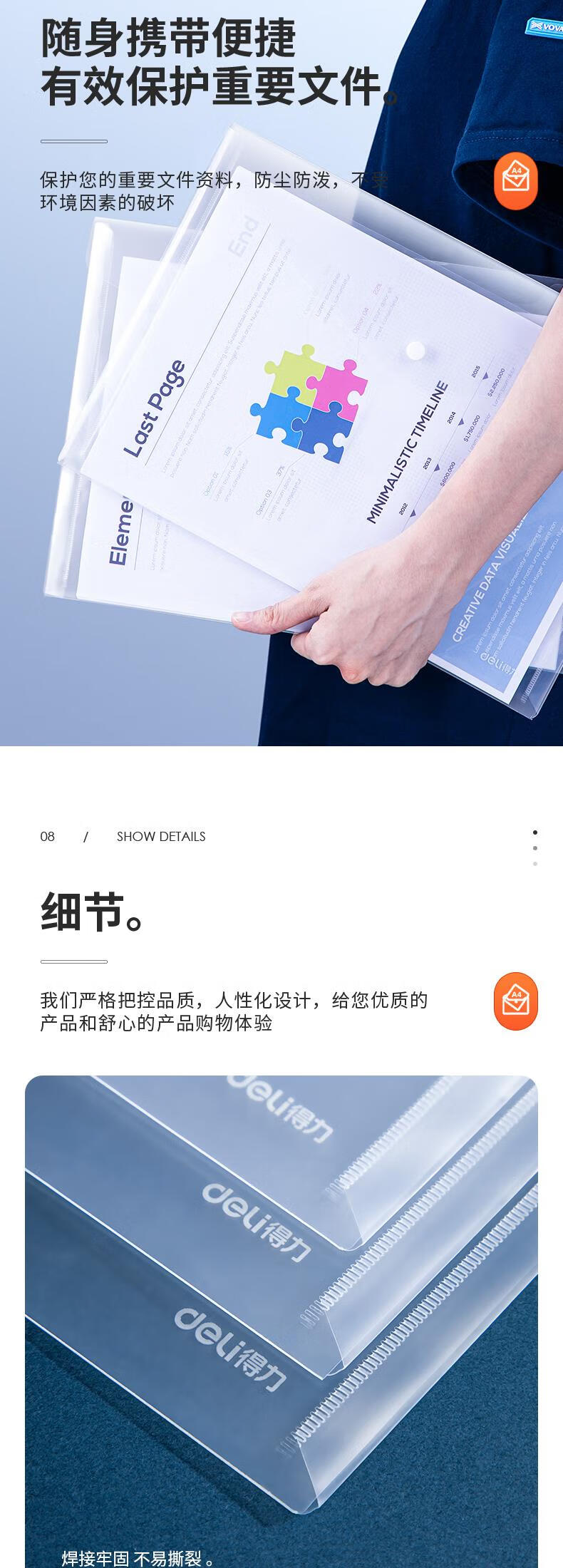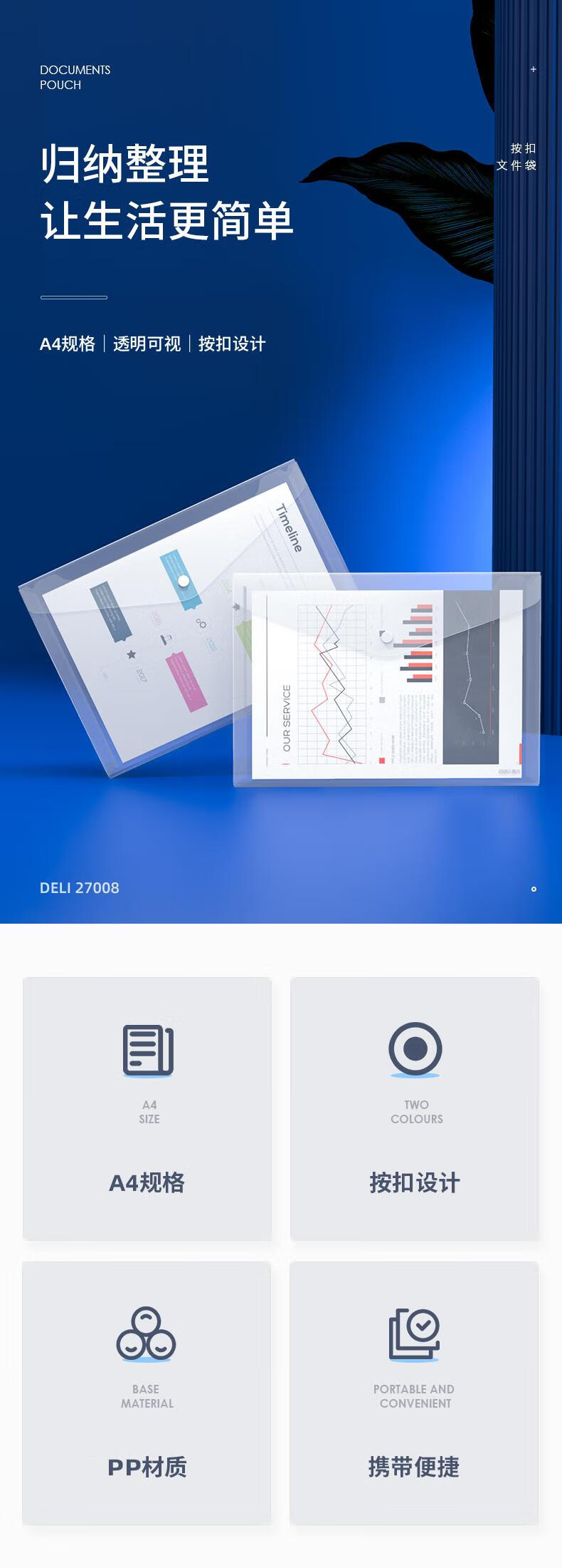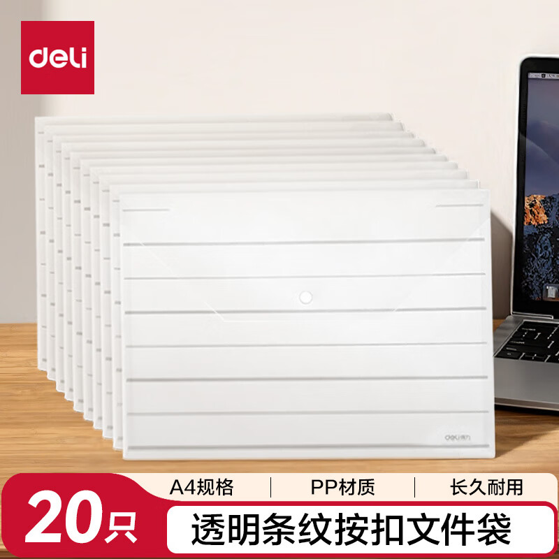 得力(deli)【超级爆款】20只A4按扣学生桌面透明文件袋 试卷收纳文件套资料塑料防水档案袋办公学习用品27008