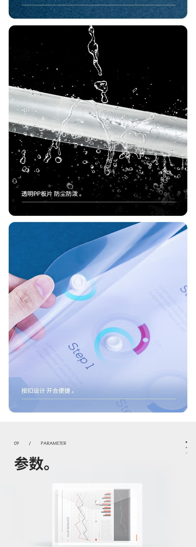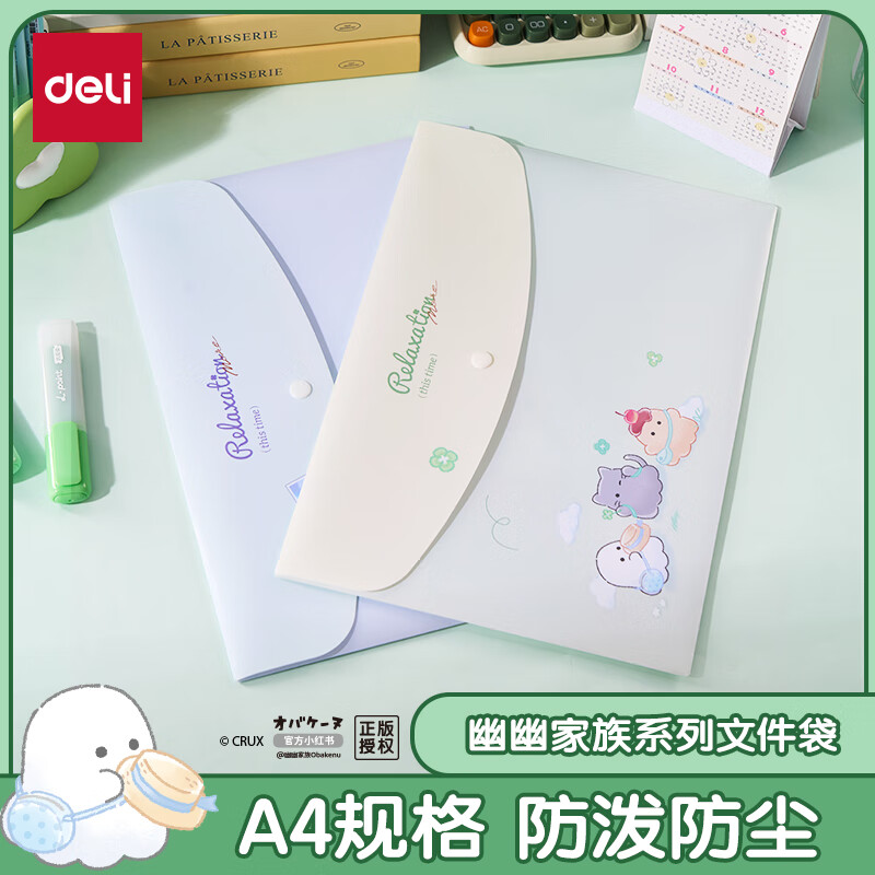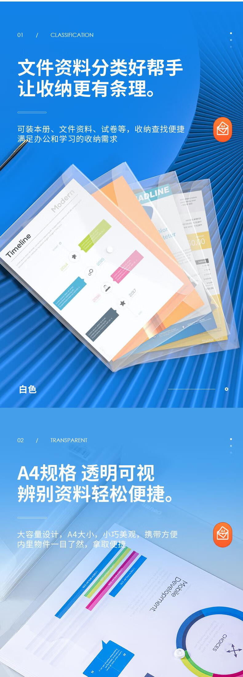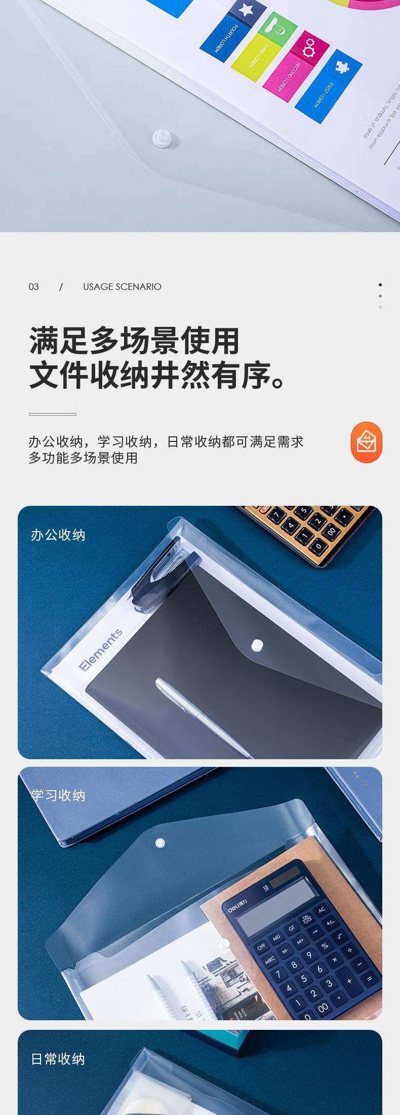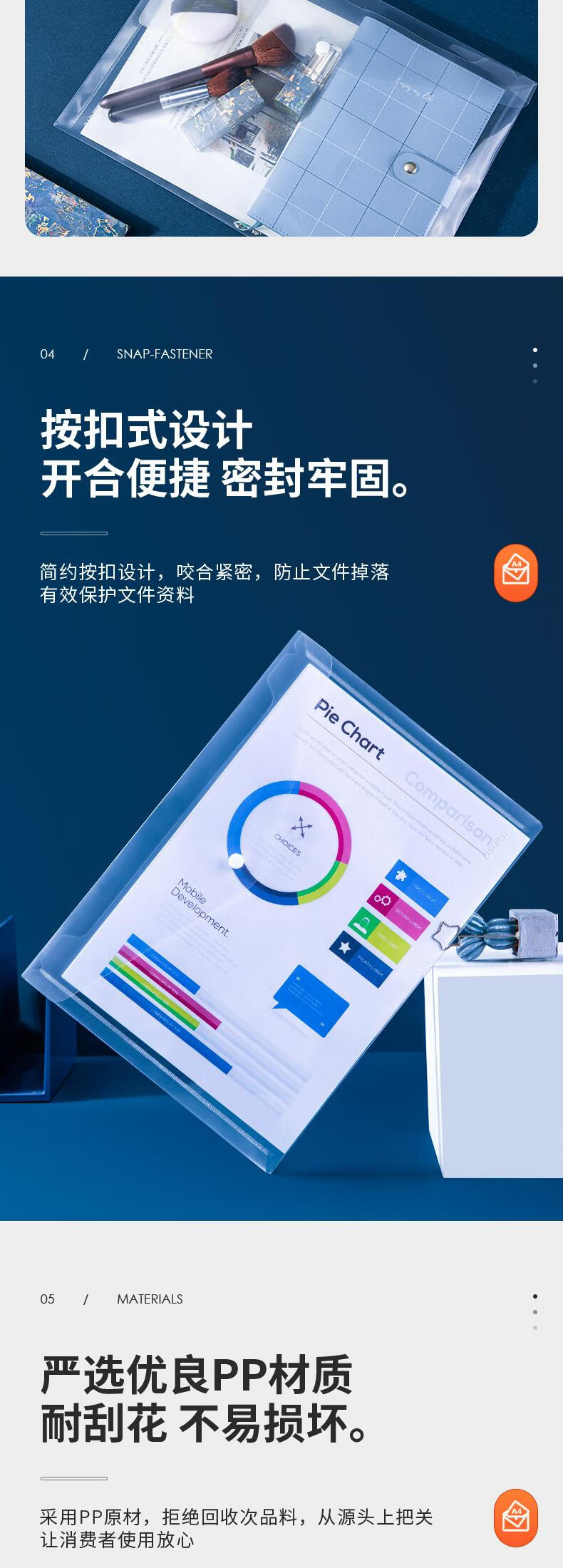 得力(deli)【超级爆款】20只A4按扣学生桌面透明文件袋 试卷收纳文件套资料塑料防水档案袋办公学习用品27008