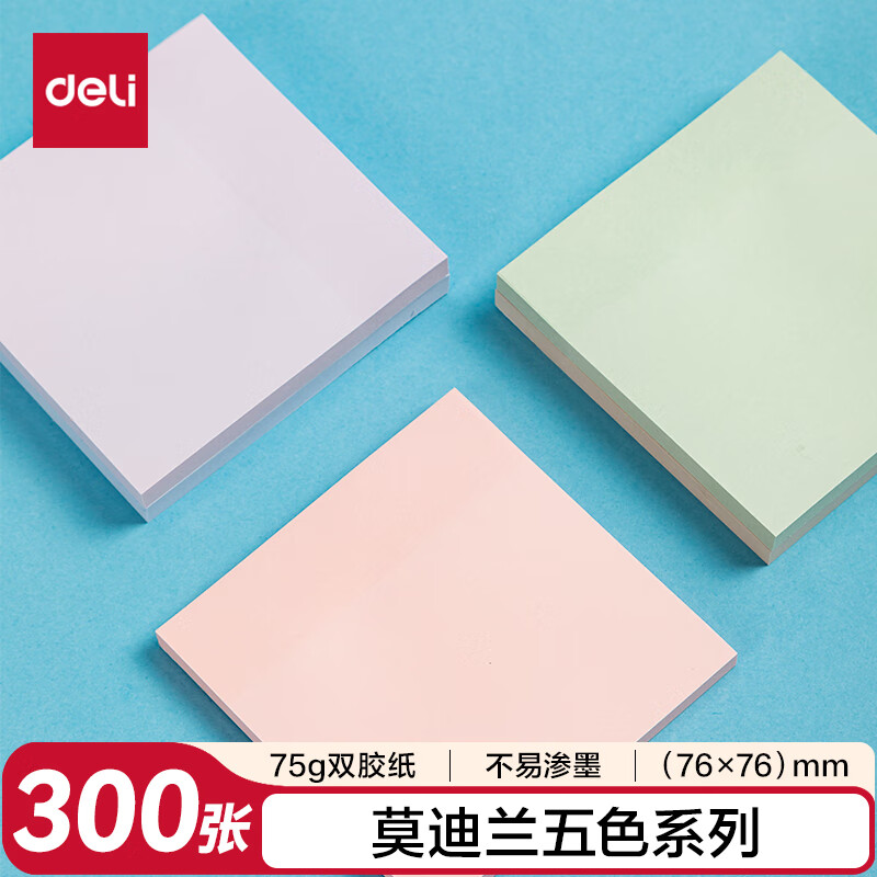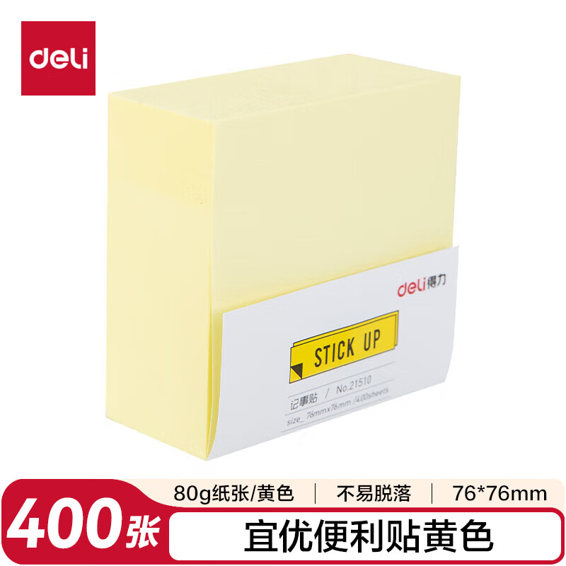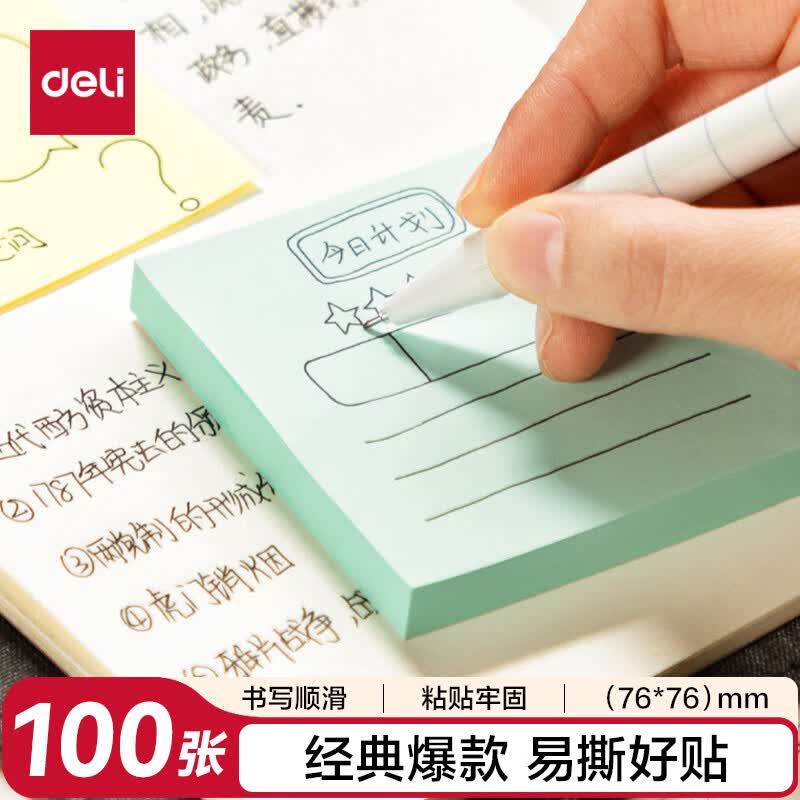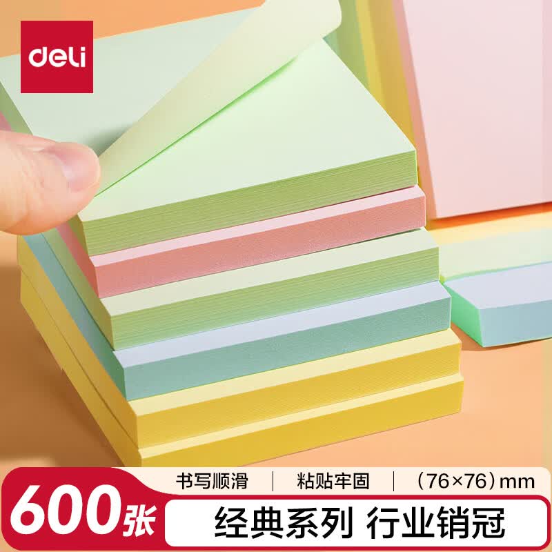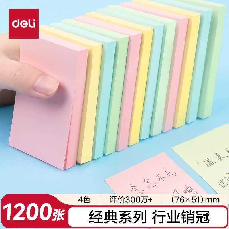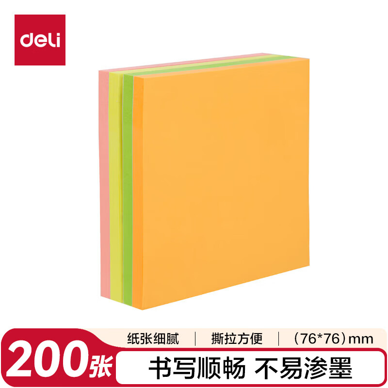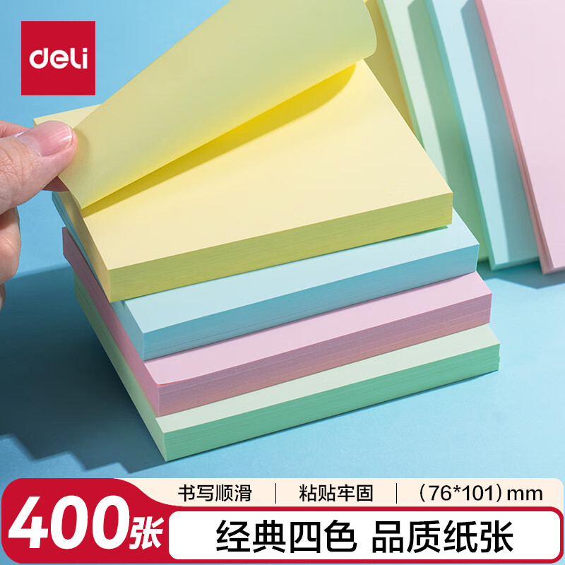 得力(deli)400页4色简约便利贴便签纸76*76mm便签本/记事贴/自粘留言本办公用品BT251