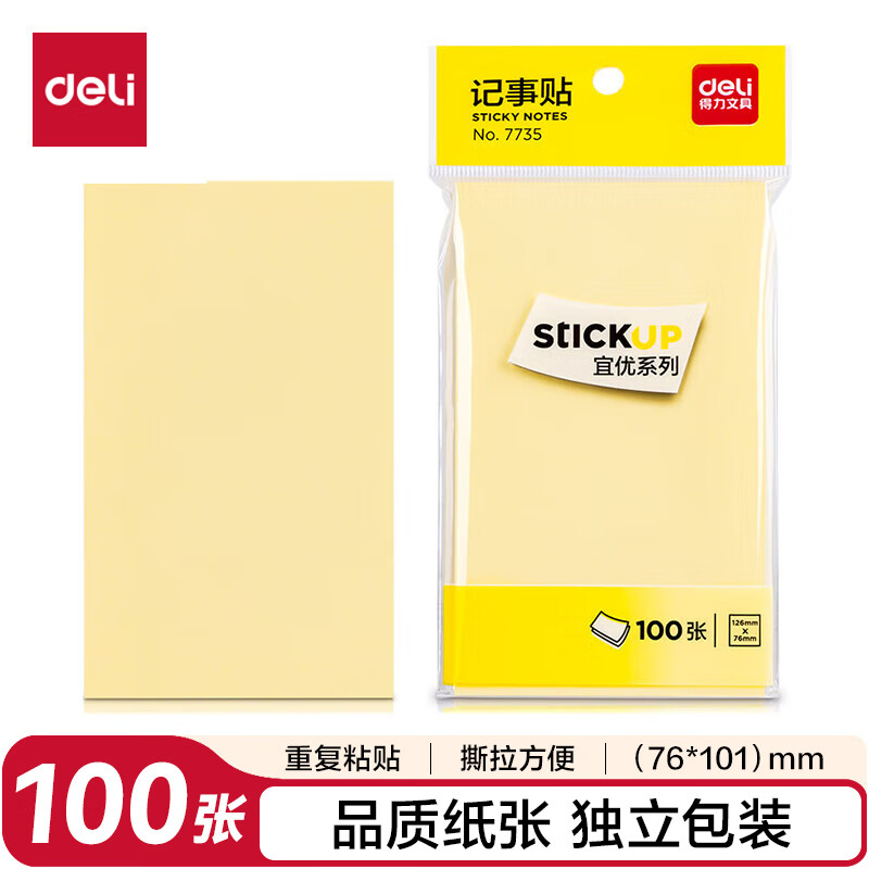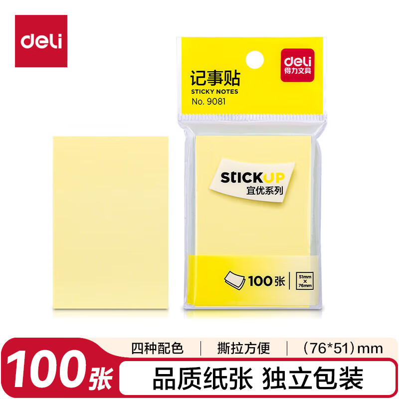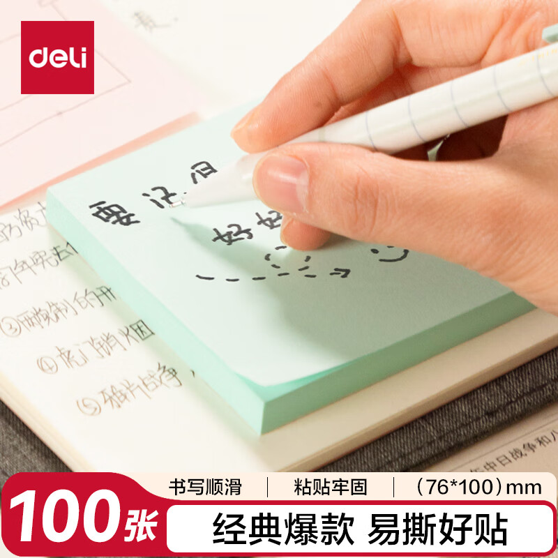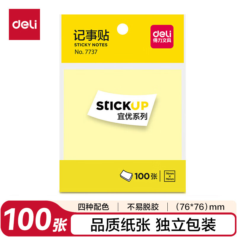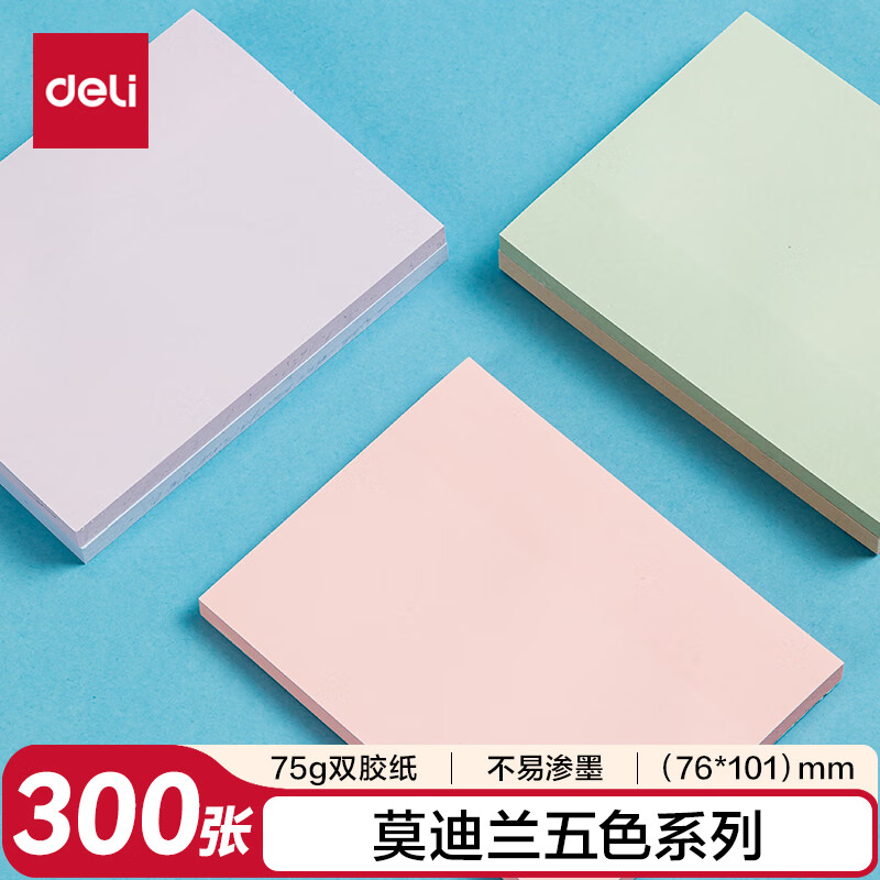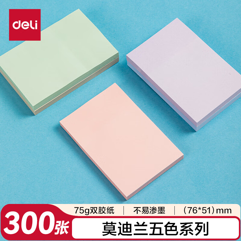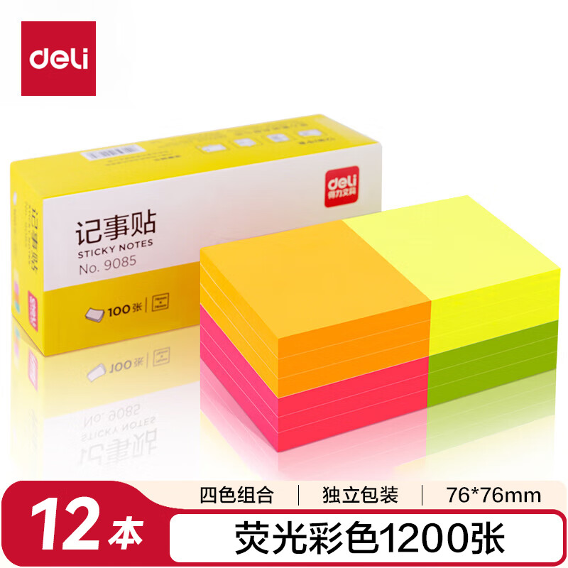 得力(deli)400页4色简约便利贴便签纸76*76mm便签本/记事贴/自粘留言本办公用品BT251