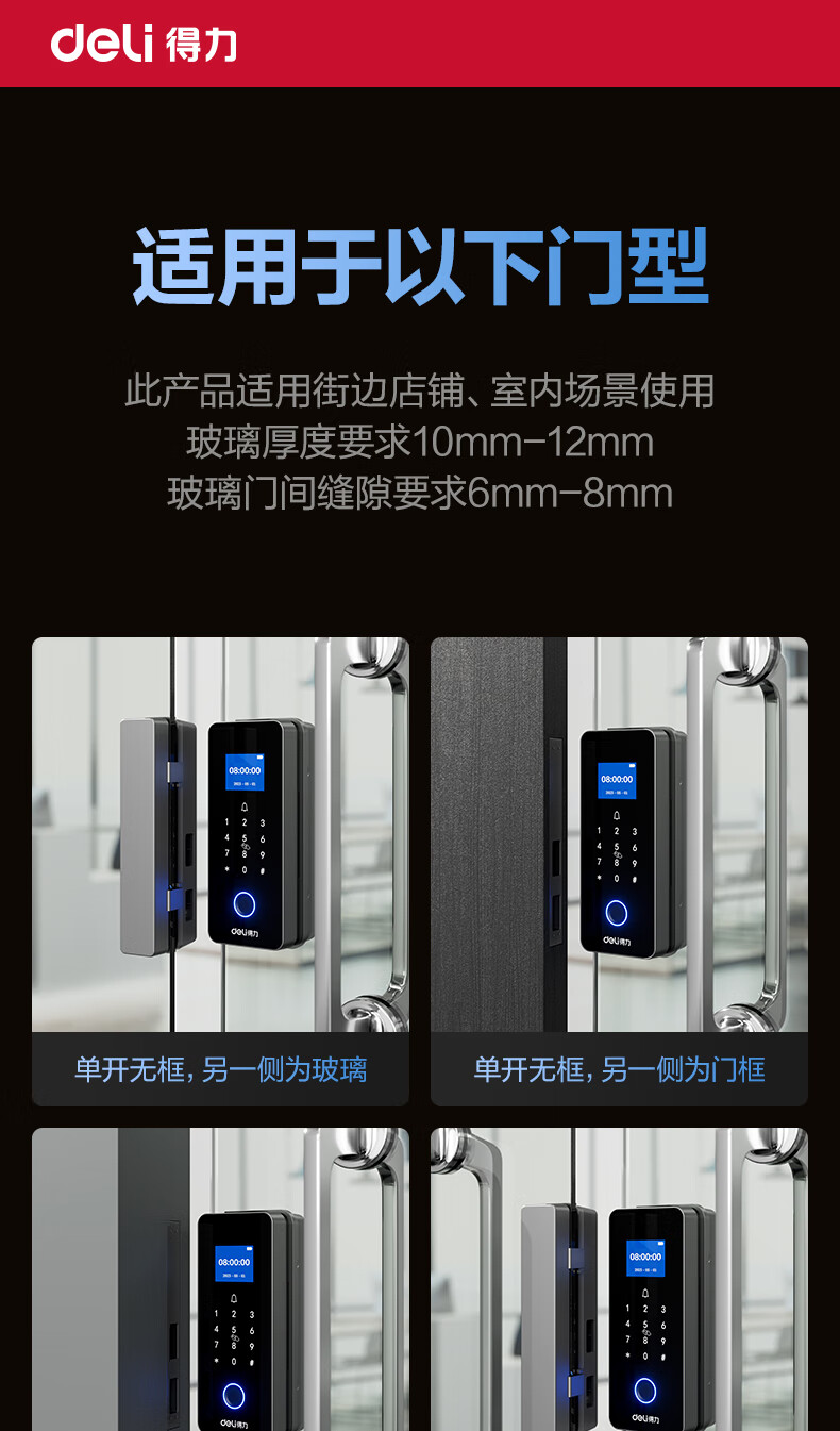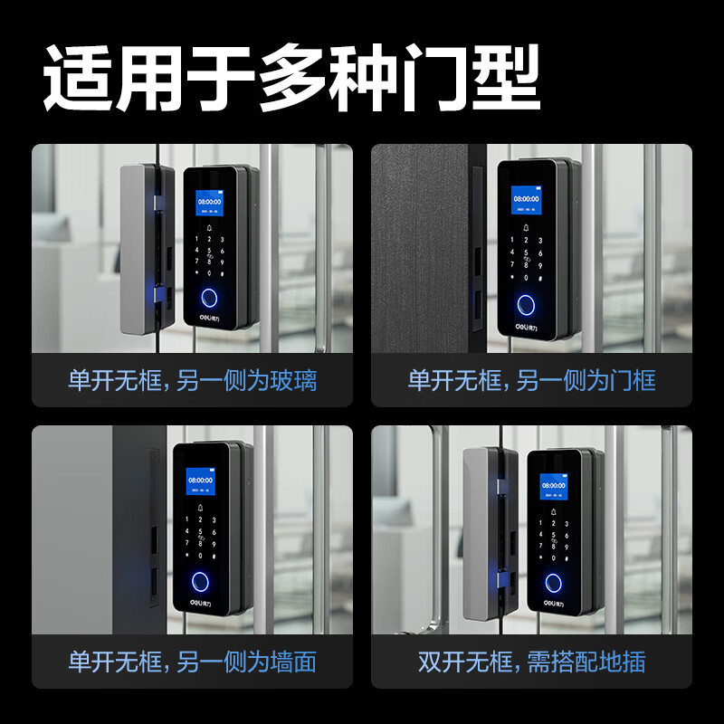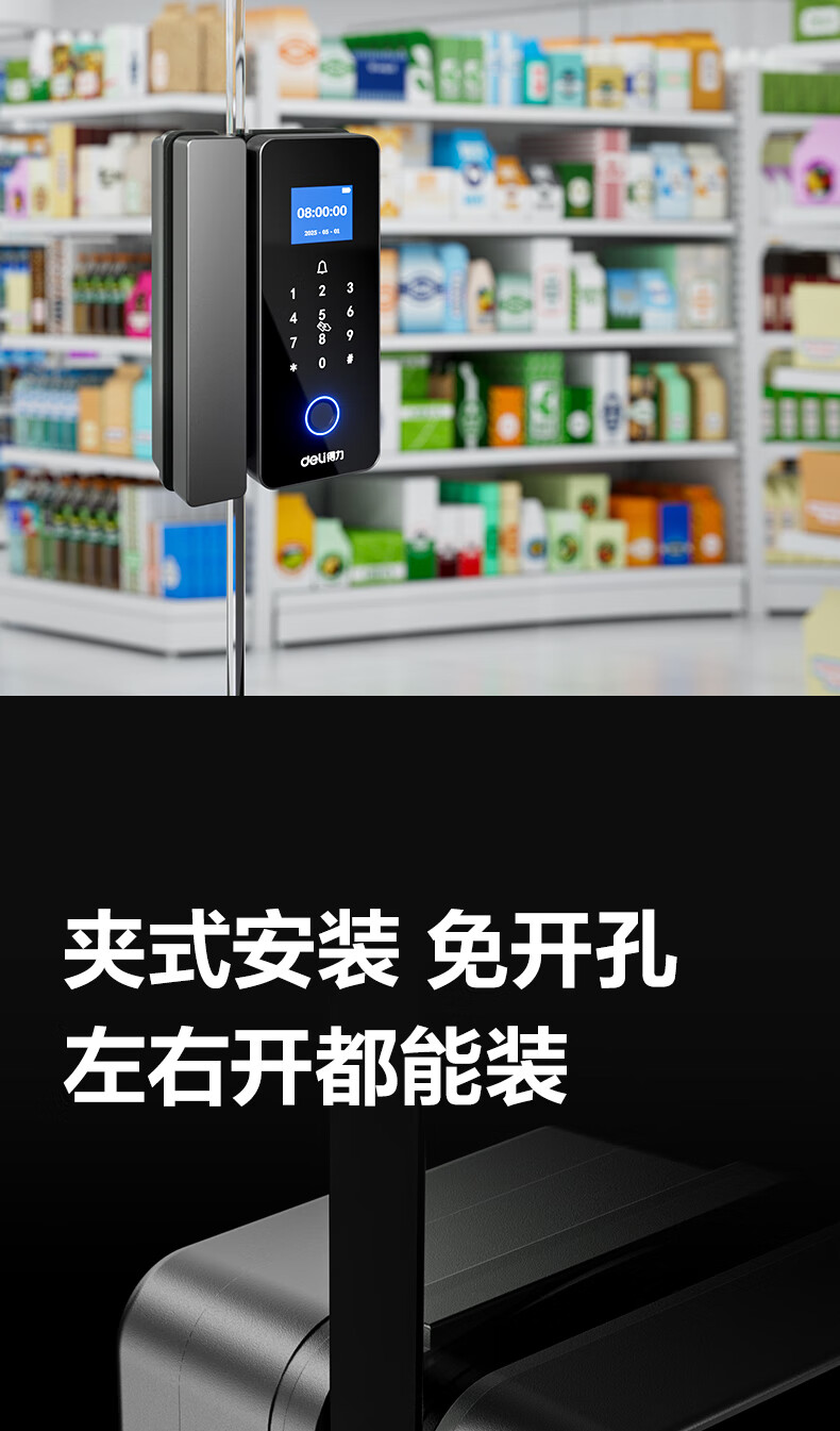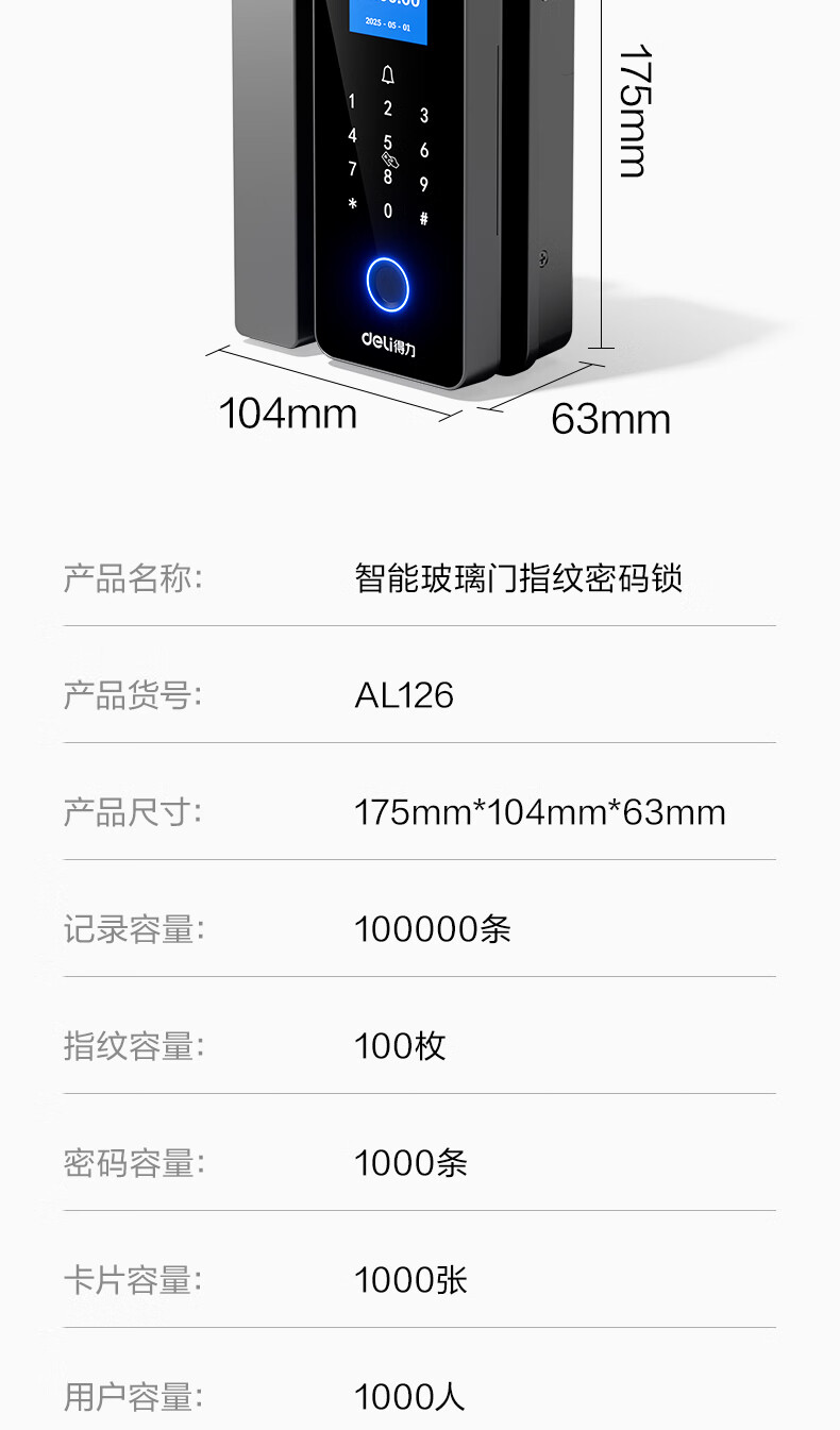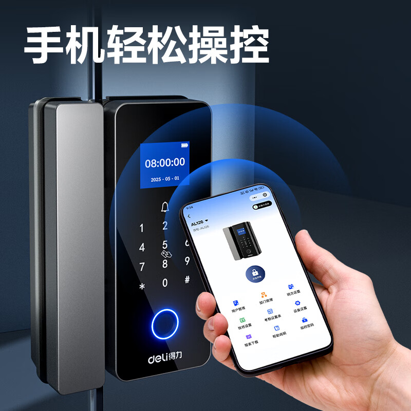 得力玻璃门锁门禁机 指纹密码锁 门禁机沿街可用防雨考勤机办公室玻璃门防盗智能锁 小程序管理 AL126