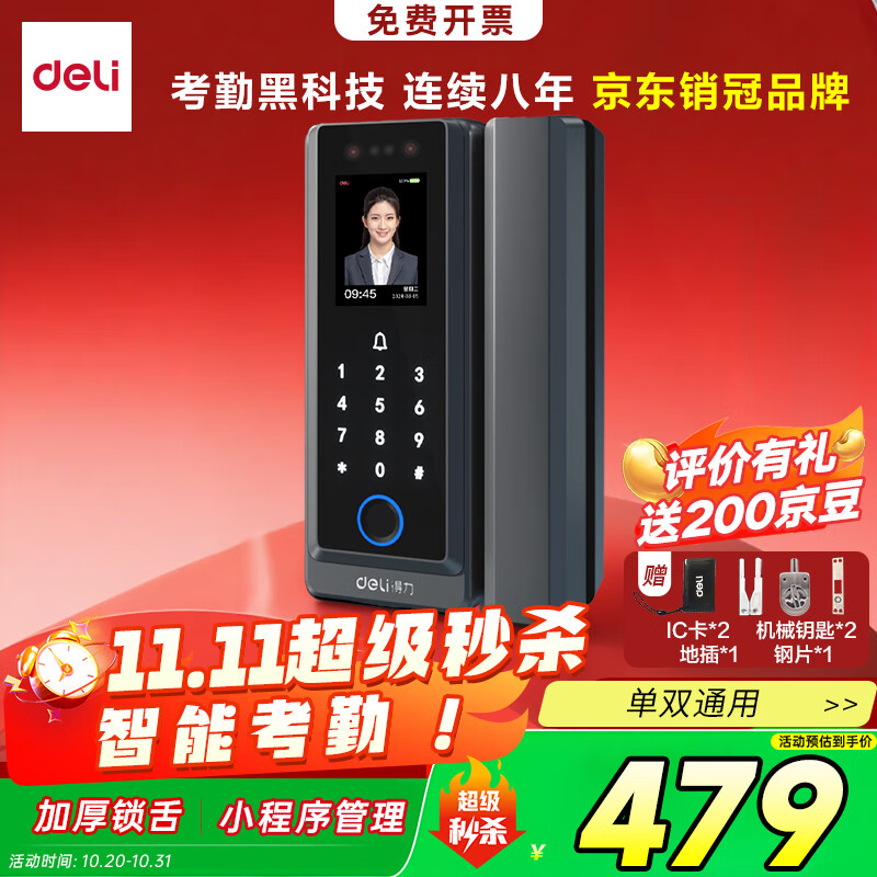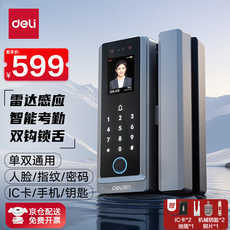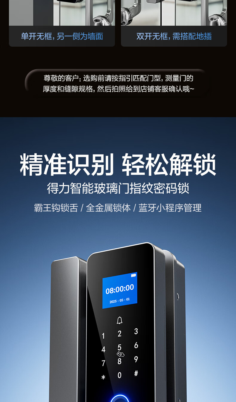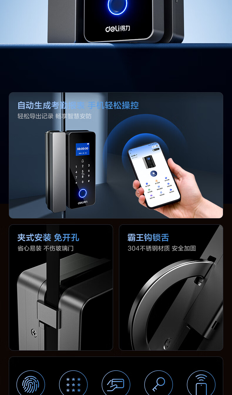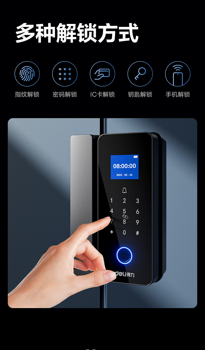 得力玻璃门锁门禁机 指纹密码锁 门禁机沿街可用防雨考勤机办公室玻璃门防盗智能锁 小程序管理 AL126