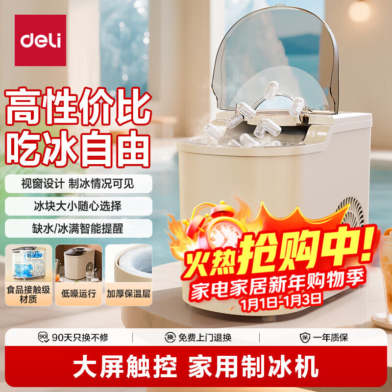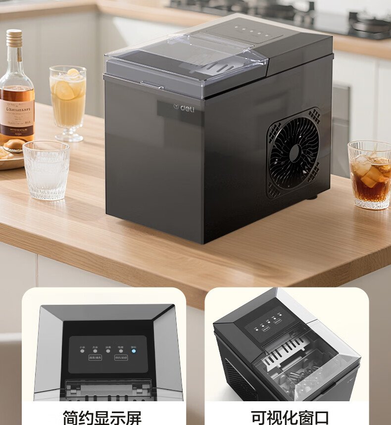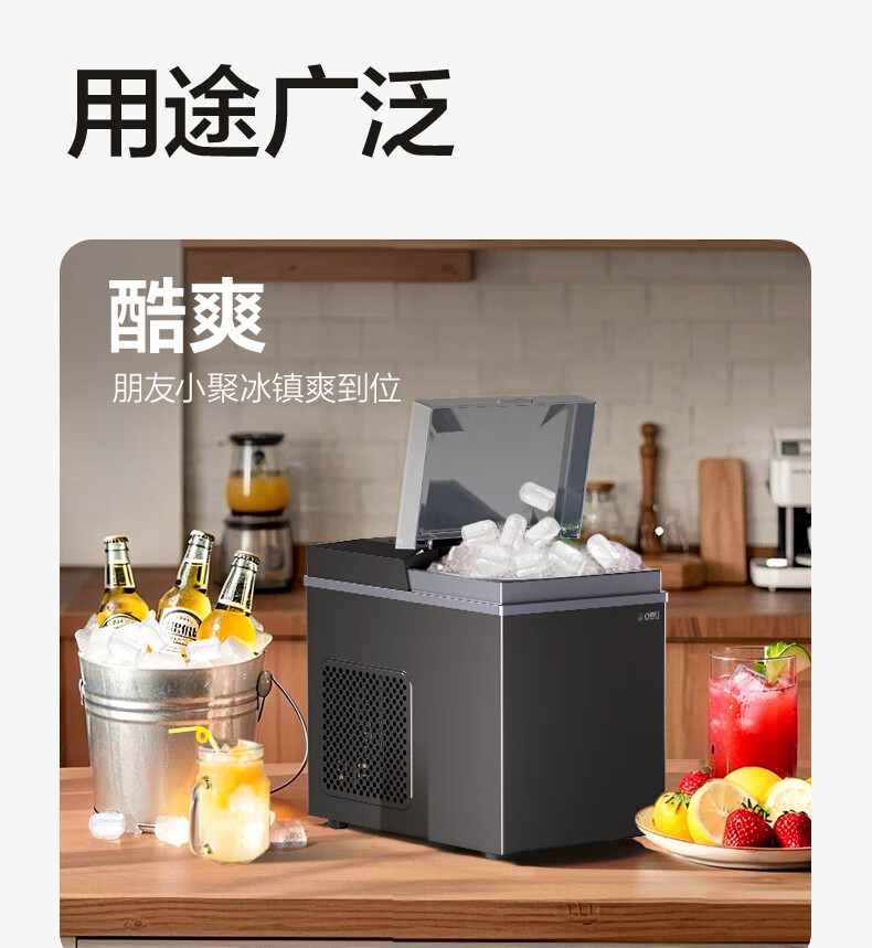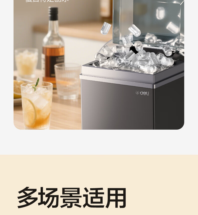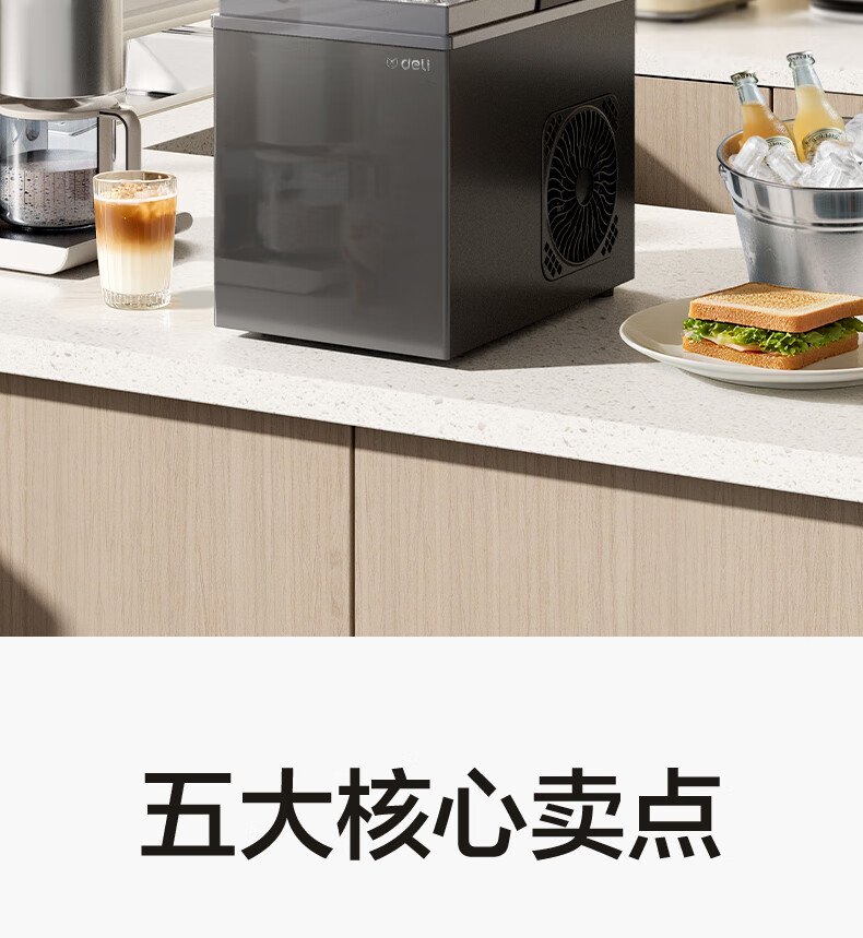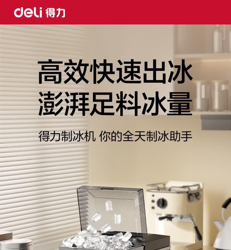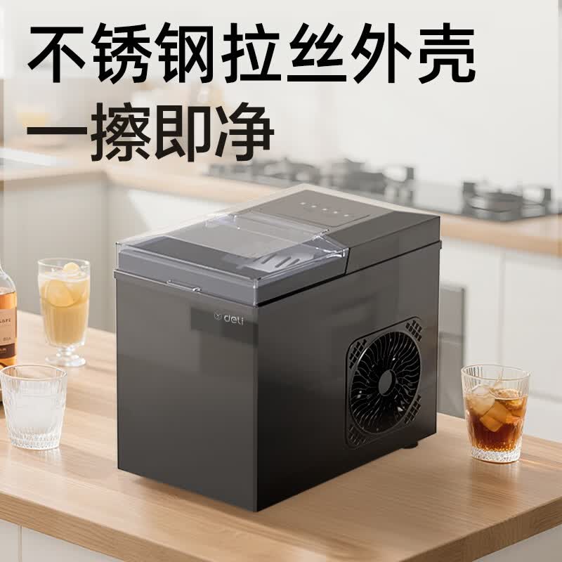 得力(deli)制冰机家用制冰机小型宿舍制冰机便携子弹冰迷你小功率制冰器全自动饮水机制冰块机不锈钢机身