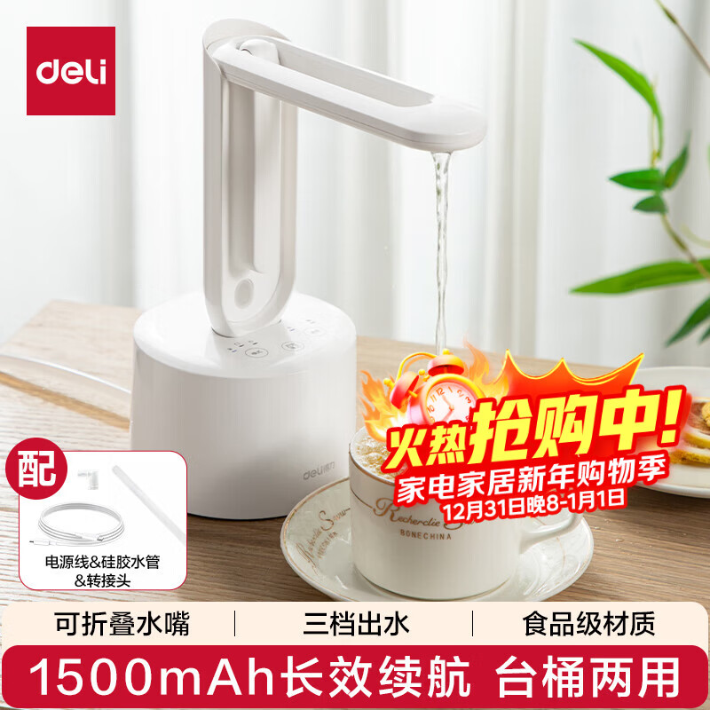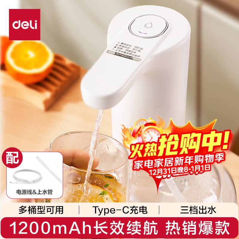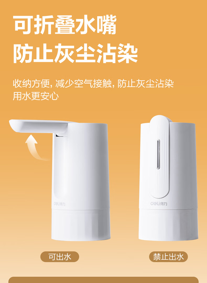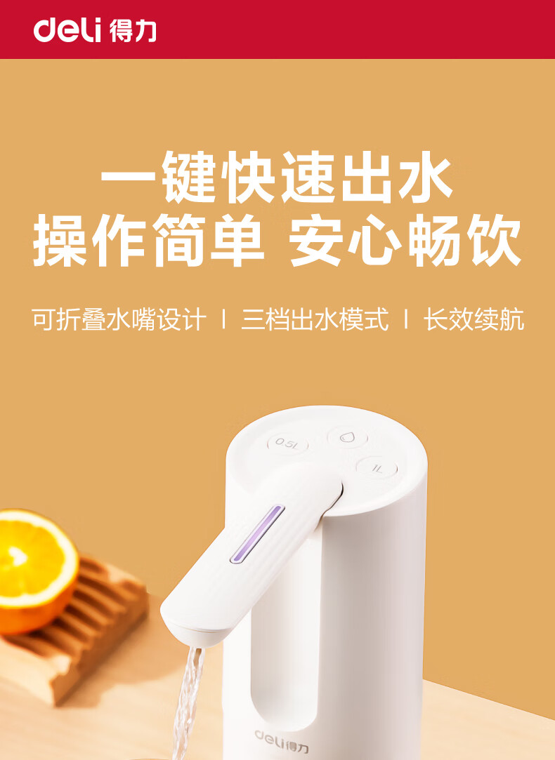 得力桶装水抽水器电动压水器自动吸水器矿泉水上水器水桶纯净水取水器