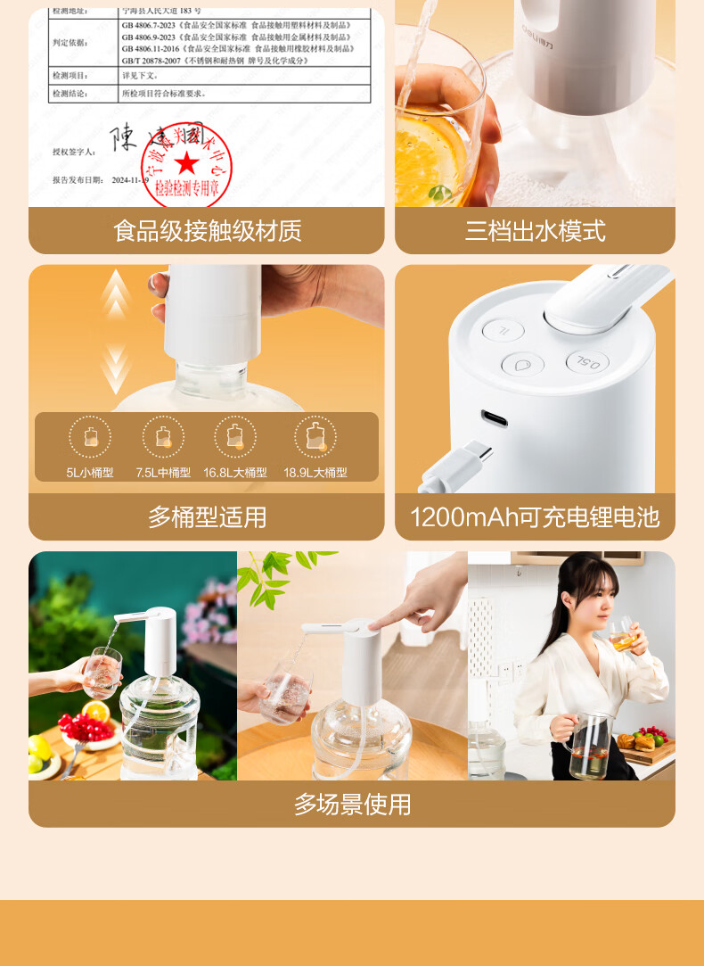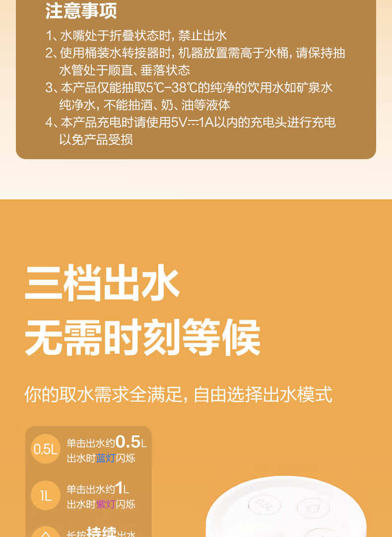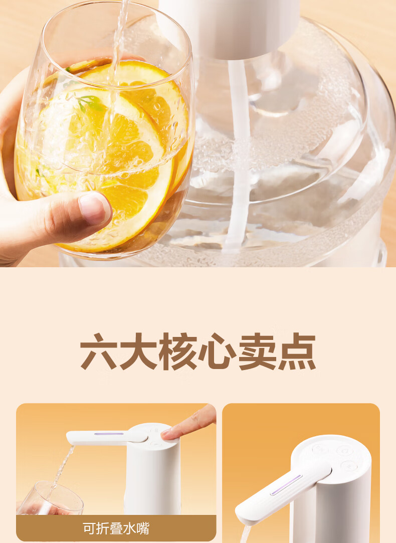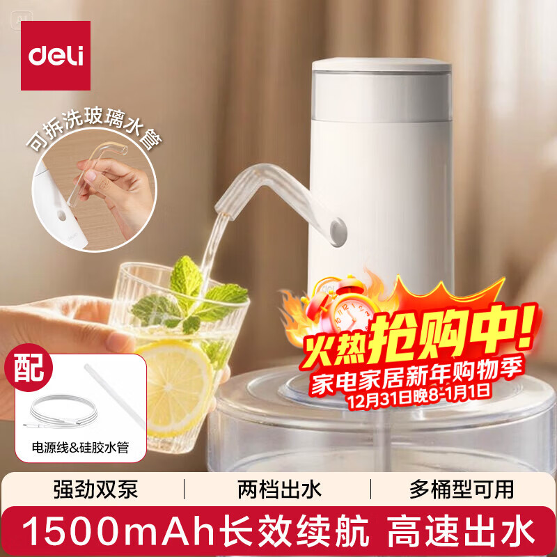 得力桶装水抽水器电动压水器自动吸水器矿泉水上水器水桶纯净水取水器