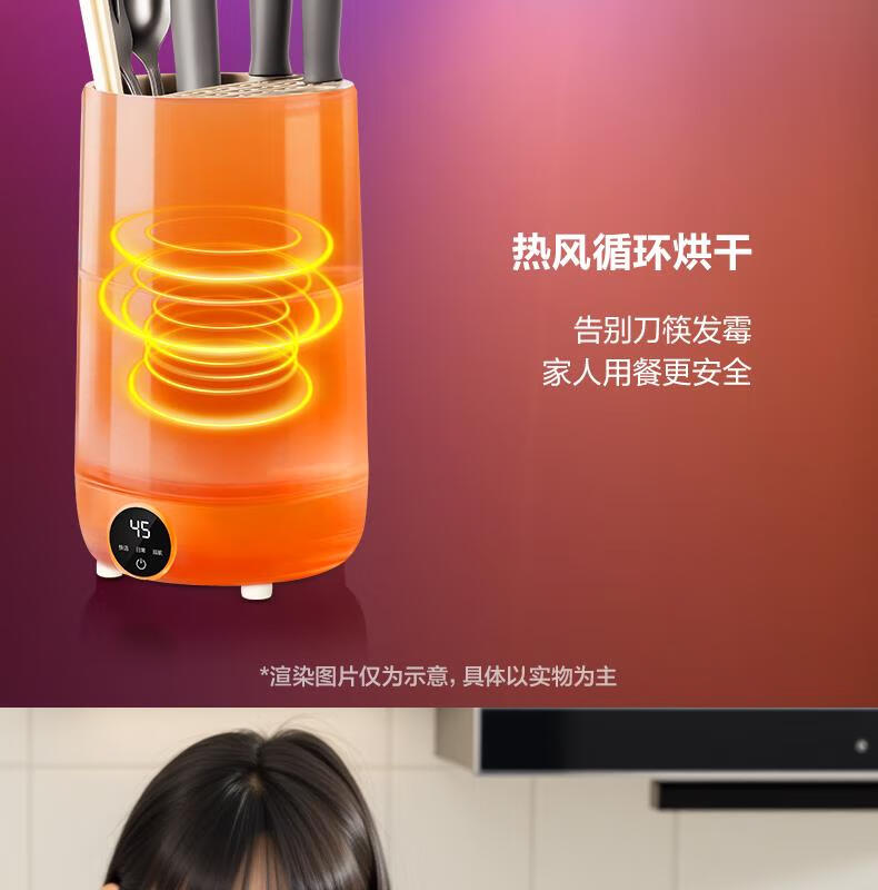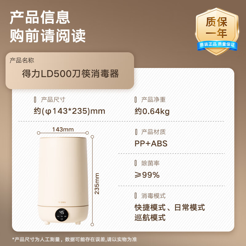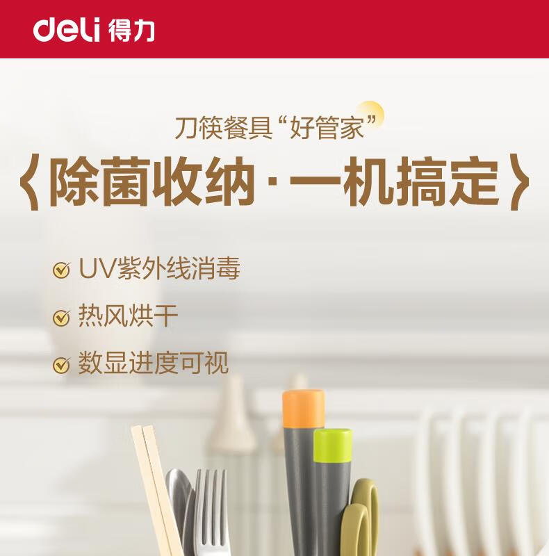 得力(deli)刀筷消毒机 可拆卸清洗刀具筷子筒收纳紫外线消毒防霉烘干机器 超强热风