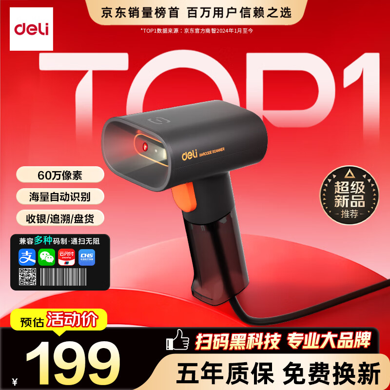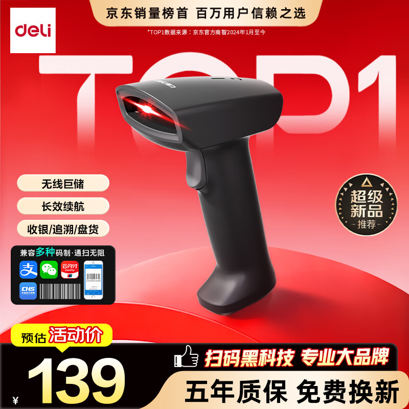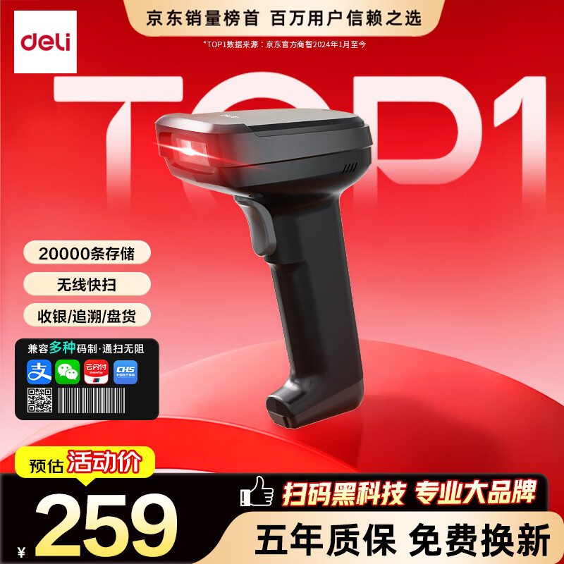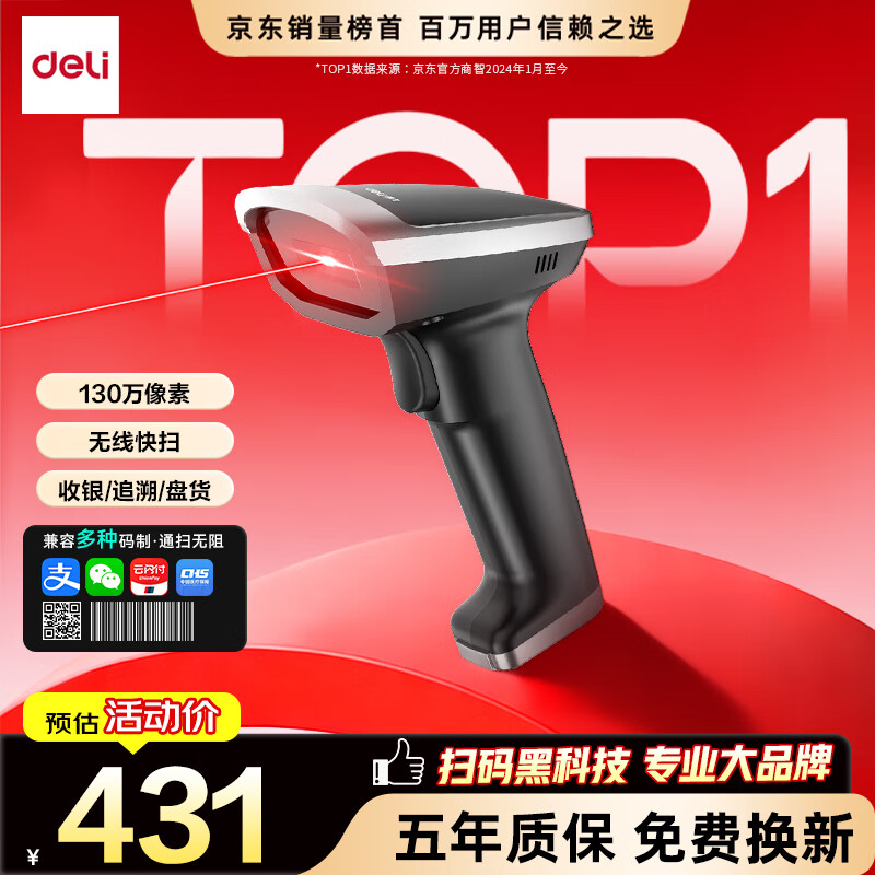 得力扫码枪 扫描枪二维药品追溯医保支付快递物流查询收款扫码设备备件商品条码精度升级无线款AA302W