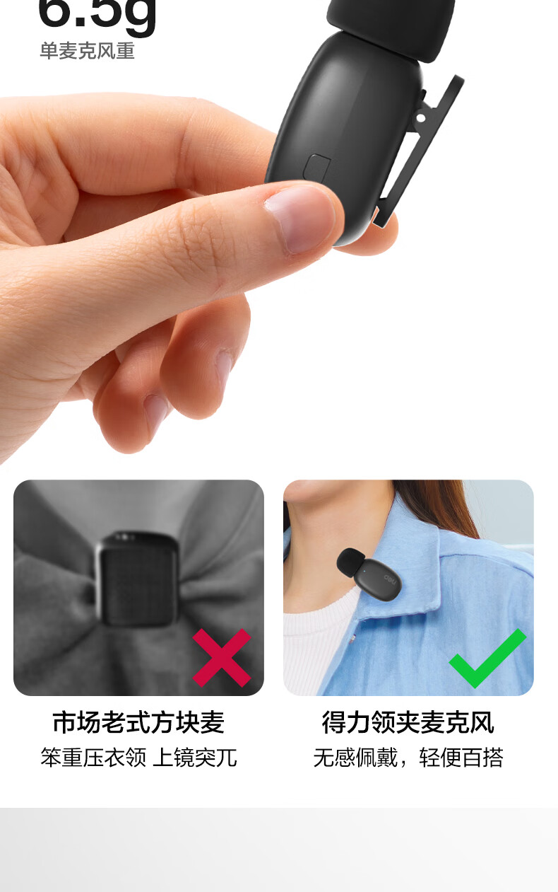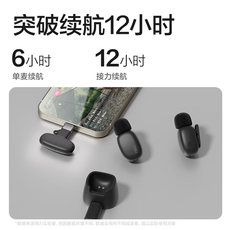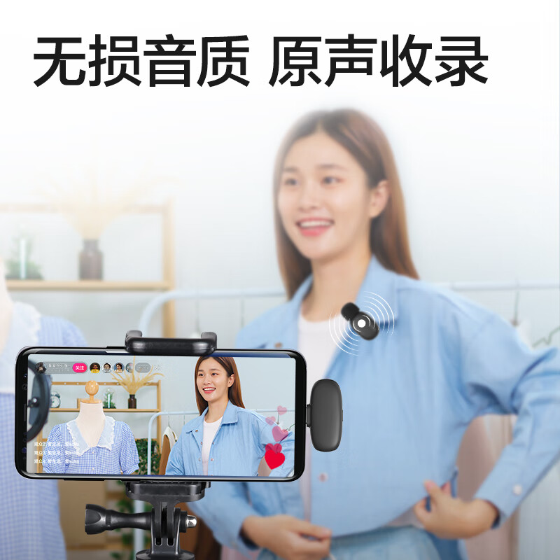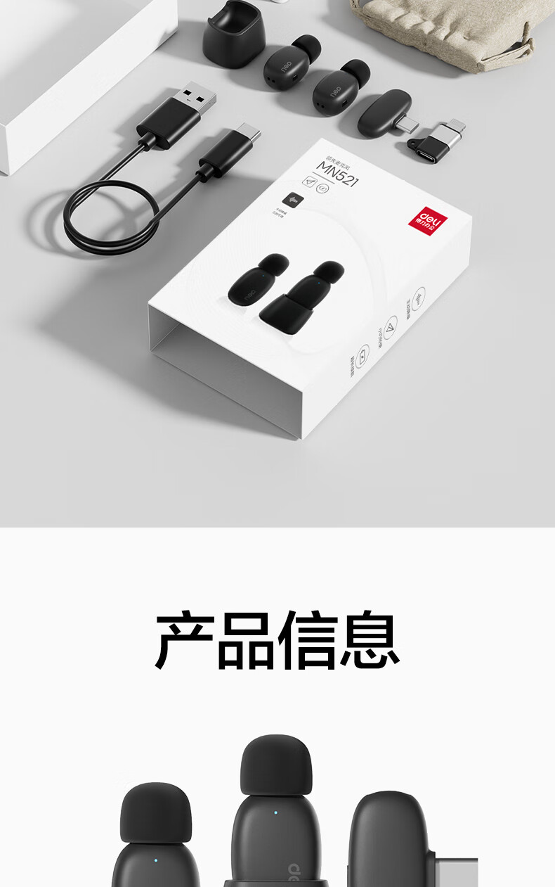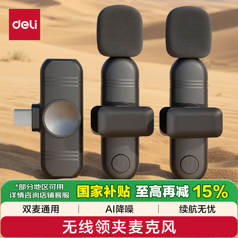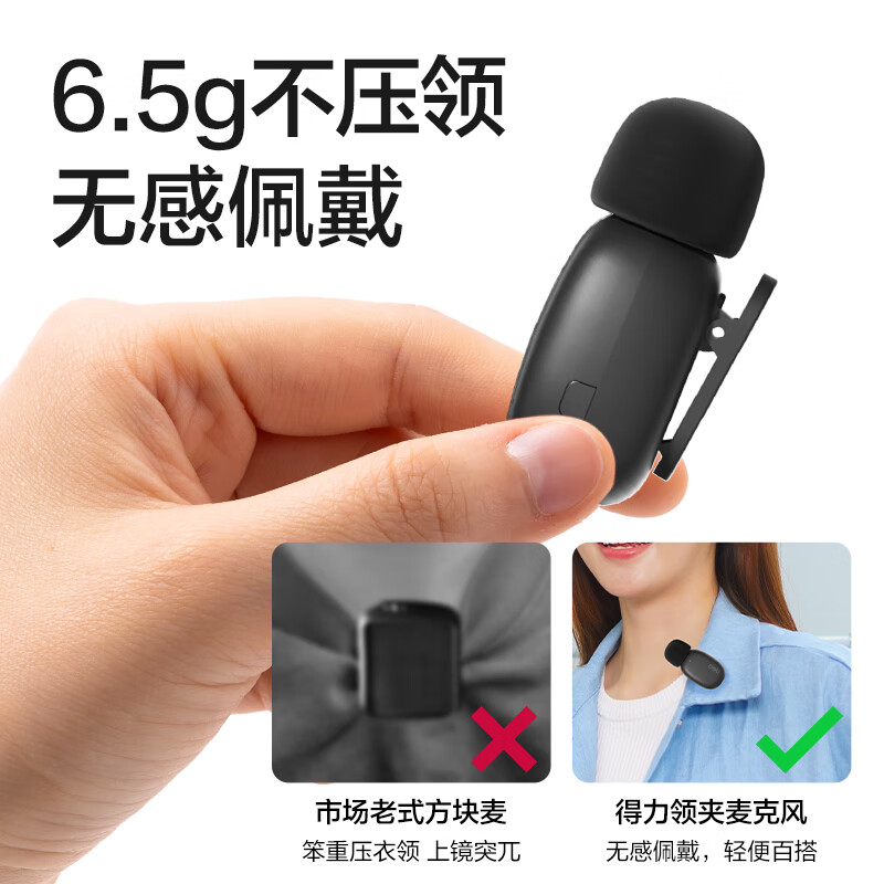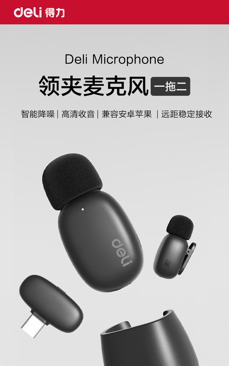 得力领夹麦克风 无线一拖二手机直播主播短视频户外拍摄迷你收音器智能降噪录音设备苹果安卓通用MN521
