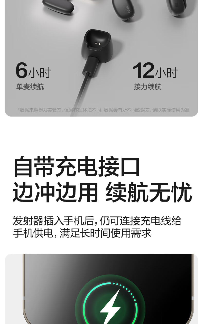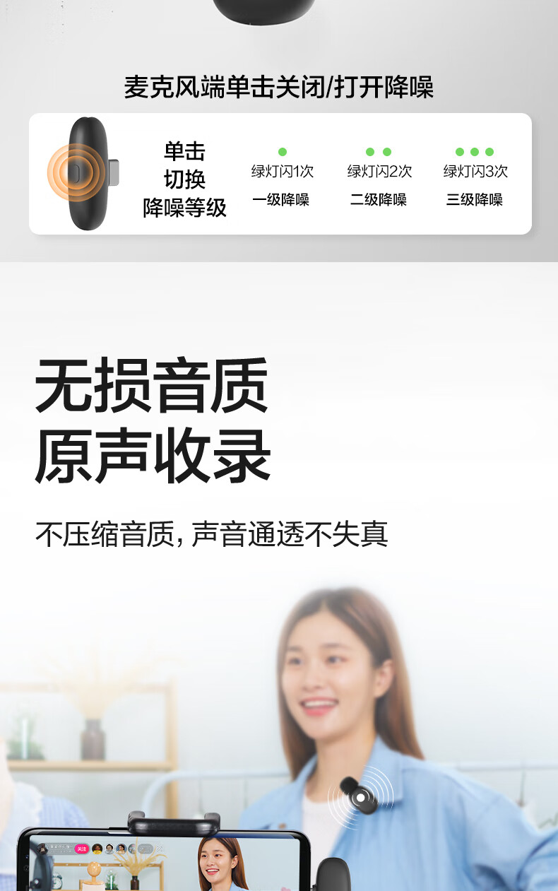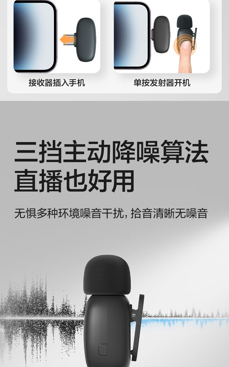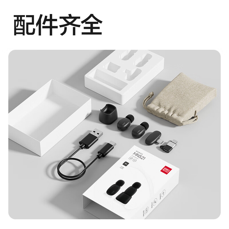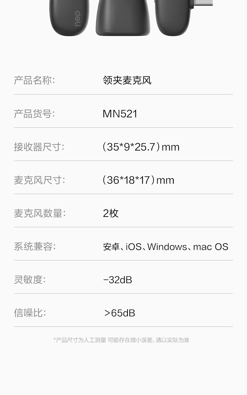 得力领夹麦克风 无线一拖二手机直播主播短视频户外拍摄迷你收音器智能降噪录音设备苹果安卓通用MN521