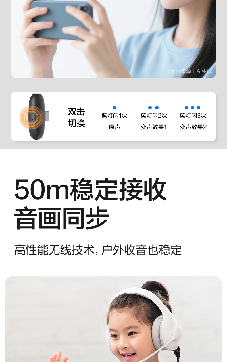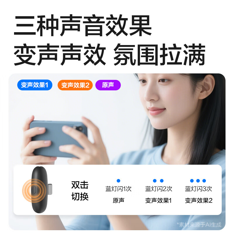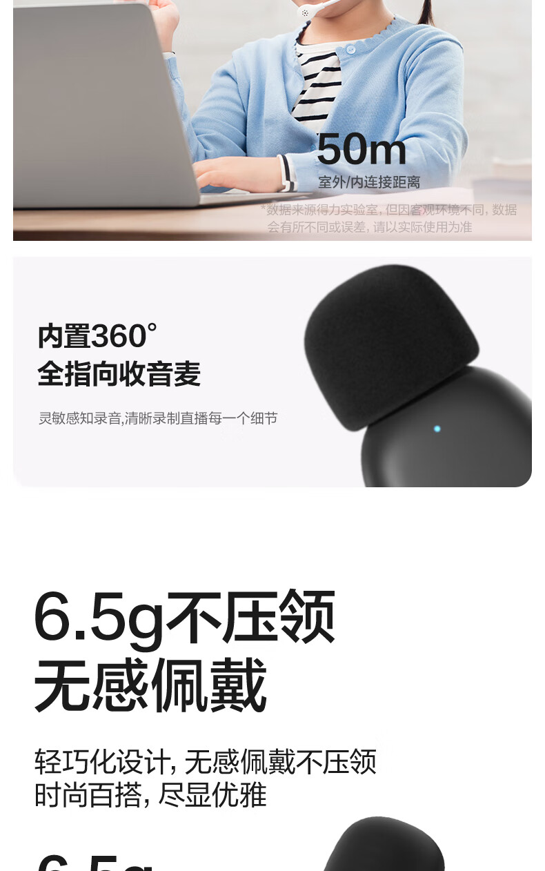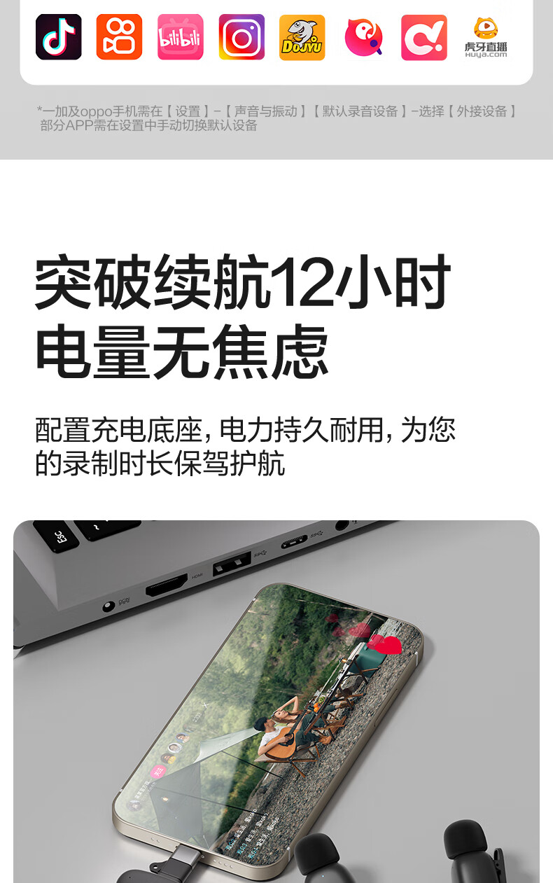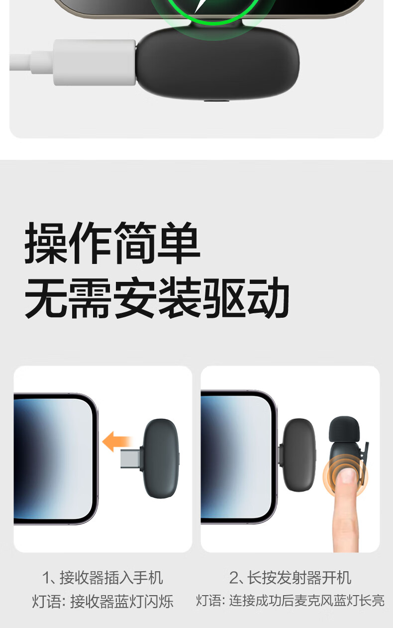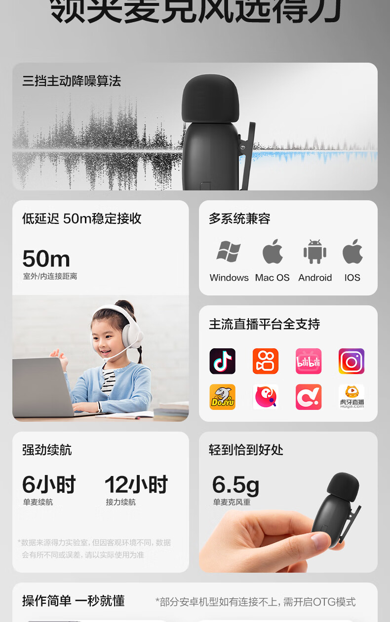 得力领夹麦克风 无线一拖二手机直播主播短视频户外拍摄迷你收音器智能降噪录音设备苹果安卓通用MN521