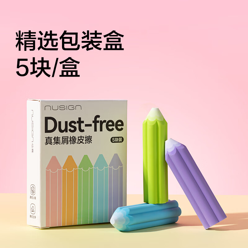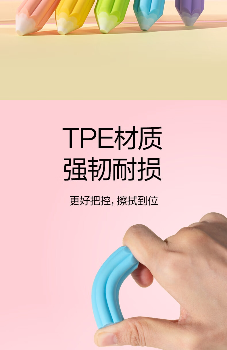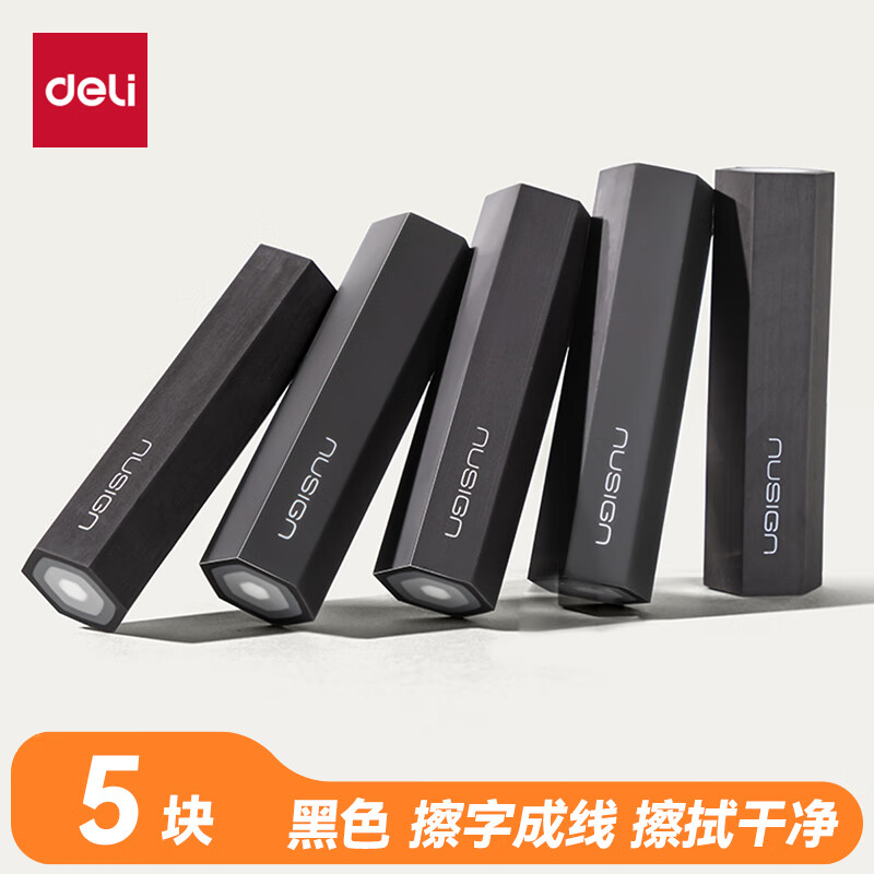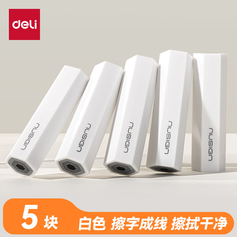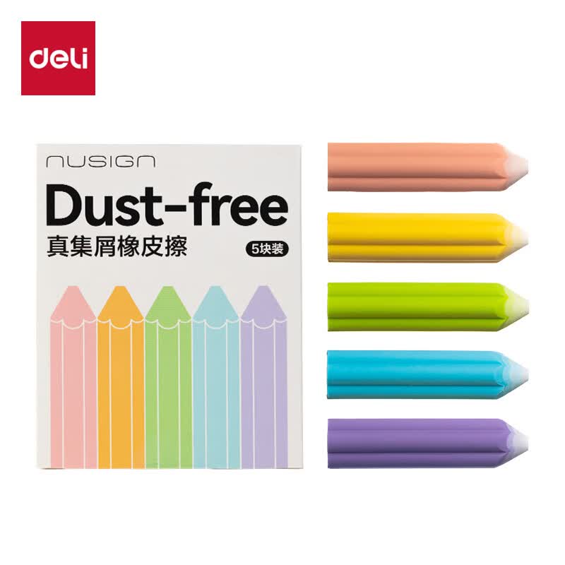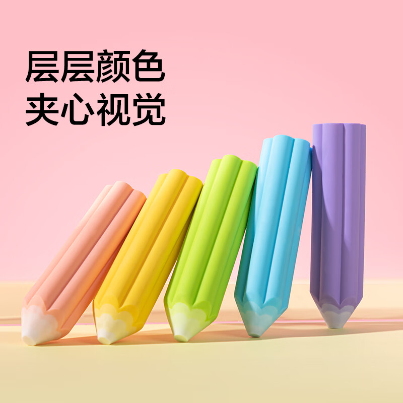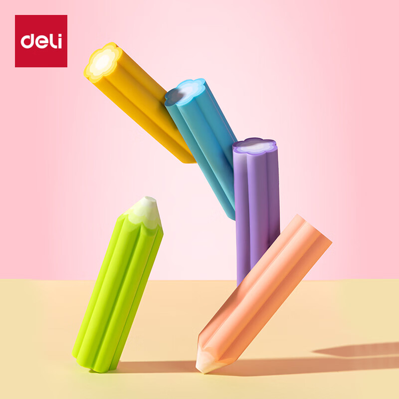 得力(deli)易握铅笔造型彩色5块装橡皮擦 真集屑不留痕高颜值精致包装学生暑期文具必备NS783