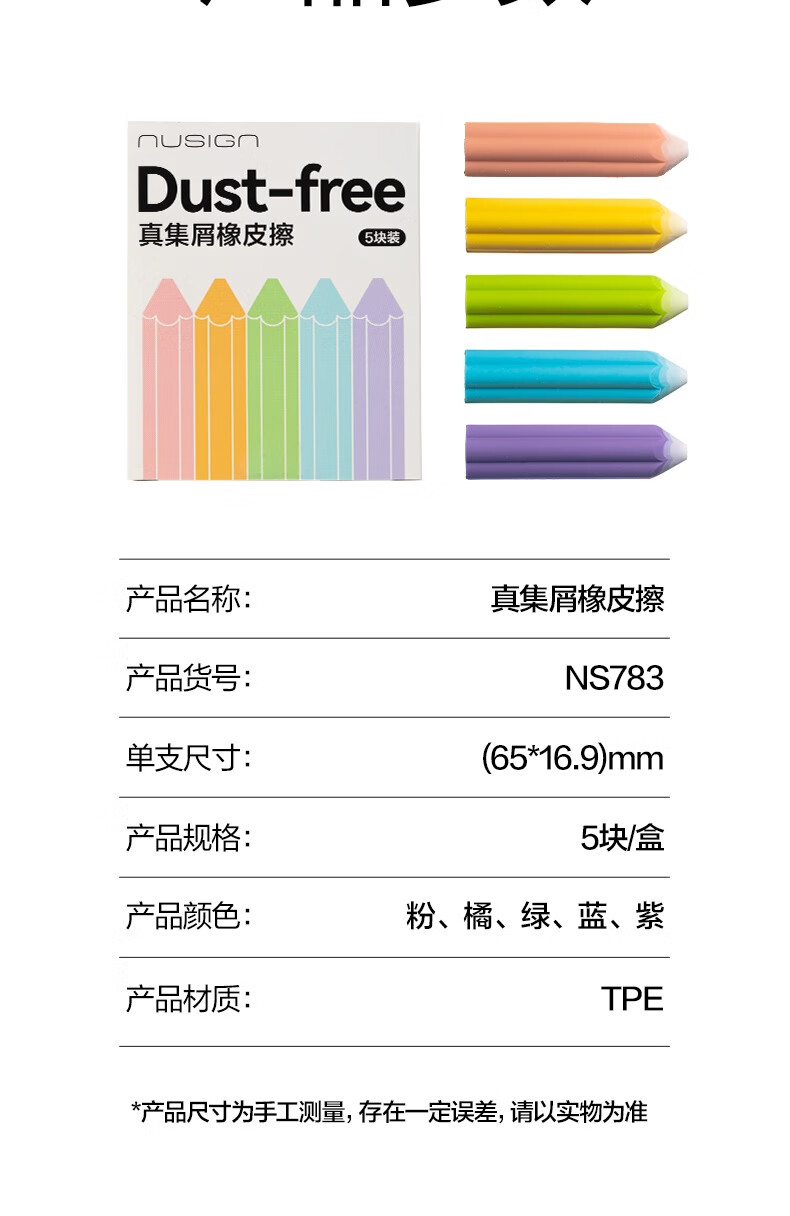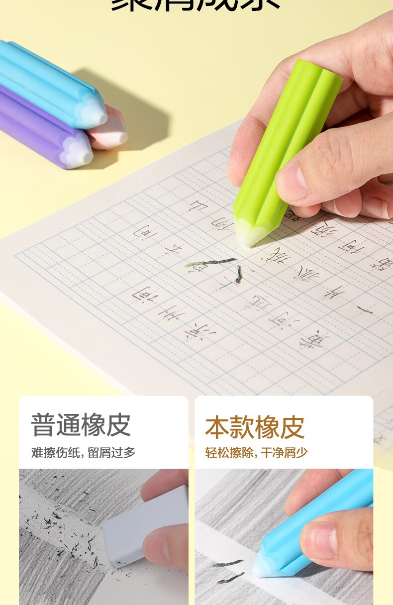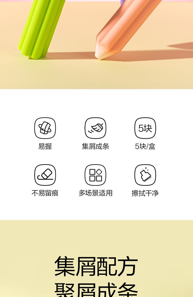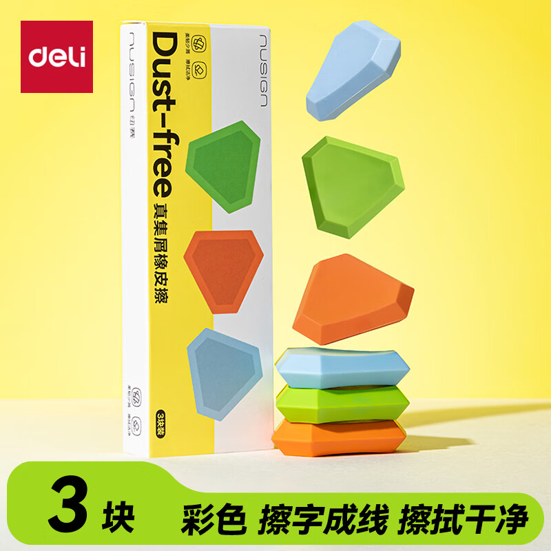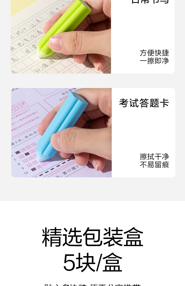 得力(deli)易握铅笔造型彩色5块装橡皮擦 真集屑不留痕高颜值精致包装学生暑期文具必备NS783