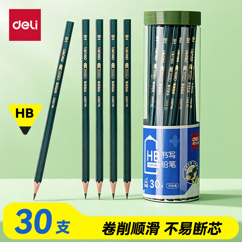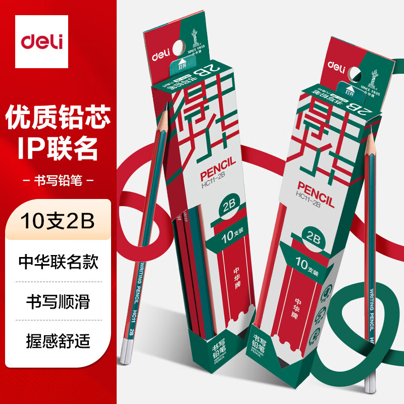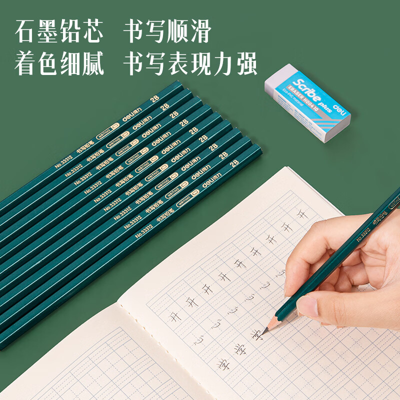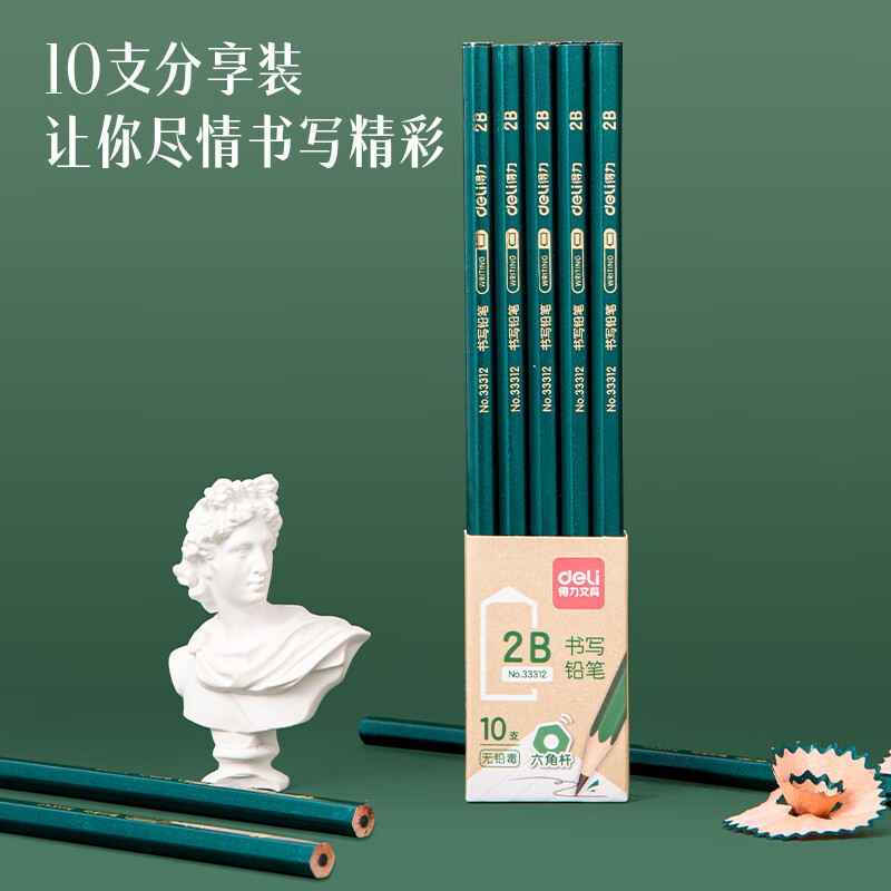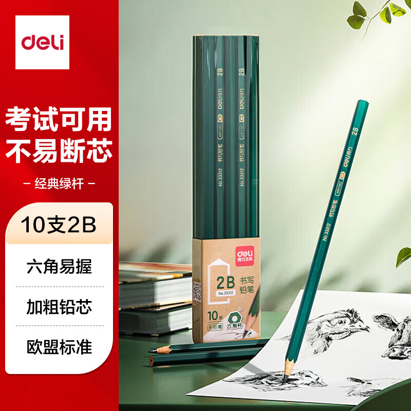 得力(deli)经典绿杆10支2B铅笔原木六角笔杆学生考试素描绘图铅笔写字练字书写礼物学生开学礼物
