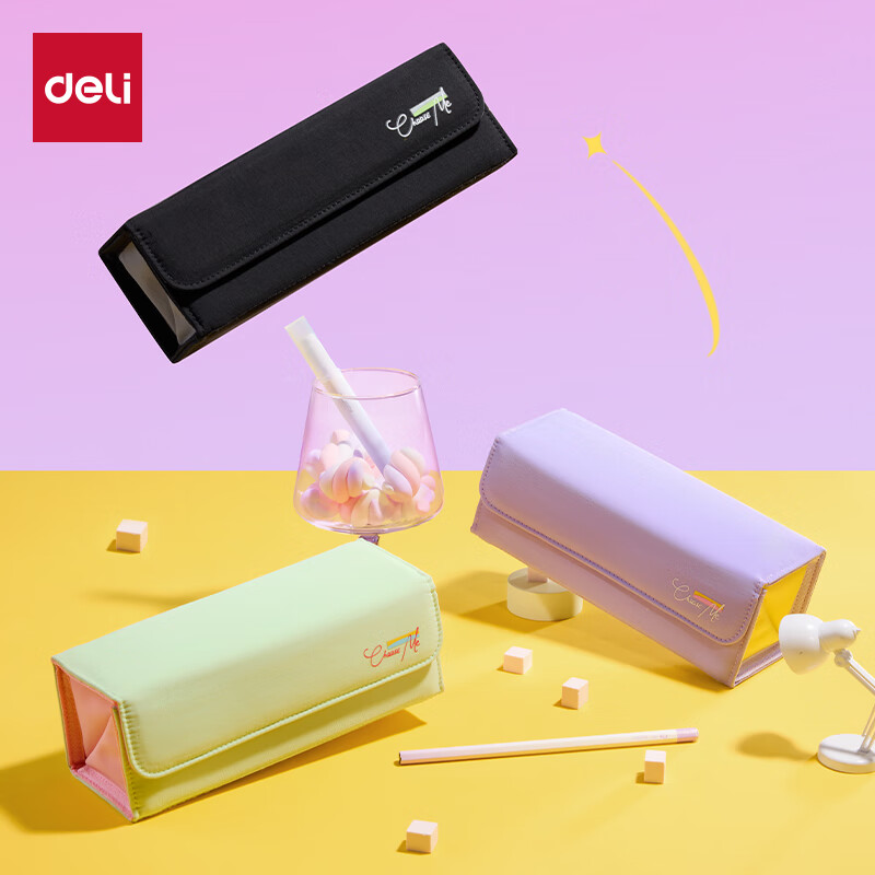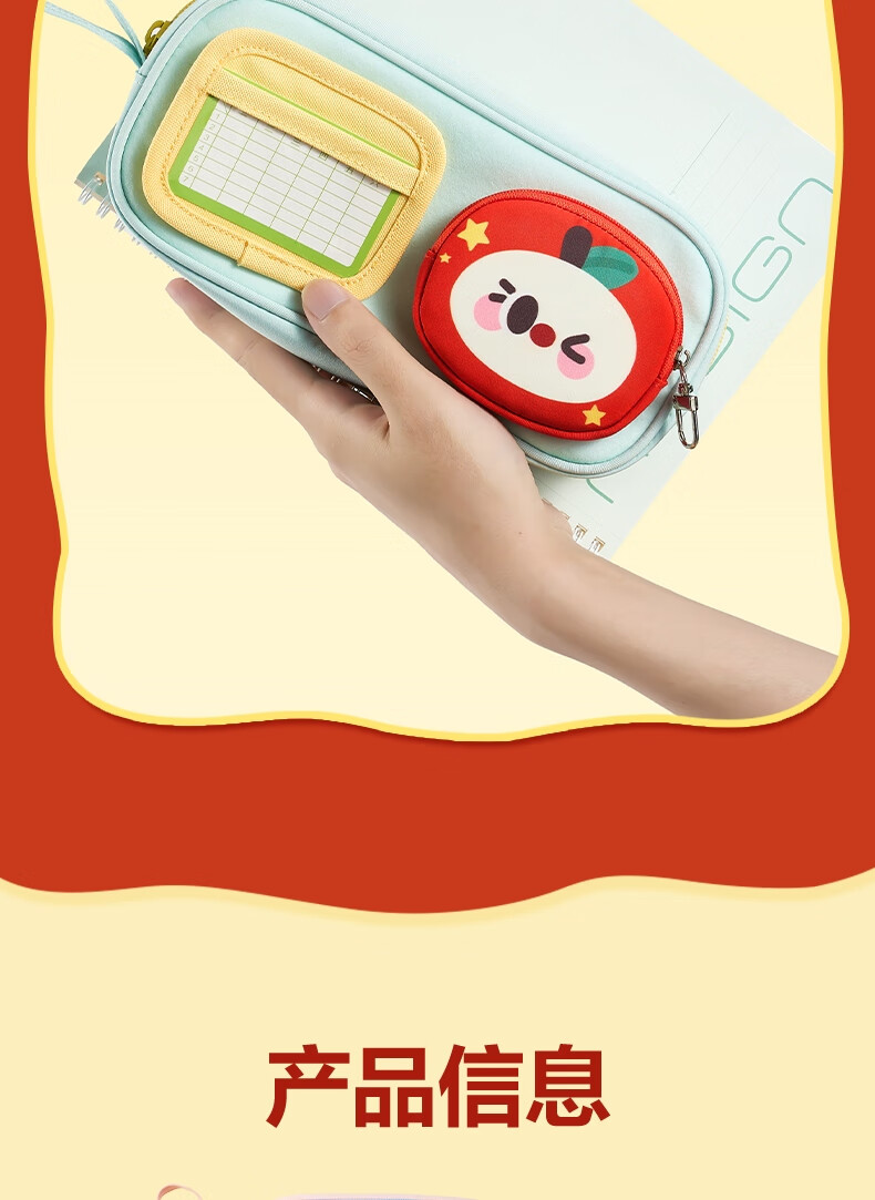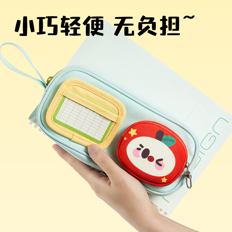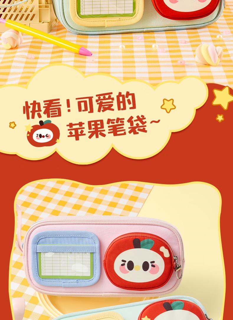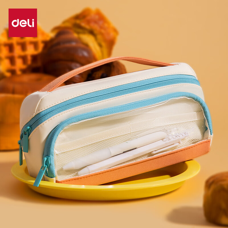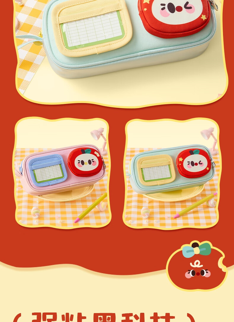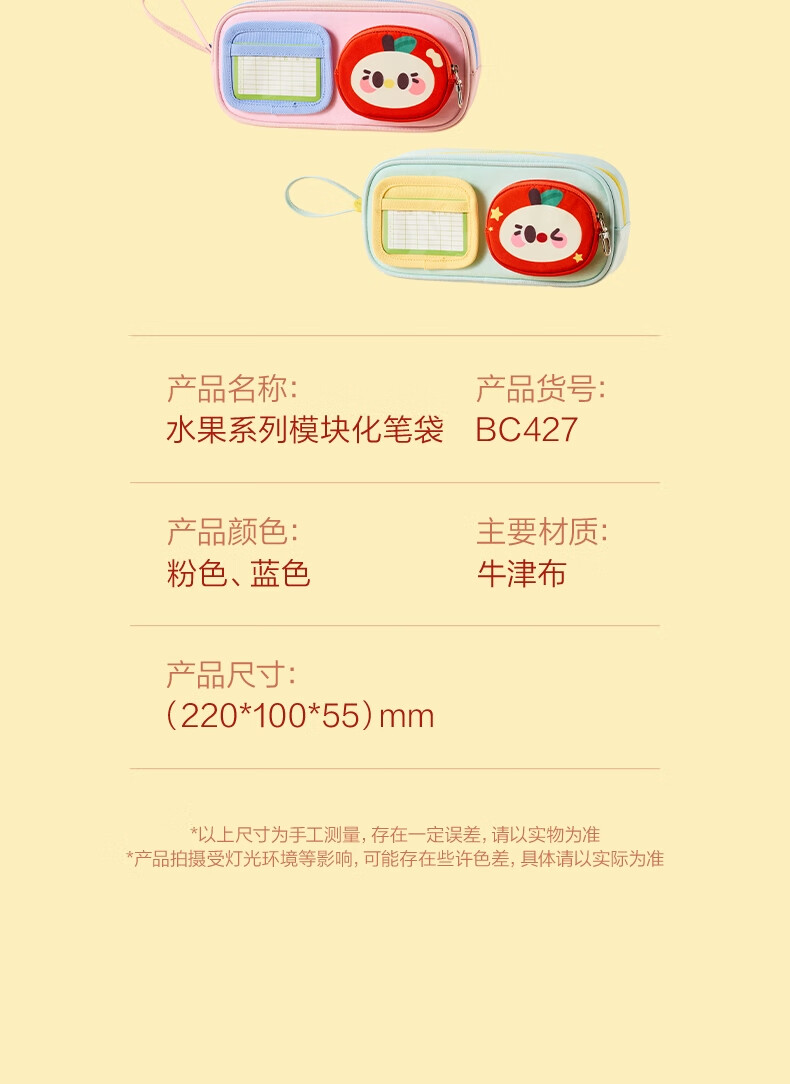 得力高颜值可爱水果笔袋 便携手提大容量文具收纳袋多功能笔盒 附赠百粘布零钱包 粉BC427
