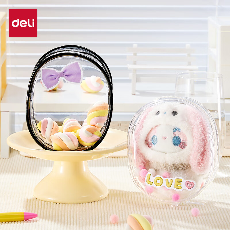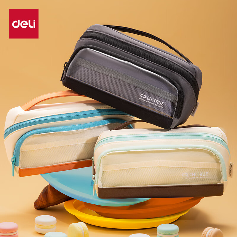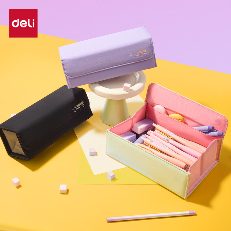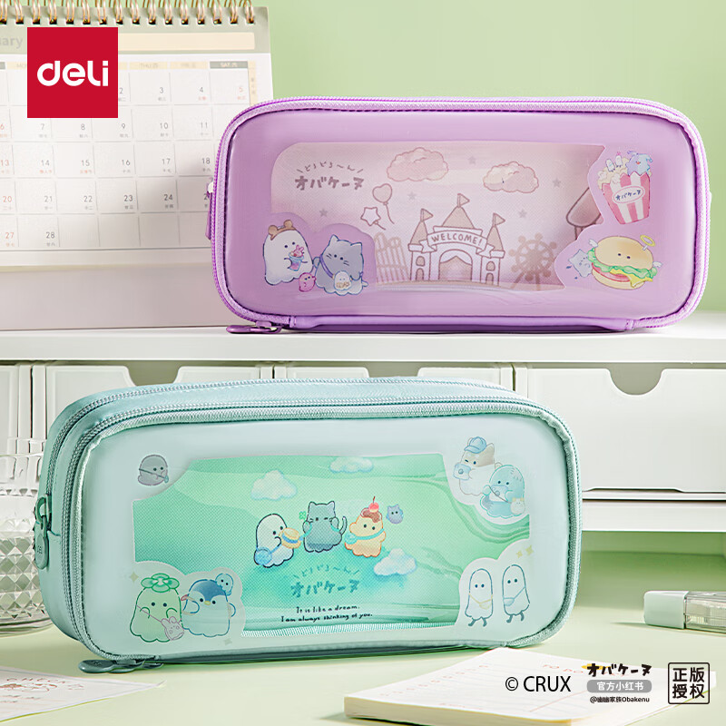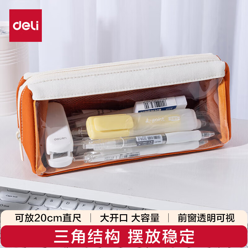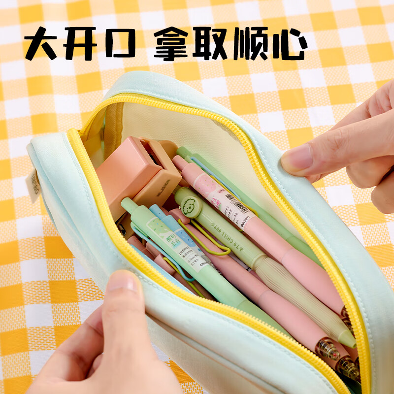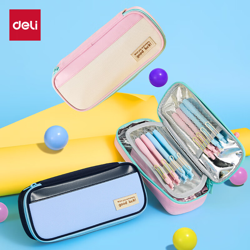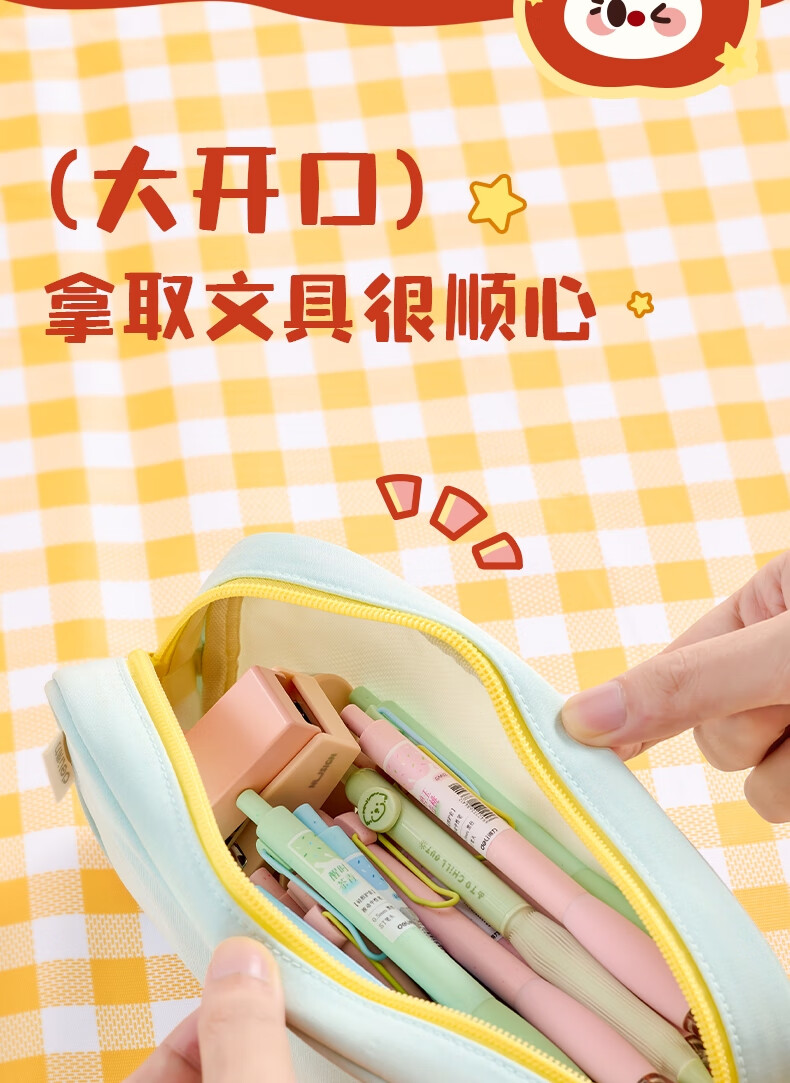 得力高颜值可爱水果笔袋 便携手提大容量文具收纳袋多功能笔盒 附赠百粘布零钱包 粉BC427