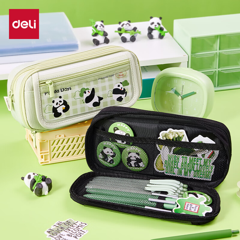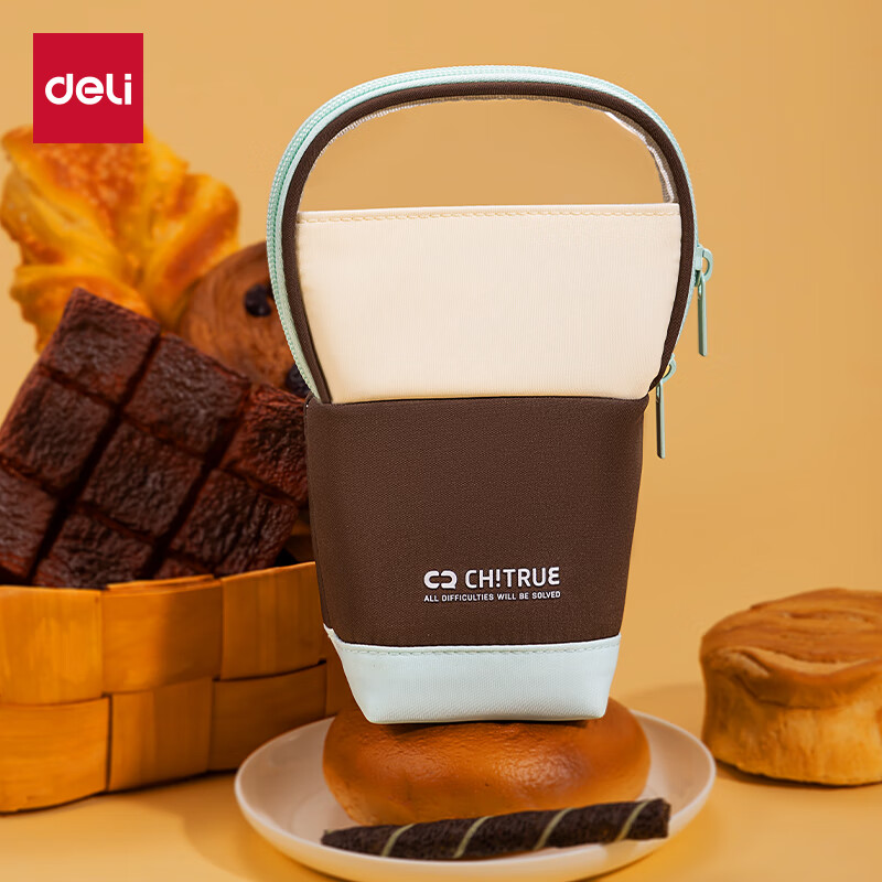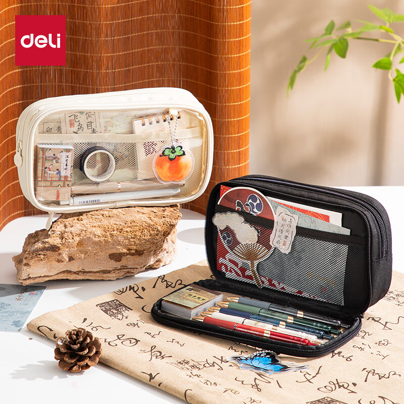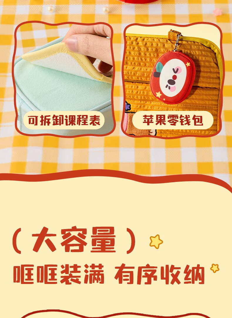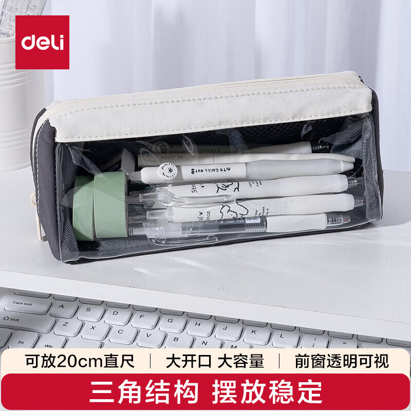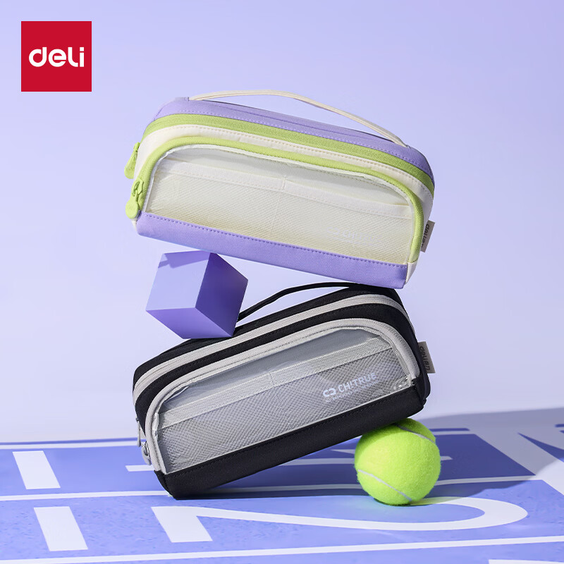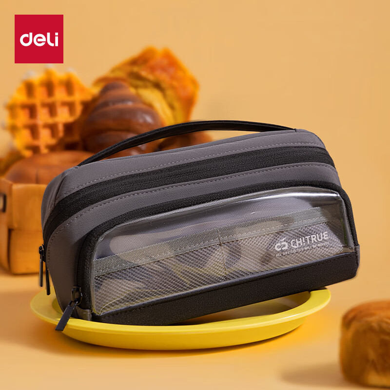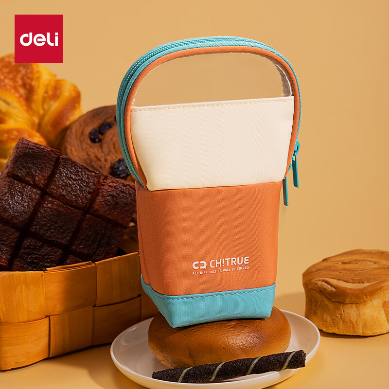 得力高颜值可爱水果笔袋 便携手提大容量文具收纳袋多功能笔盒 附赠百粘布零钱包 粉BC427