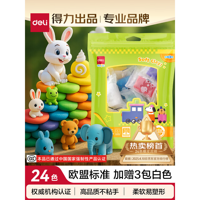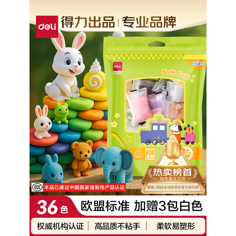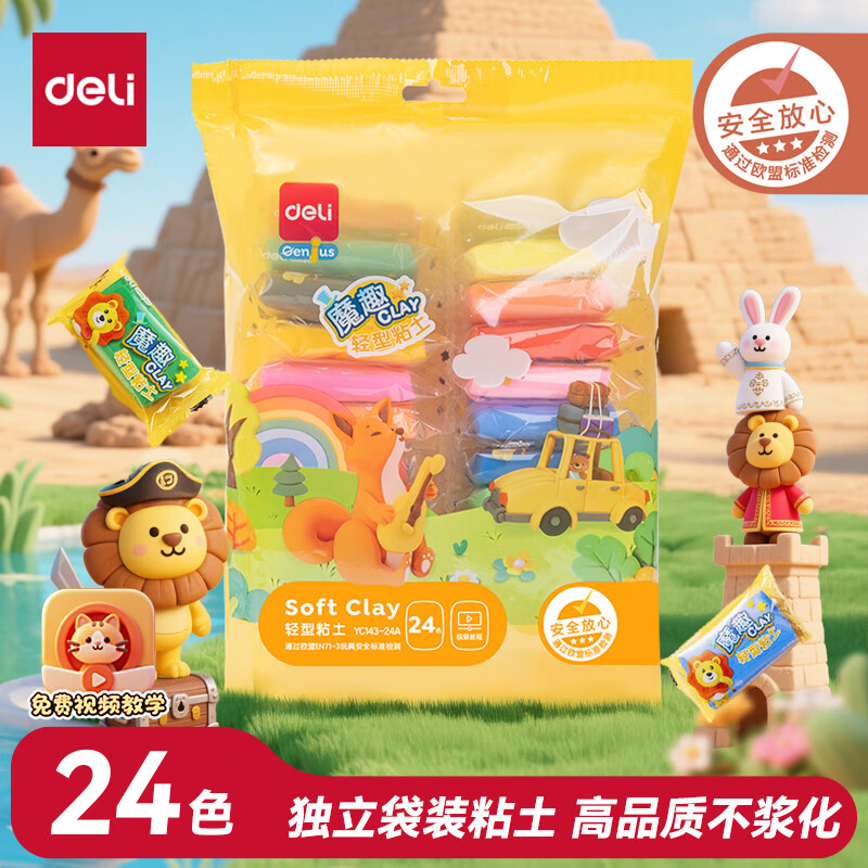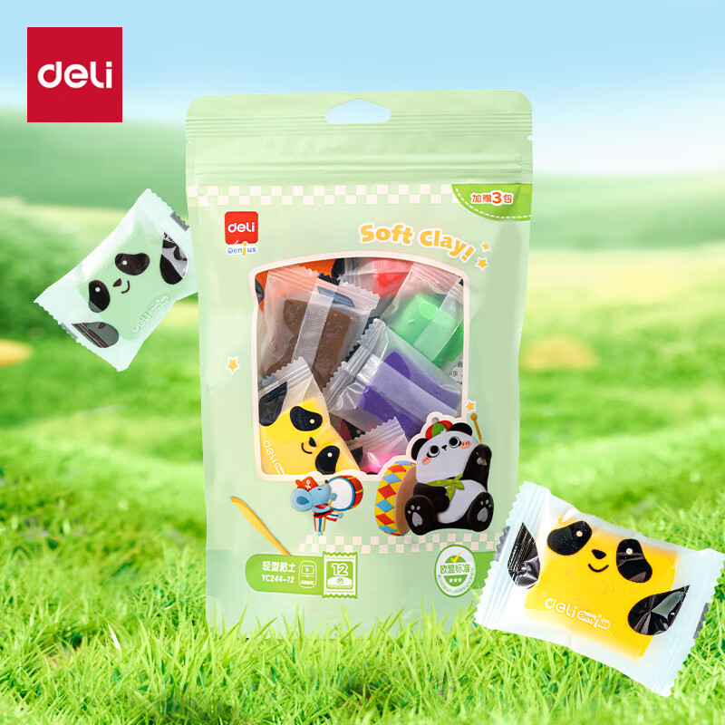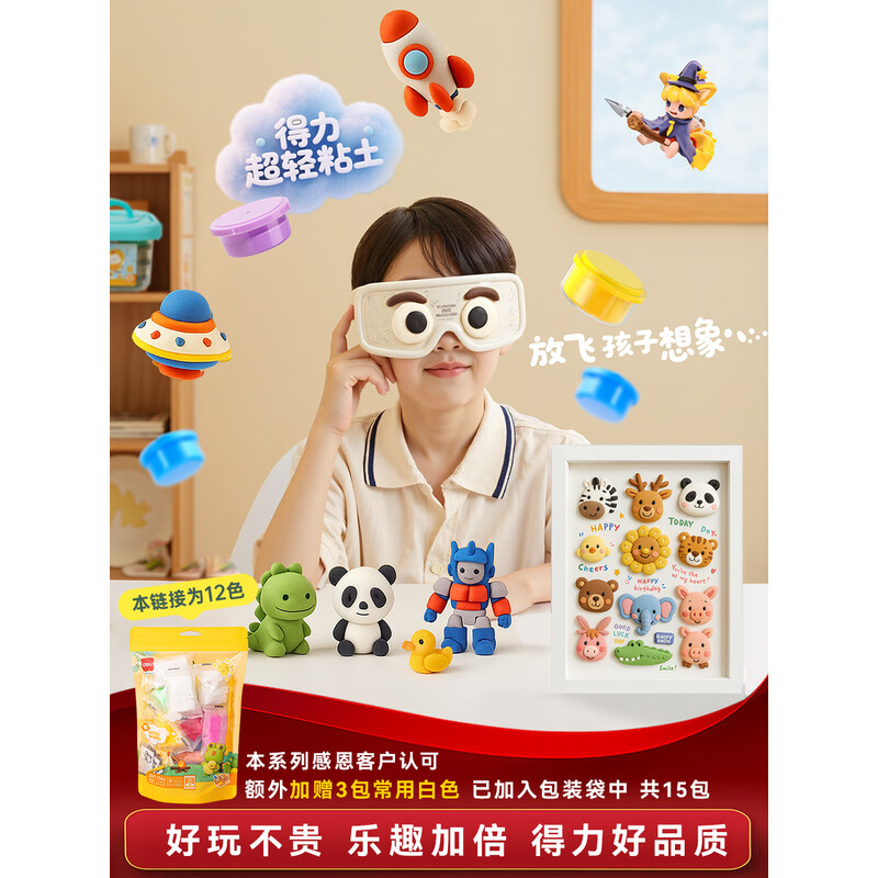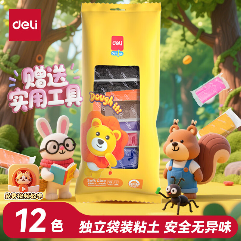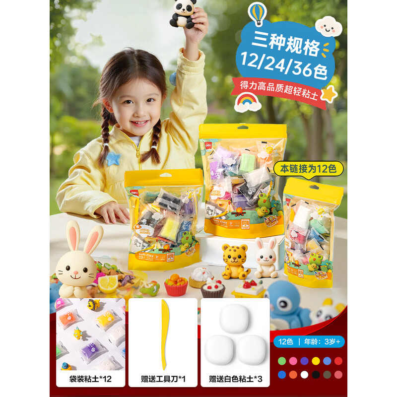 得力(deli)12色加赠3袋超轻粘土幼儿园黏土彩泥橡皮泥美术手工DIY玩具毕业儿童节文具生日开学毕业礼物