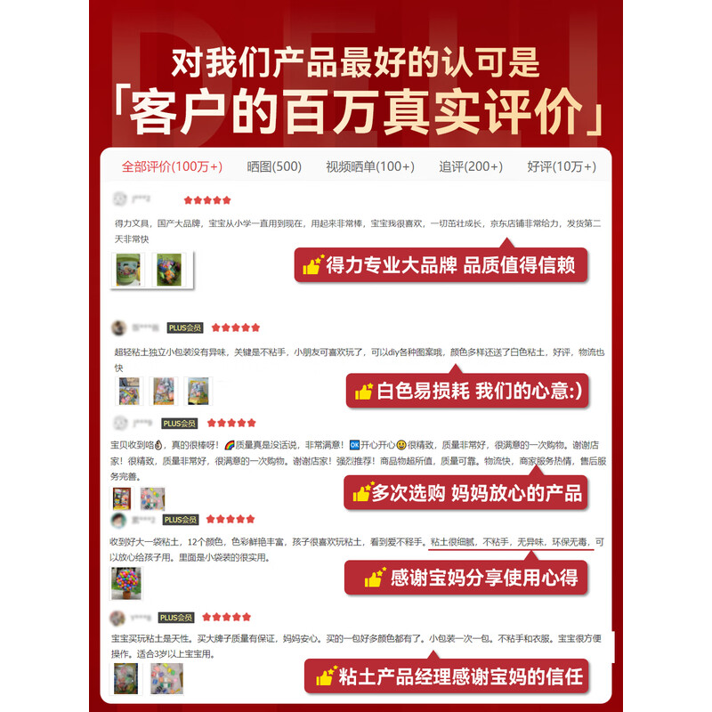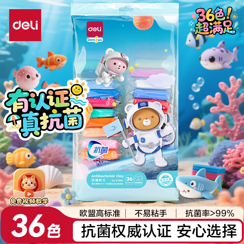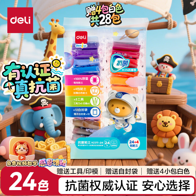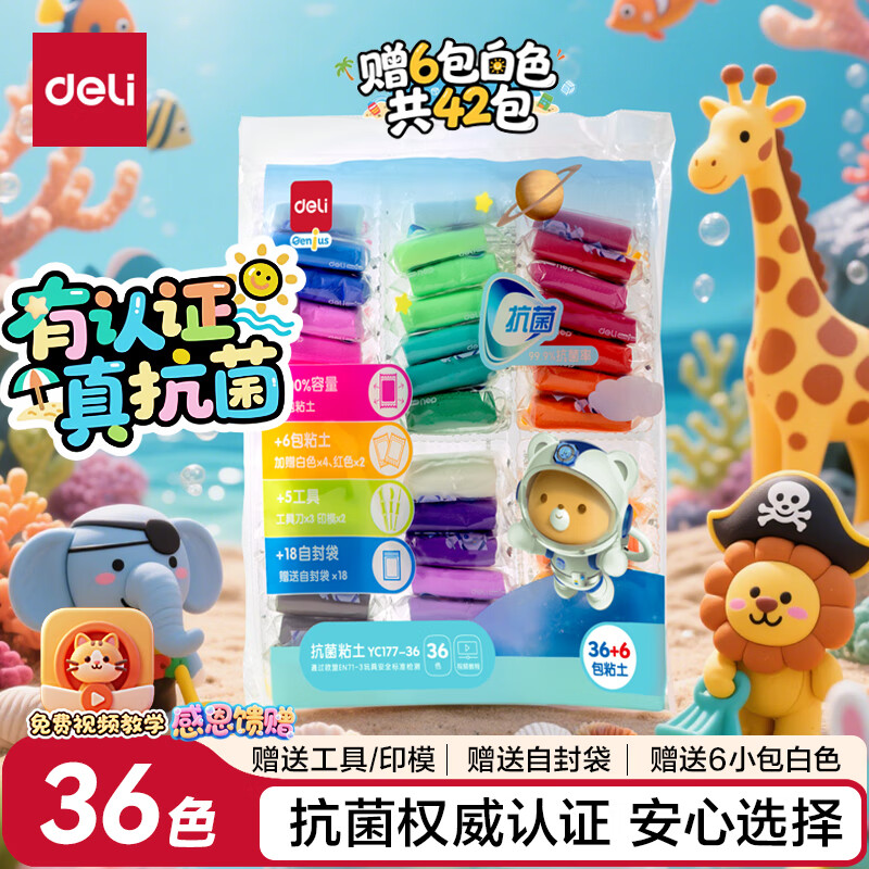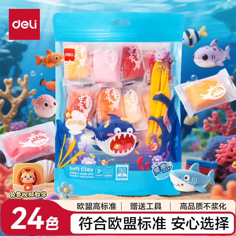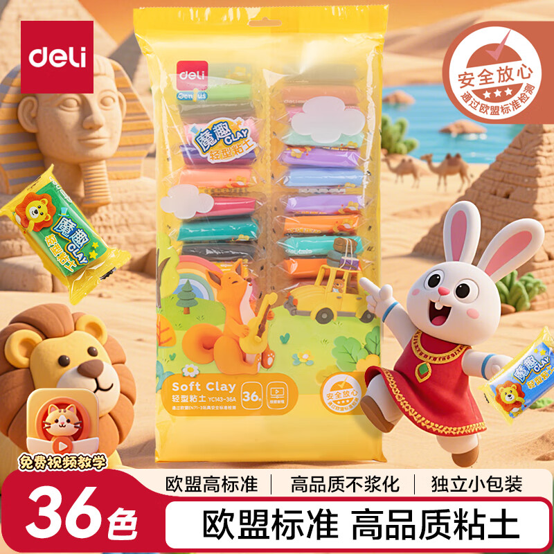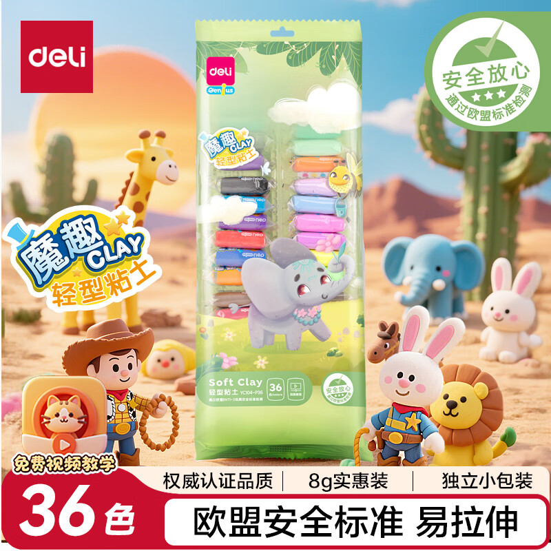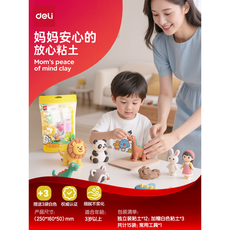 得力(deli)12色加赠3袋超轻粘土幼儿园黏土彩泥橡皮泥美术手工DIY玩具毕业儿童节文具生日开学毕业礼物