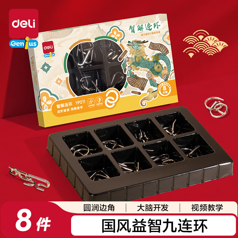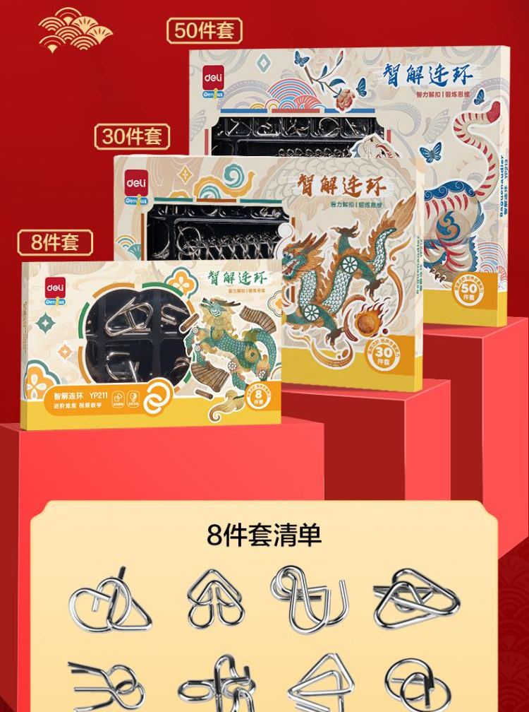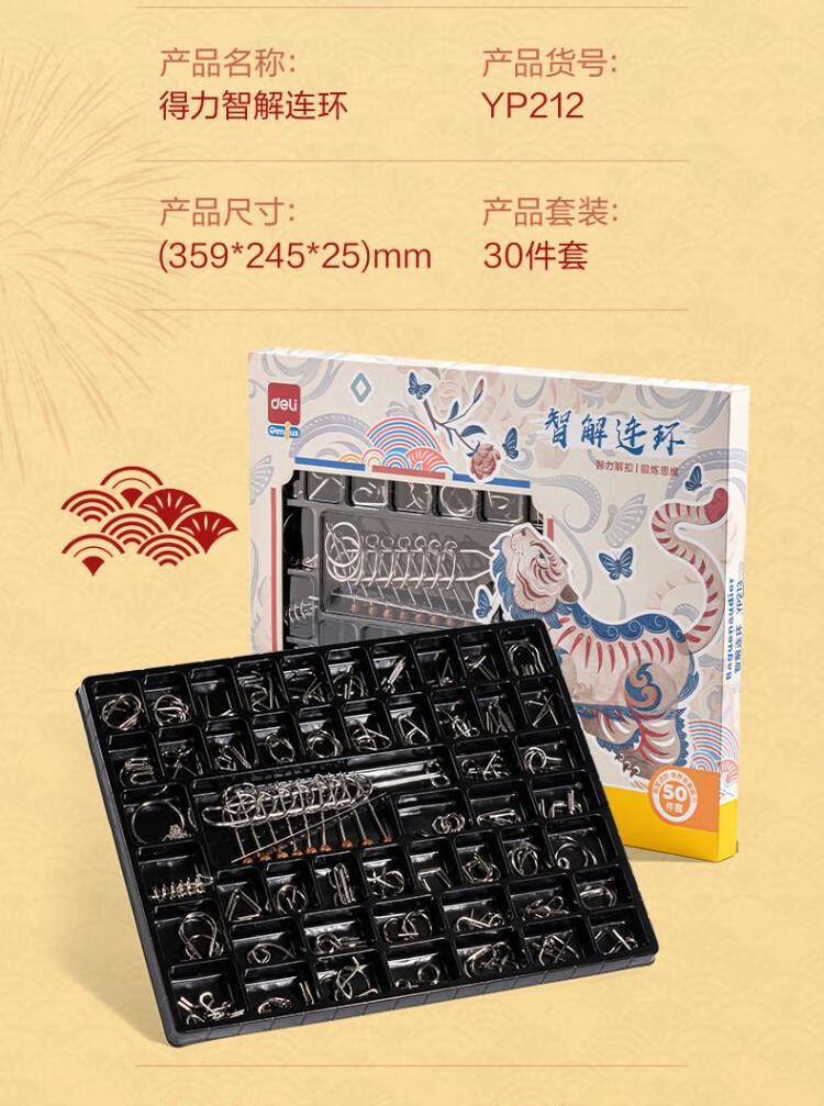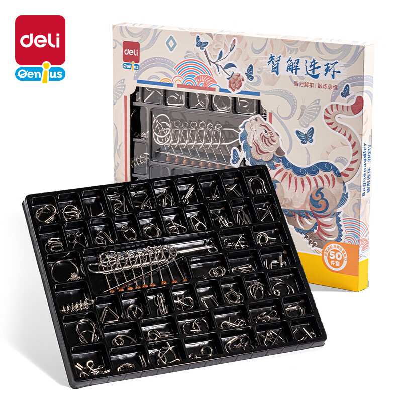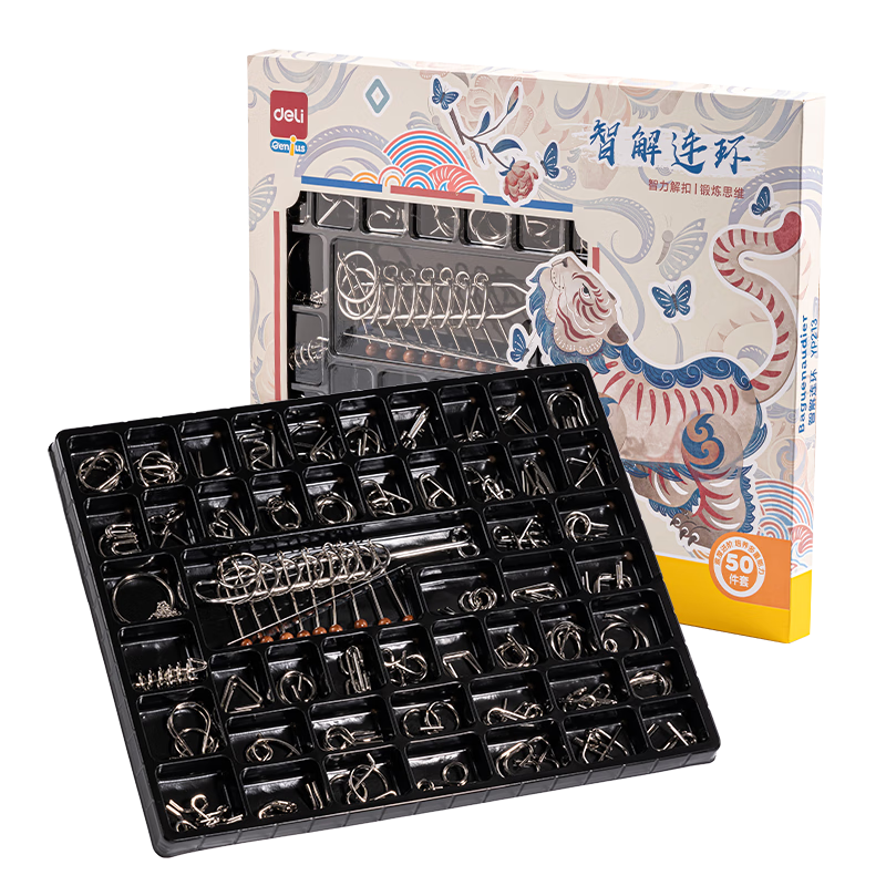 得力(deli)九连环鲁班锁益智玩具智力解扣7-14岁儿童节日生日礼物50件套