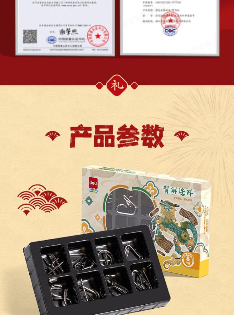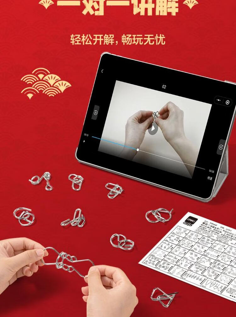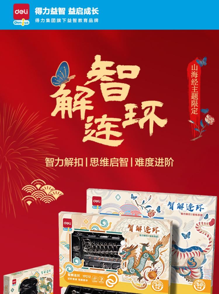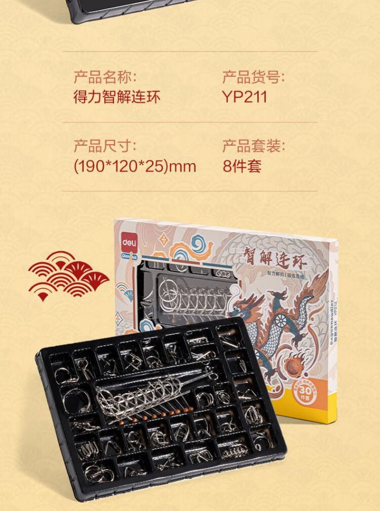 得力(deli)九连环鲁班锁益智玩具智力解扣7-14岁儿童节日生日礼物50件套